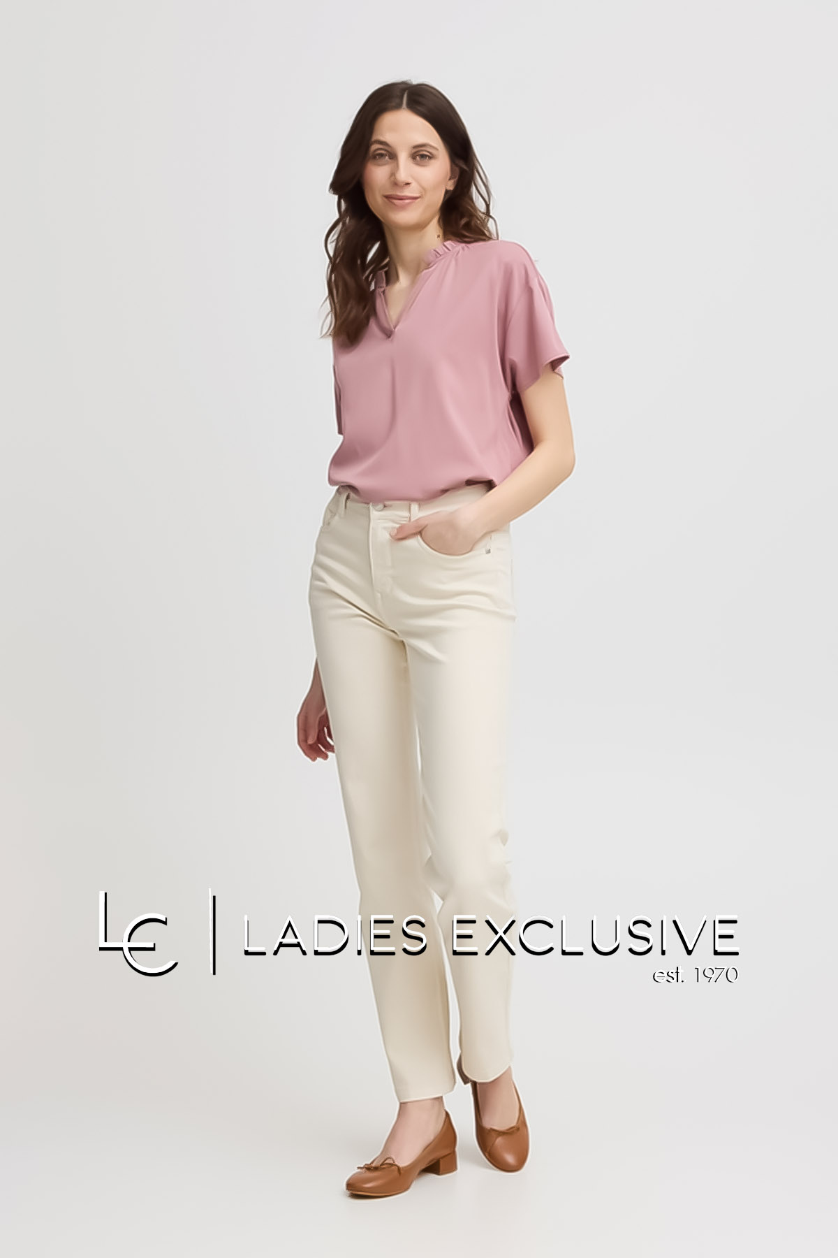 FIORENTINA JEANS Παντελόνι κοραλί καμπαρντίνα αστραγάλου με ρεβέρ και λάστιχο στη μέση.