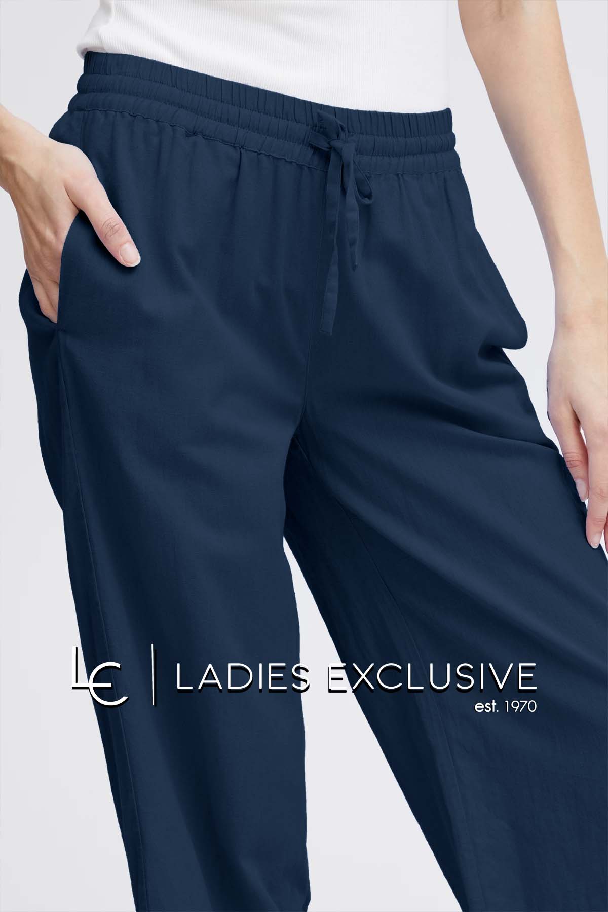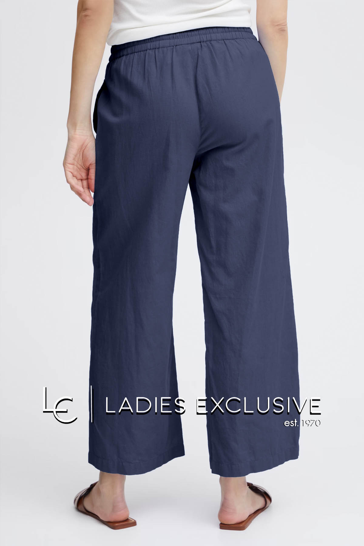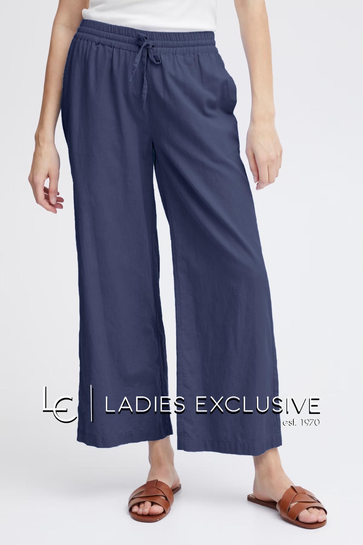 FRANSA Παντελόνα μπλε σε άνετη γραμμή με λάστιχο στη μέση.
