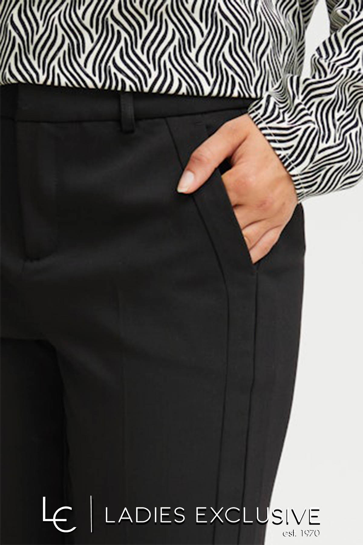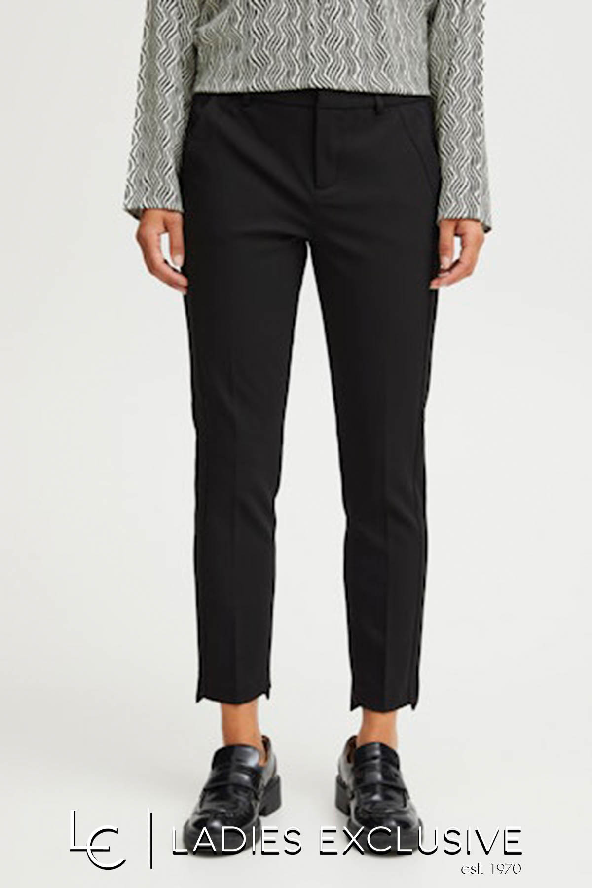 FRANSA Παντελόνι μαύρο city chino αστραγάλου βαμβακερό, με ασύμμετρο σκίσιμο στο κάτω μέρος.