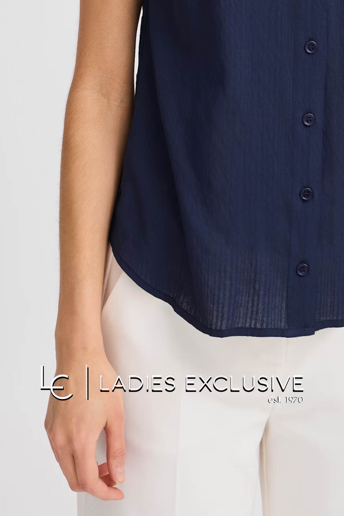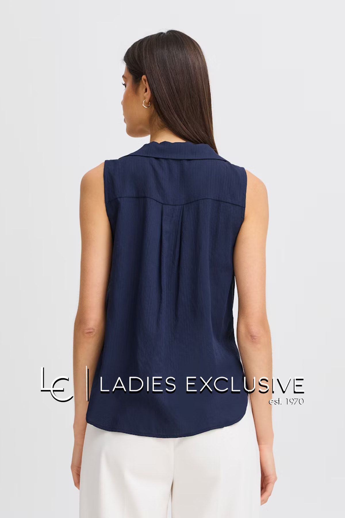 FRANSA Πουκάμισο μπλε αμάνικο με γιακά και ανάλαφρο ύφασμα από βισκόζη.