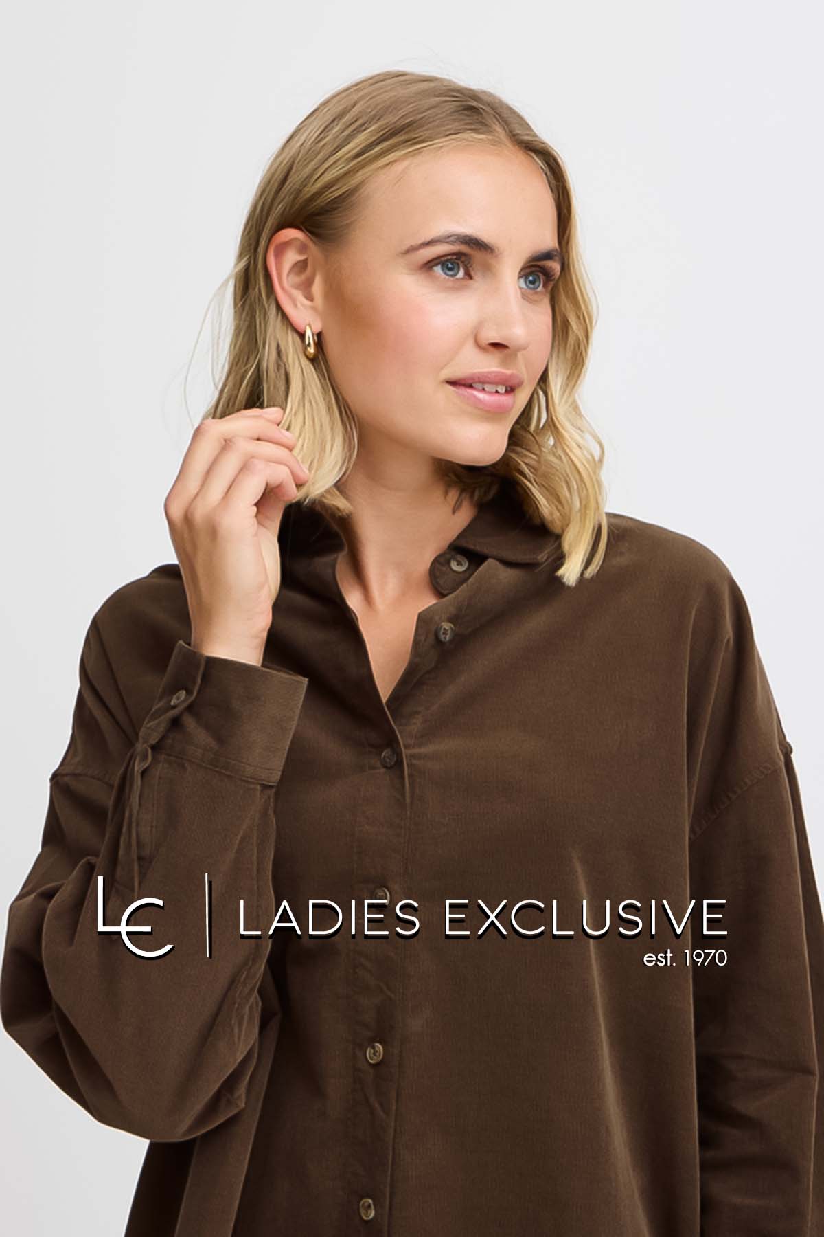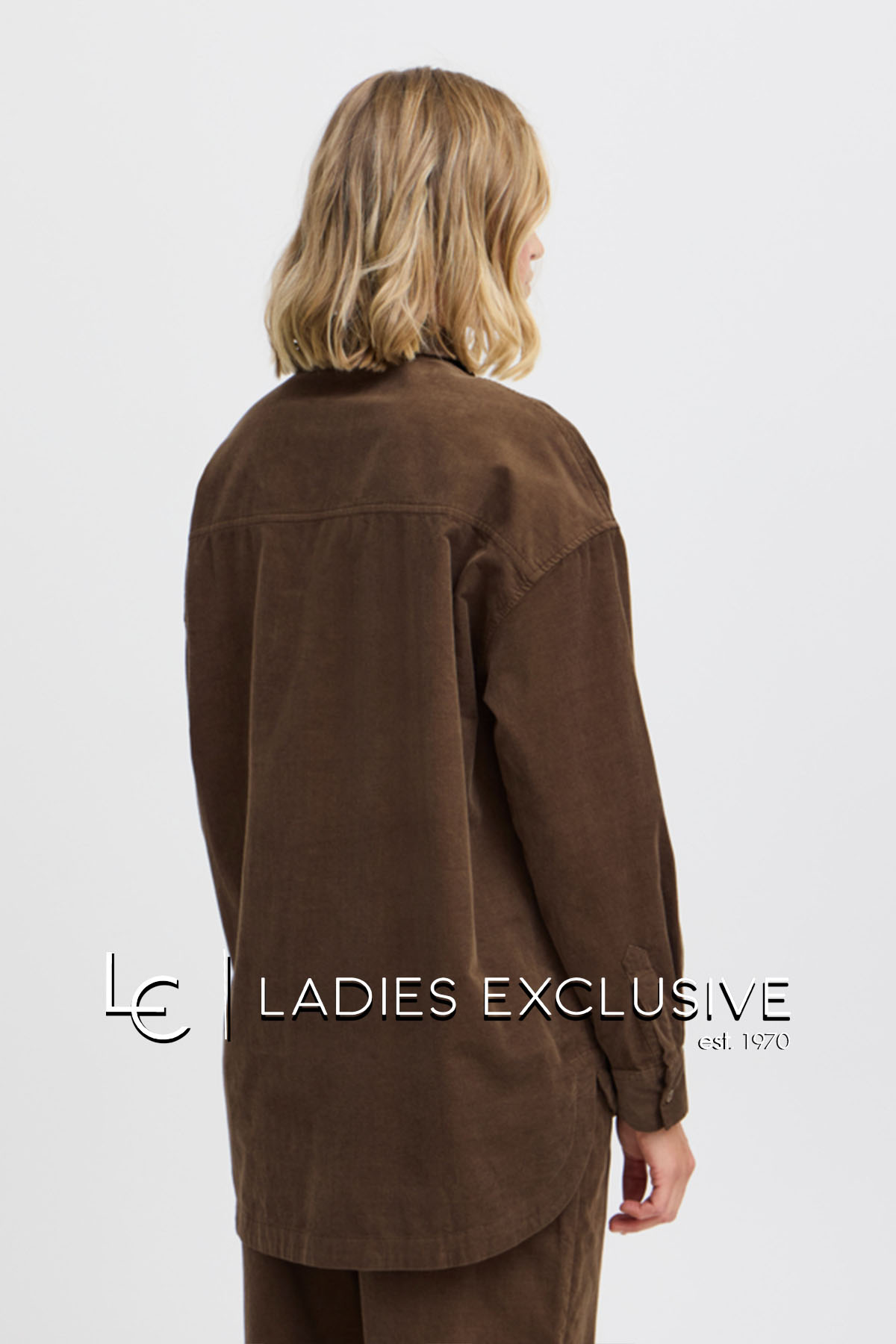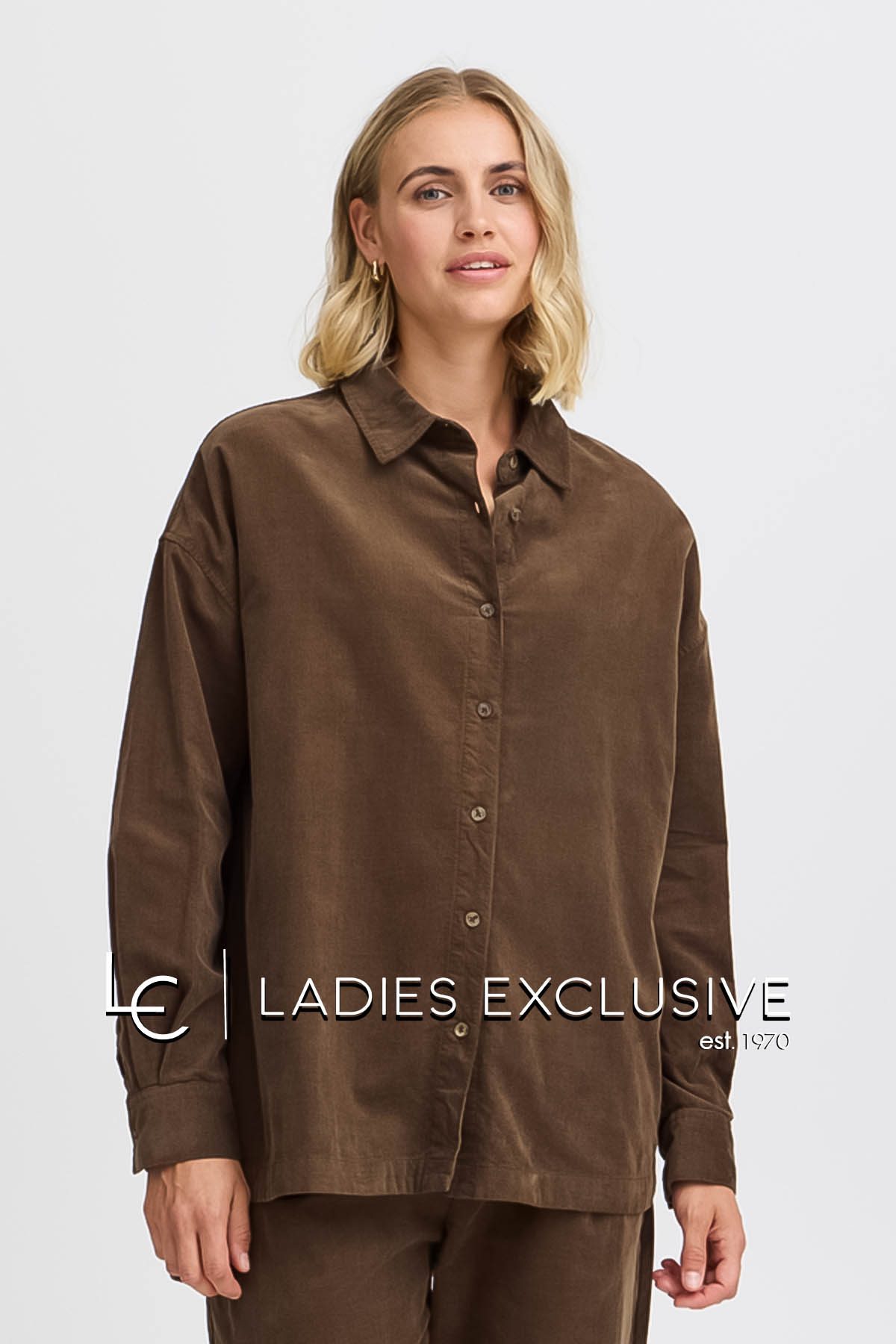 FRANSA Πουκάμισο καφέ κοτλέ χιλιόριγο, σε άνετη γραμμή.