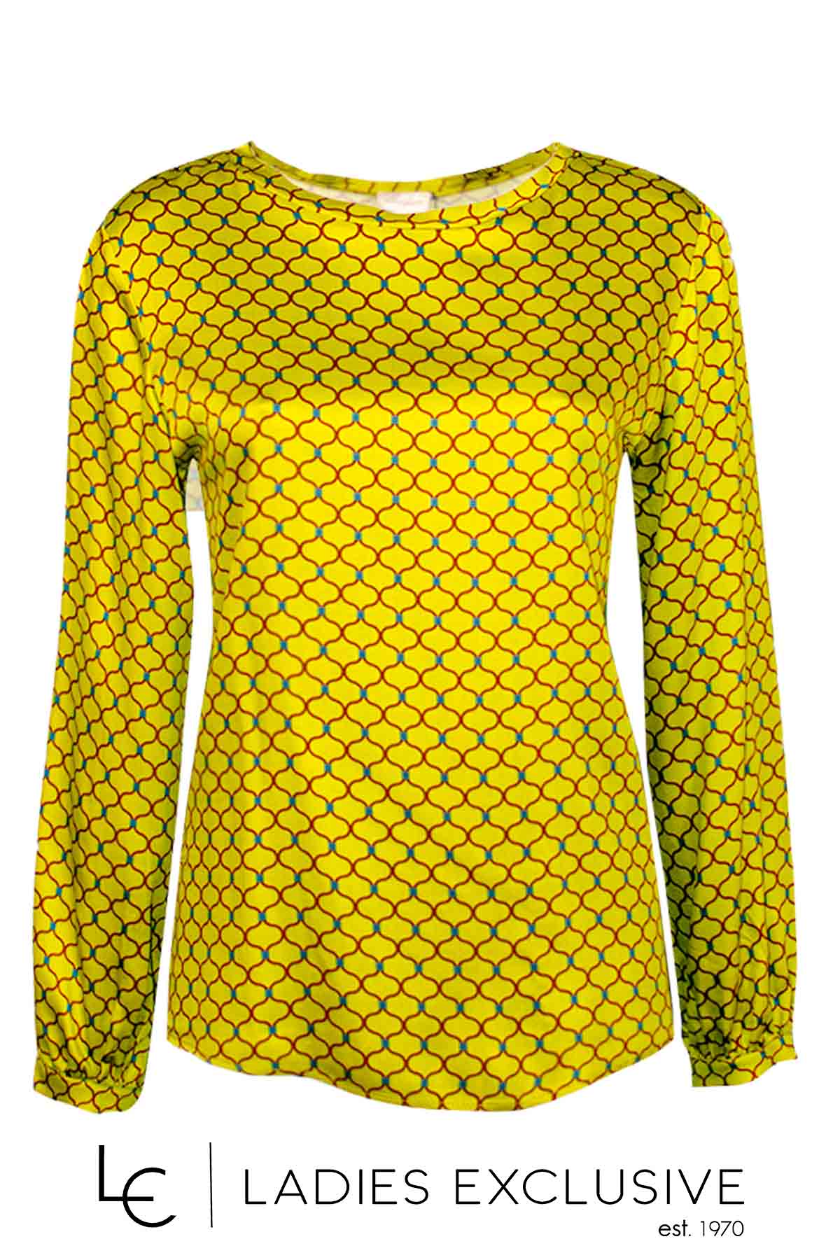 LUCIFAIR Μπλούζα μουσταρδί με σχέδιο πλέγμα σατέν σε άνετη γραμμή.