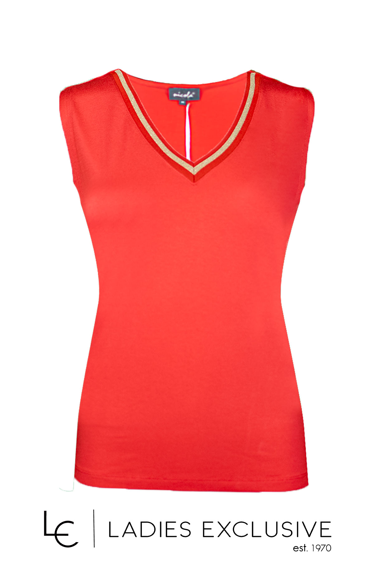 NICOLA Μπλούζα κοραλί αμάνικη με ελαστικό v και χρυσή λεπτομέρεια.