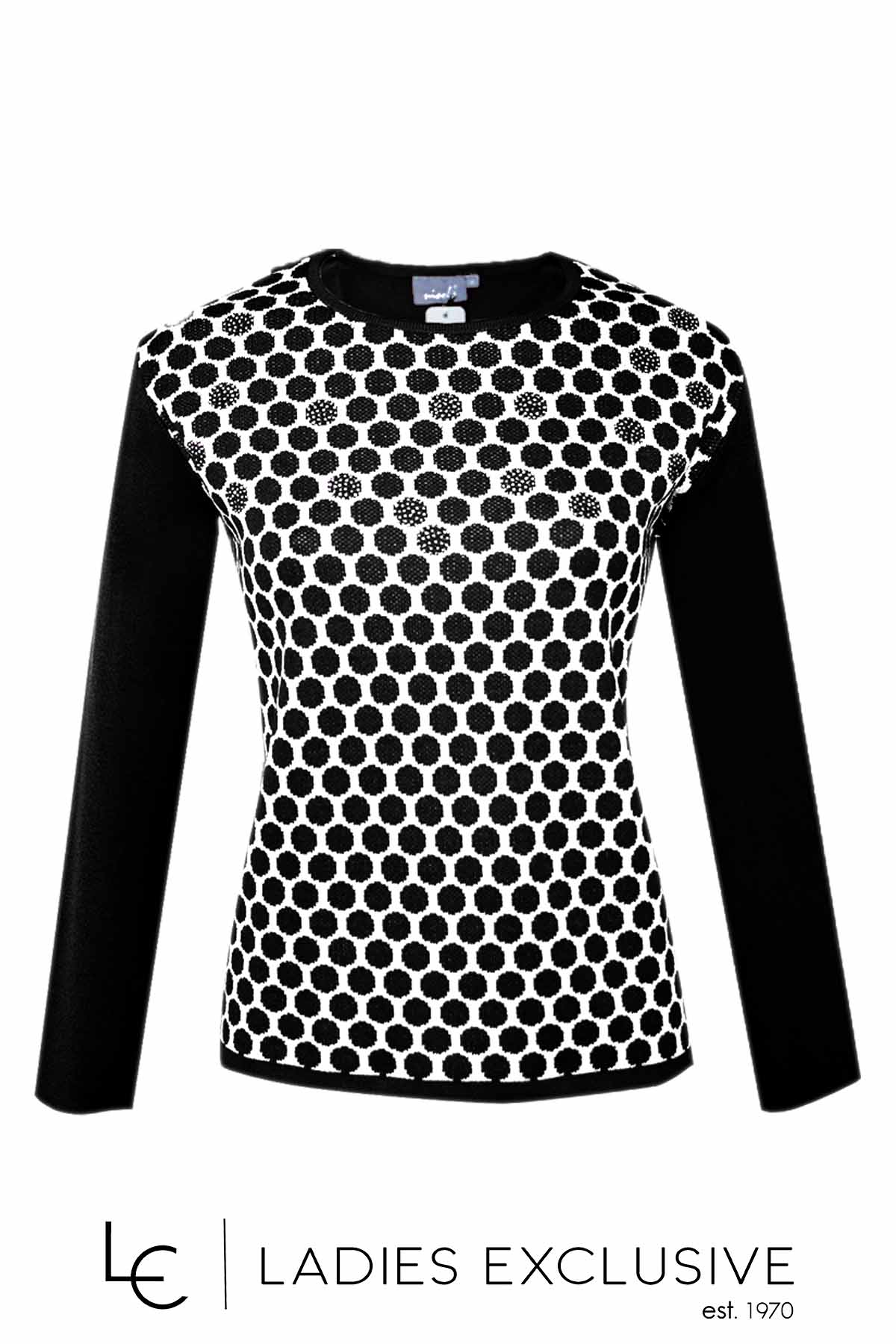 NICOLA Μπλούζα μάλλινη ασπρόμαυρη πουά με διακριτικά στρας.