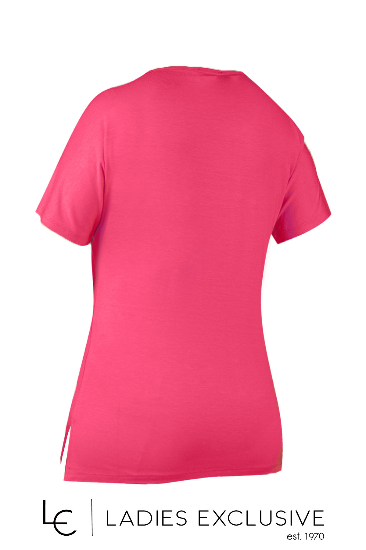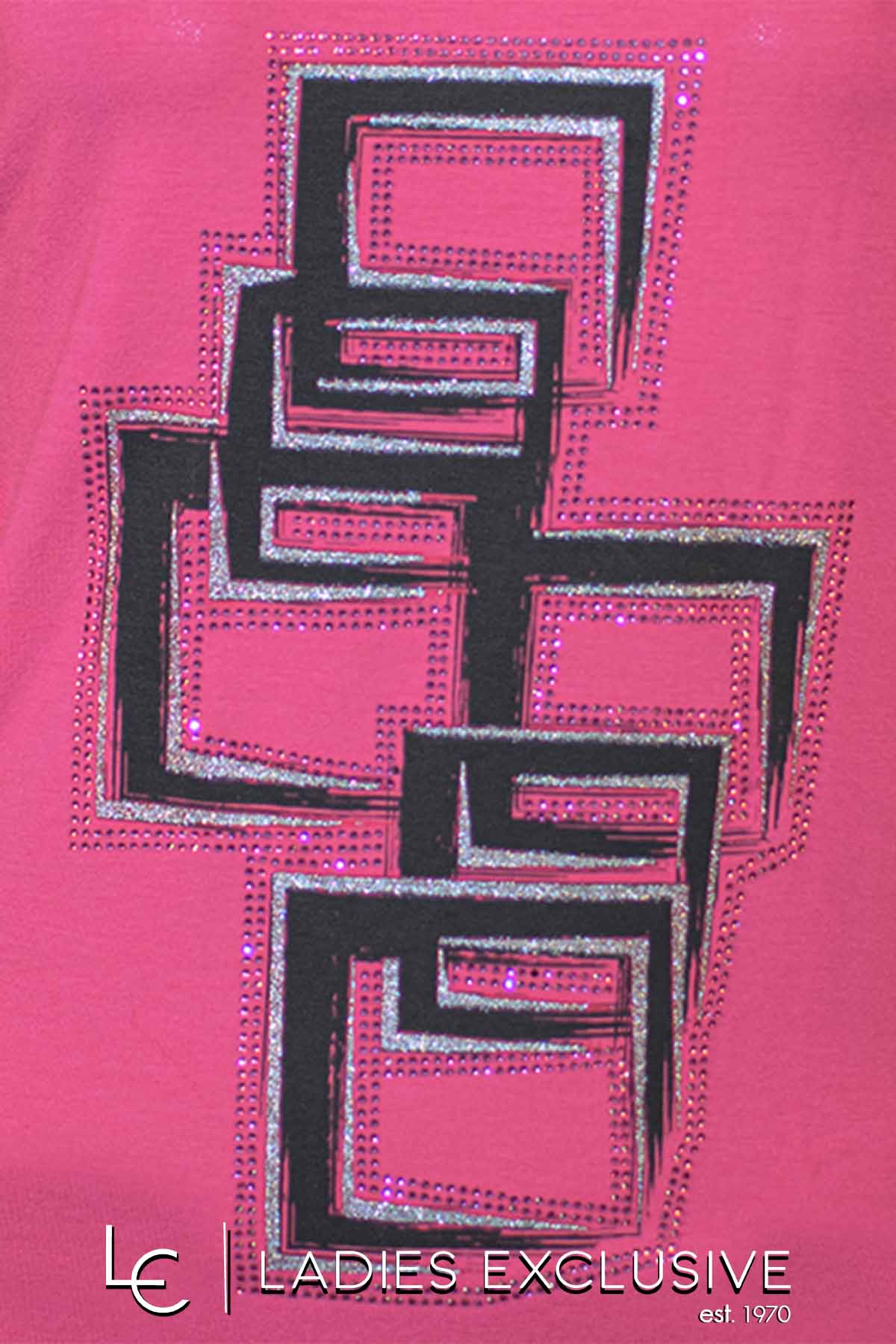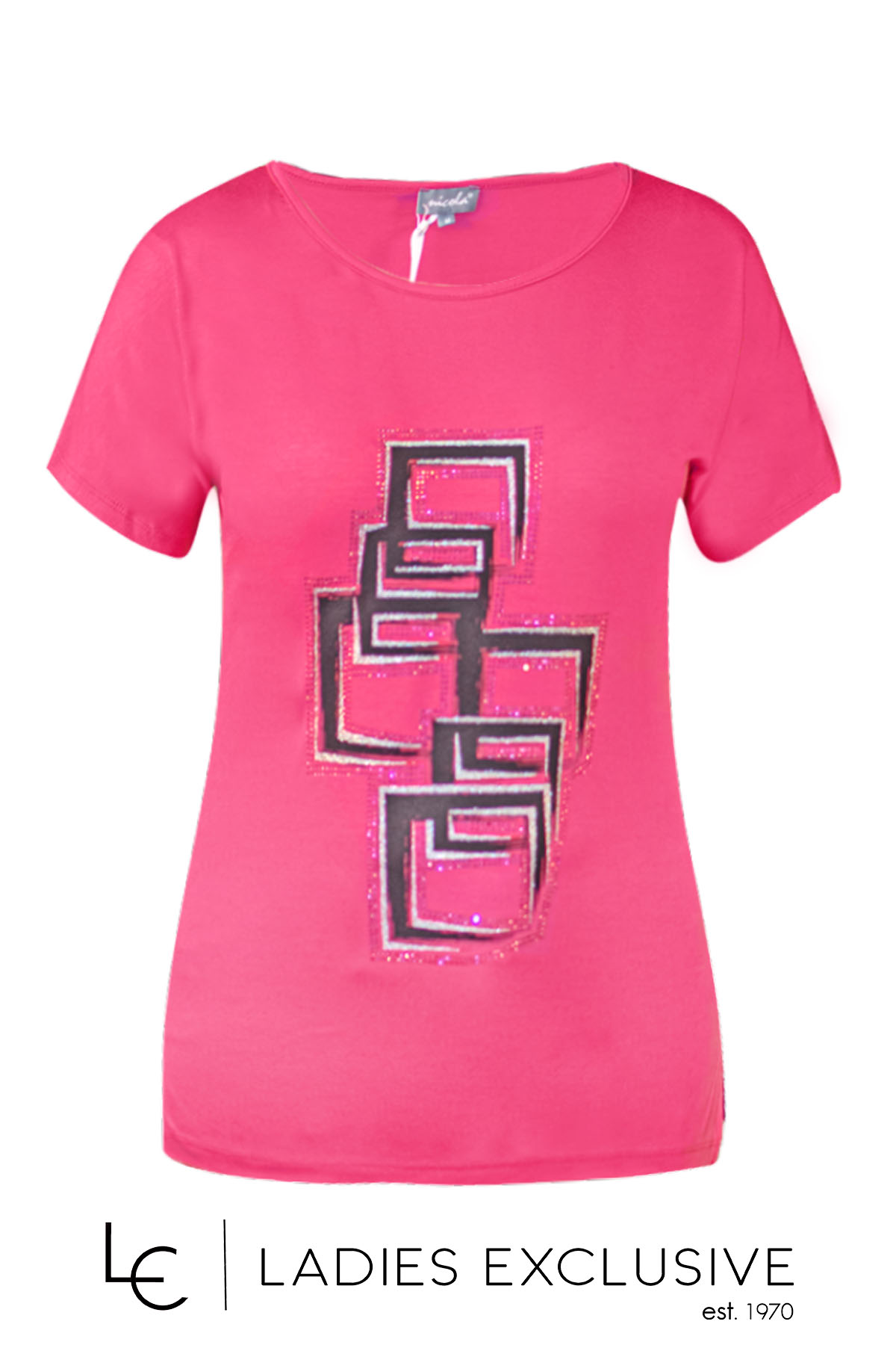 NICOLA Μπλούζα φούξια κοντομάνικη με στάμπα τετράγωνα και στρας.