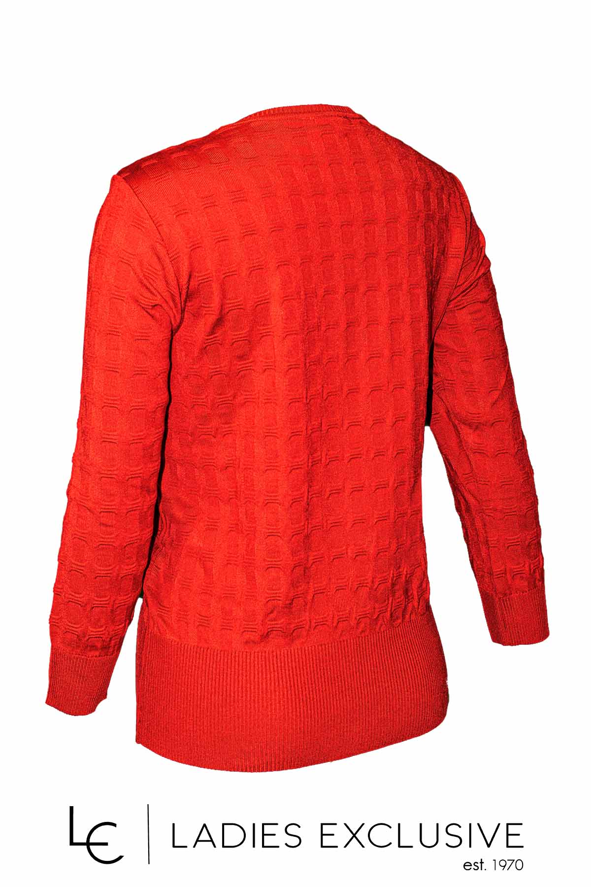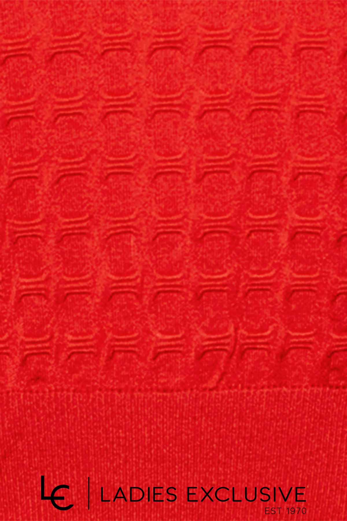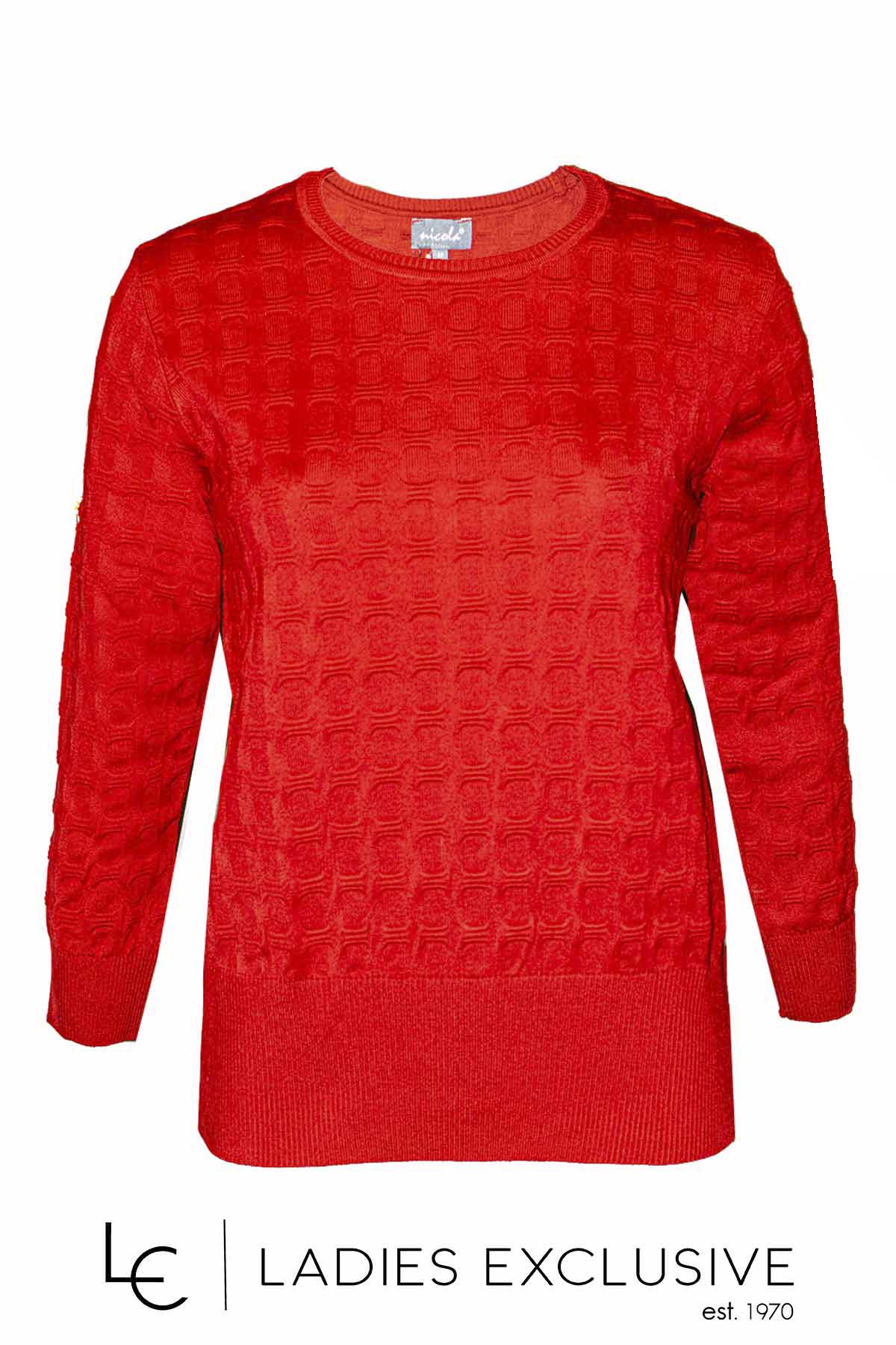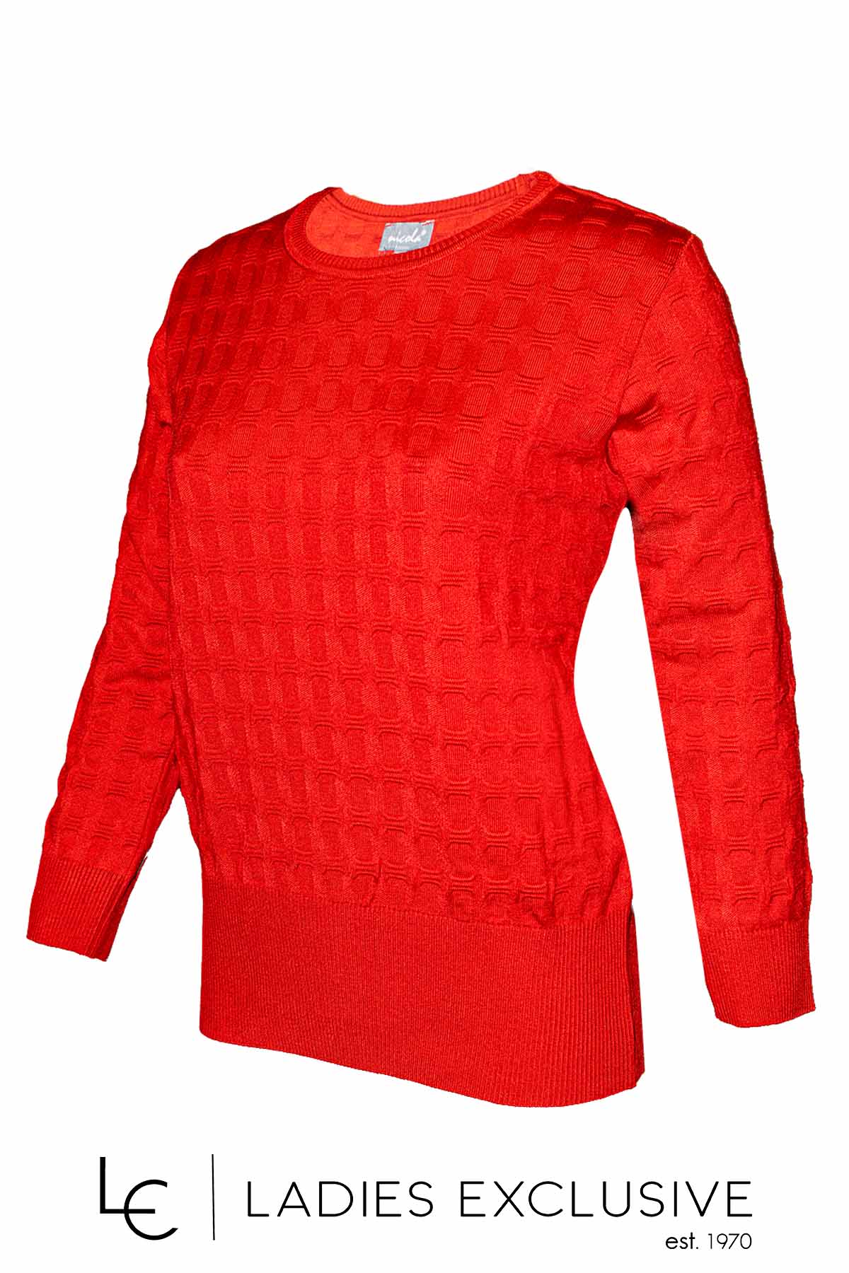 NICOLA Μπλούζα κόκκινη πλεκτή με ανάγλυφο σχέδιο και λαιμόκοψη.