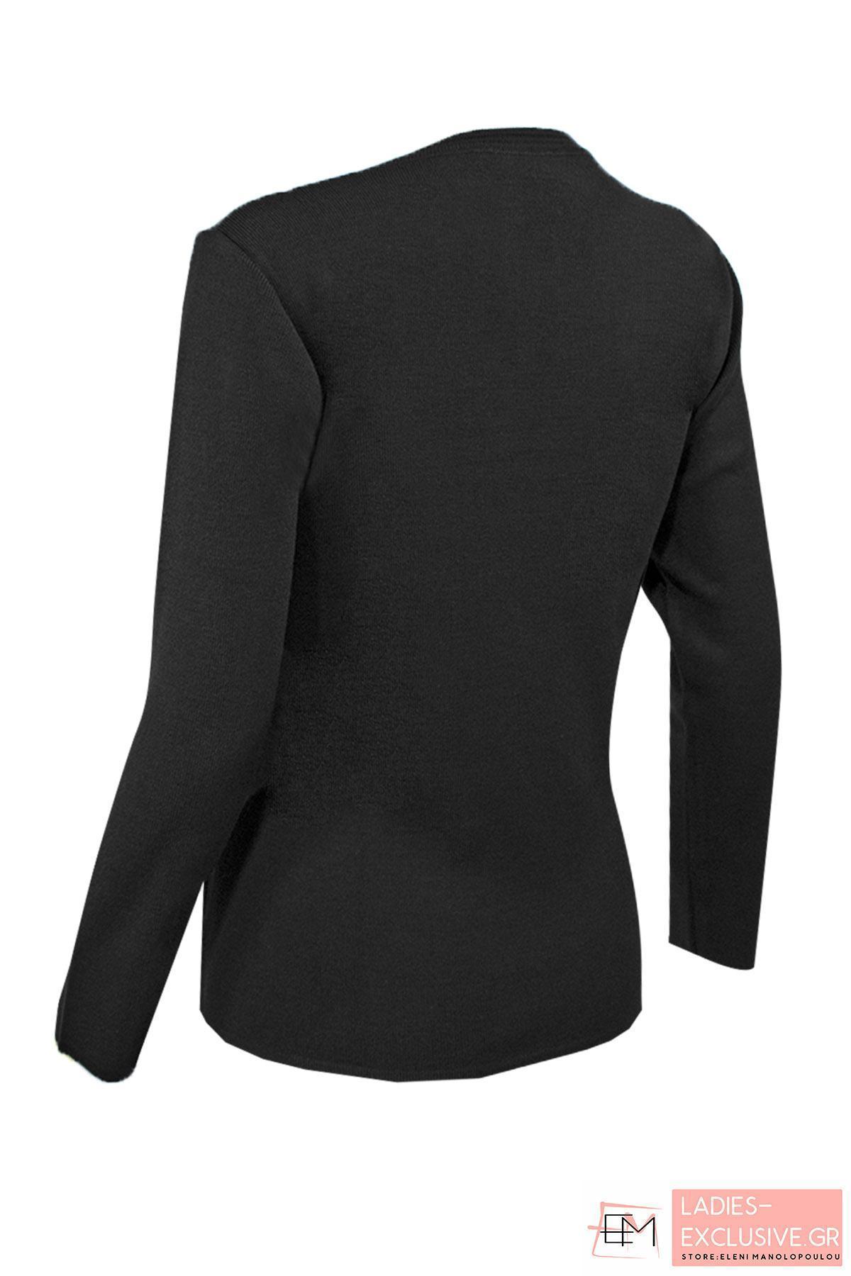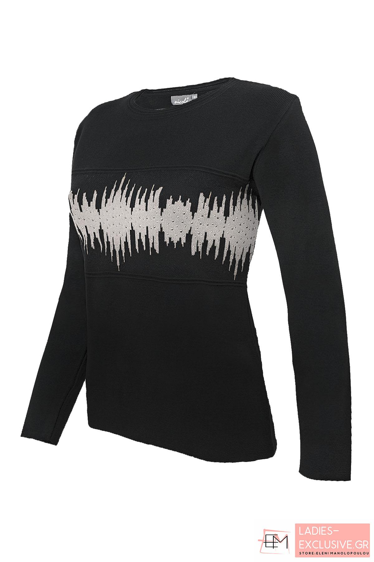 ELIN Μπλούζα ανθρακί μάλλινη με ανάγλυφο σχέδιο στη μία πλευρά και στρας.