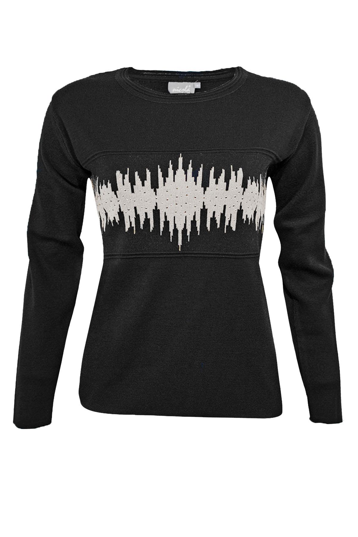 NICOLA Μπλούζα πλεκτή σε κλασικό σχέδιο με στρογγυλή λαιμόκοψη και διχρωμία με τρουκς.