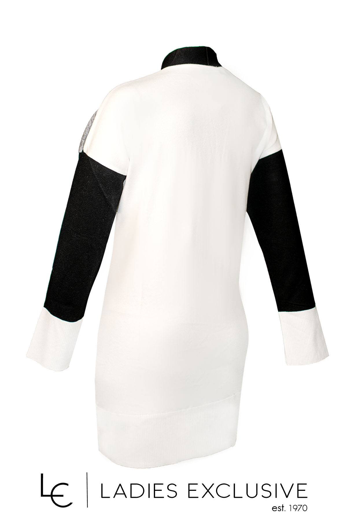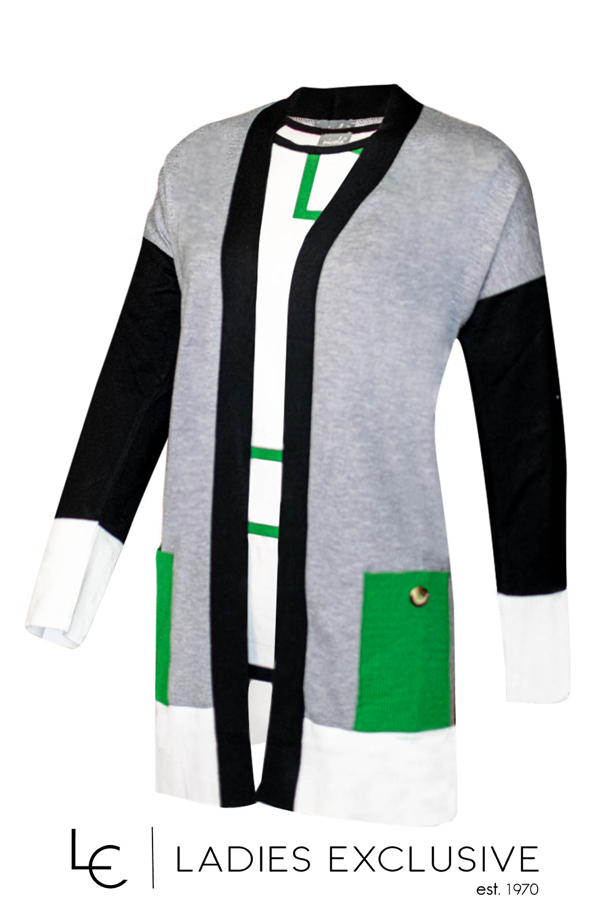 ELIN Ζακέτα ασπρόμαυρη πλεκτή μακριά, με τσέπες στο μπροστινό μέρος και βάτες.