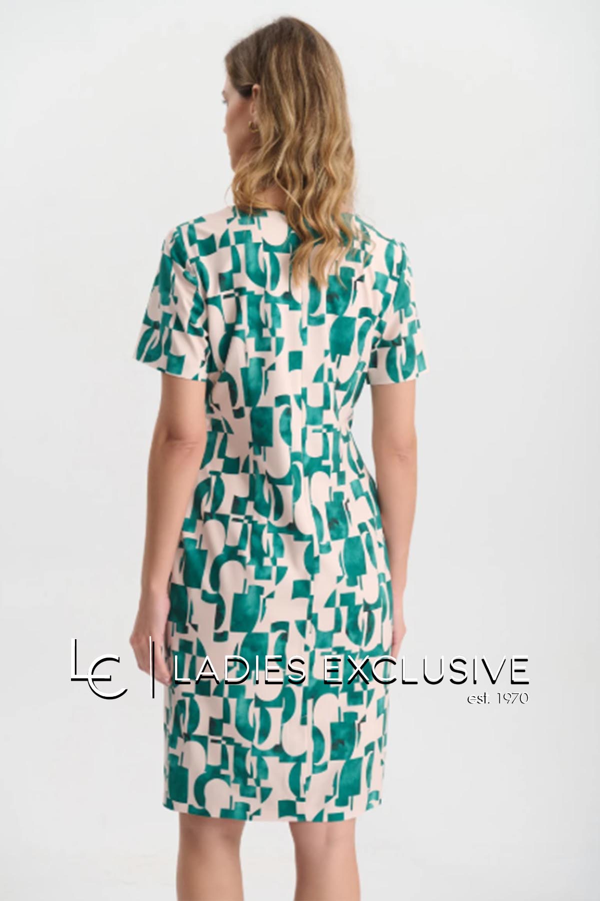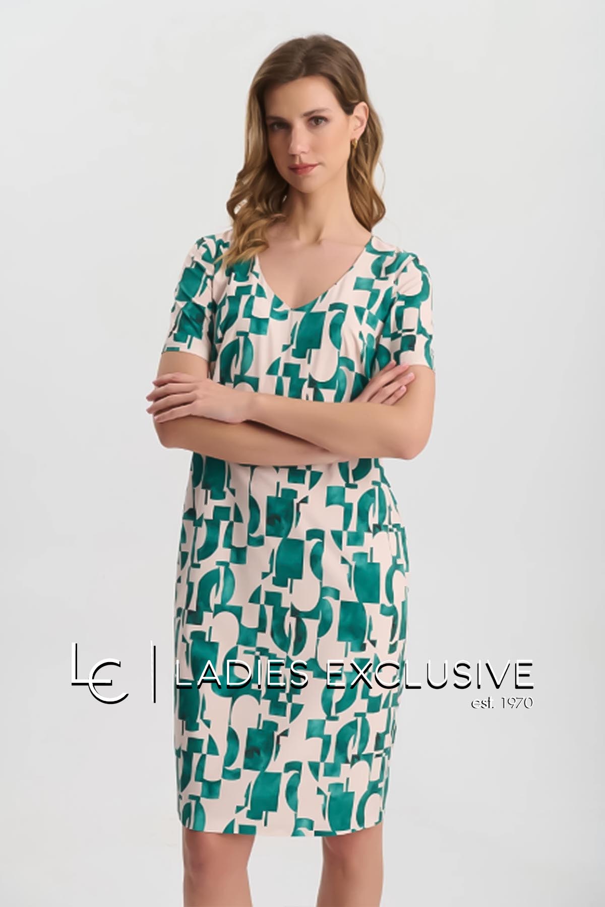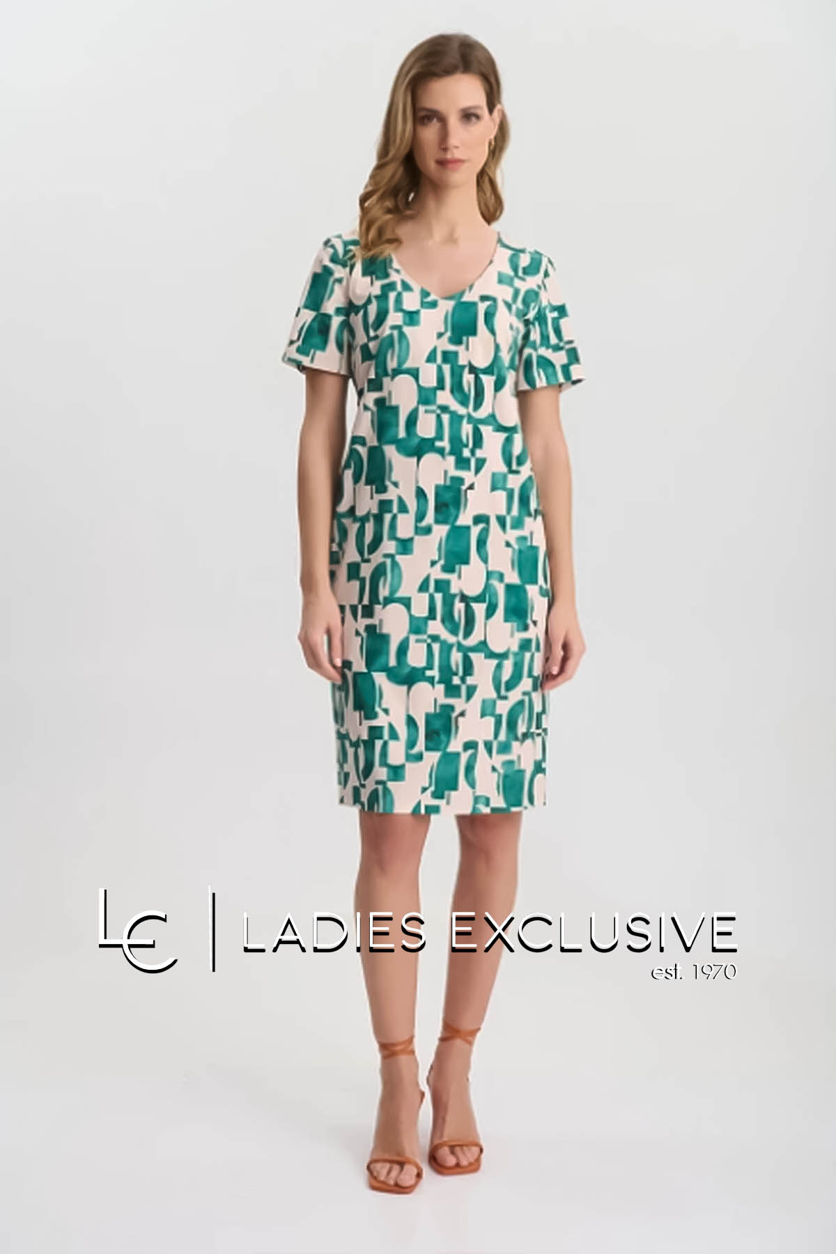 VETO Φόρεμα πράσινο κοντομάνικο σε ίσια γραμμή με άνοιγμα v.