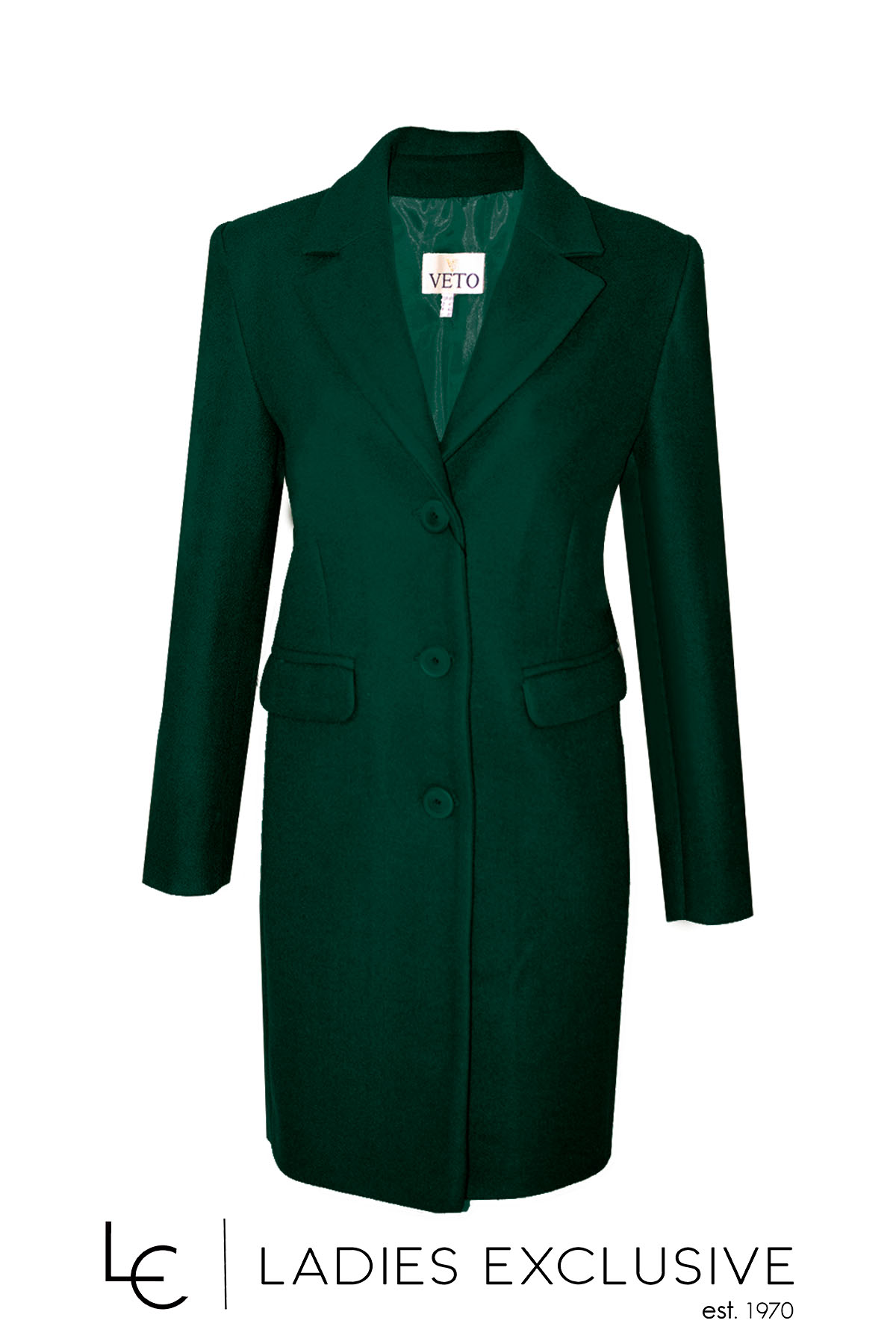 VETO Παλτό πράσινο βελούρ με πέτο γιακά και τσέπες με καπάκια.