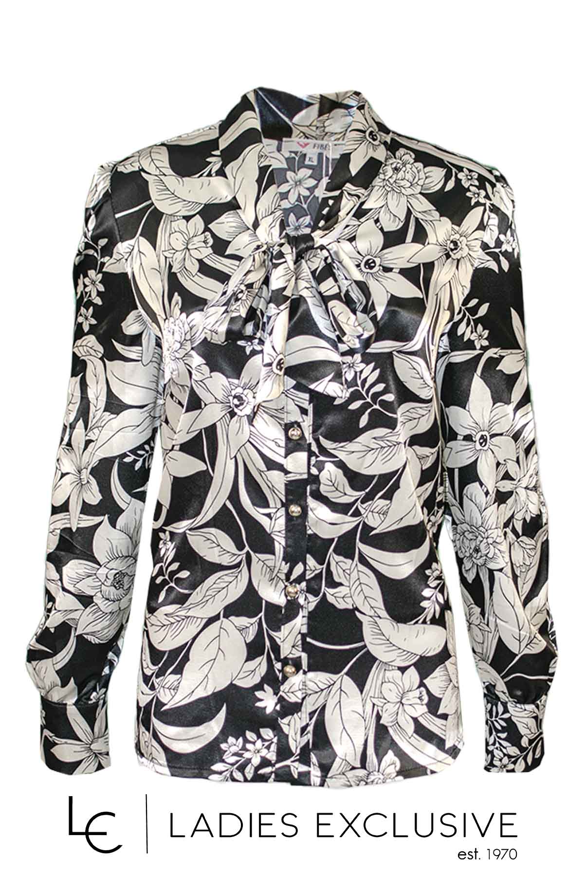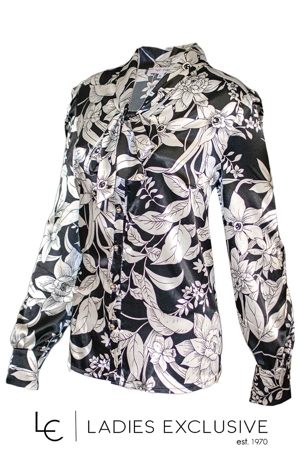 VETO Πουκάμισο ασπρόμαυρο σατέν με γραβάτα.