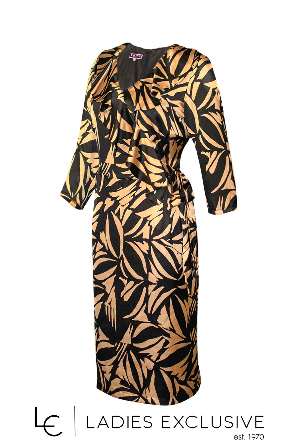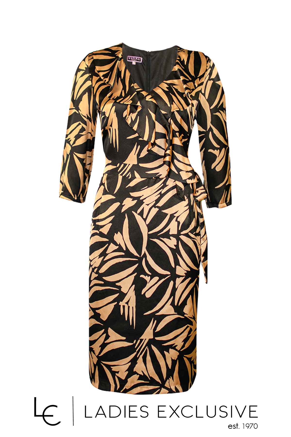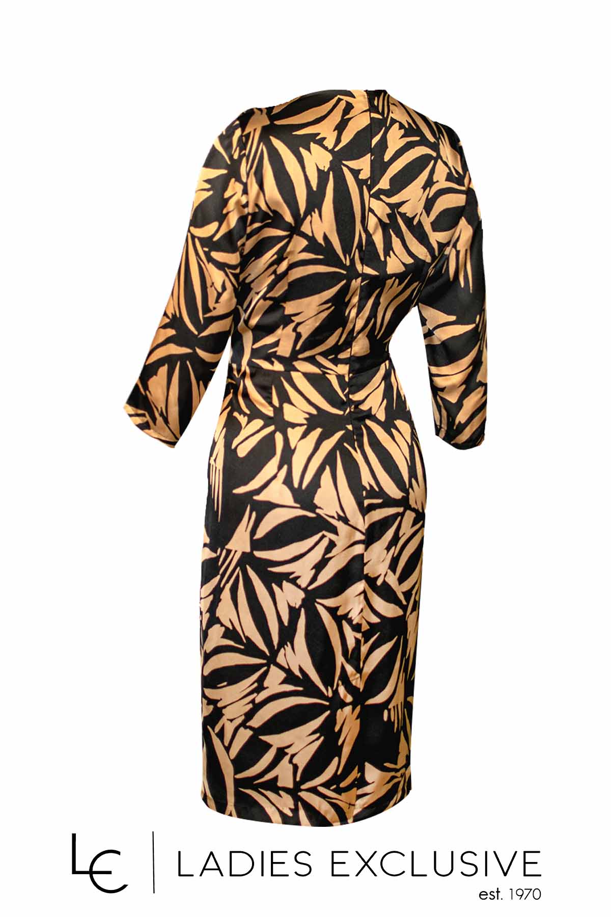 EFFECT Φόρεμα animal print με χρυσοκλωστή στην ύφανση και μανίκι 3/4 με τελείωμα φτερό.