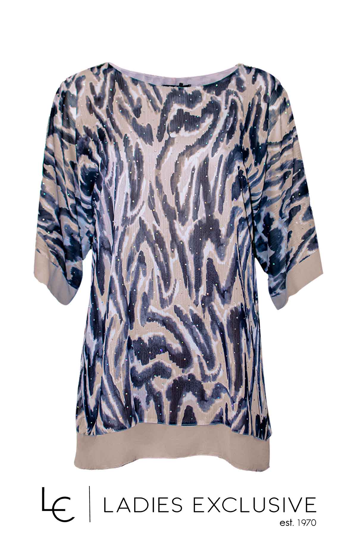 WEFTS Μπλούζα σε γήινες αποχρώσεις από διπλή μουσελίνα με στρας.