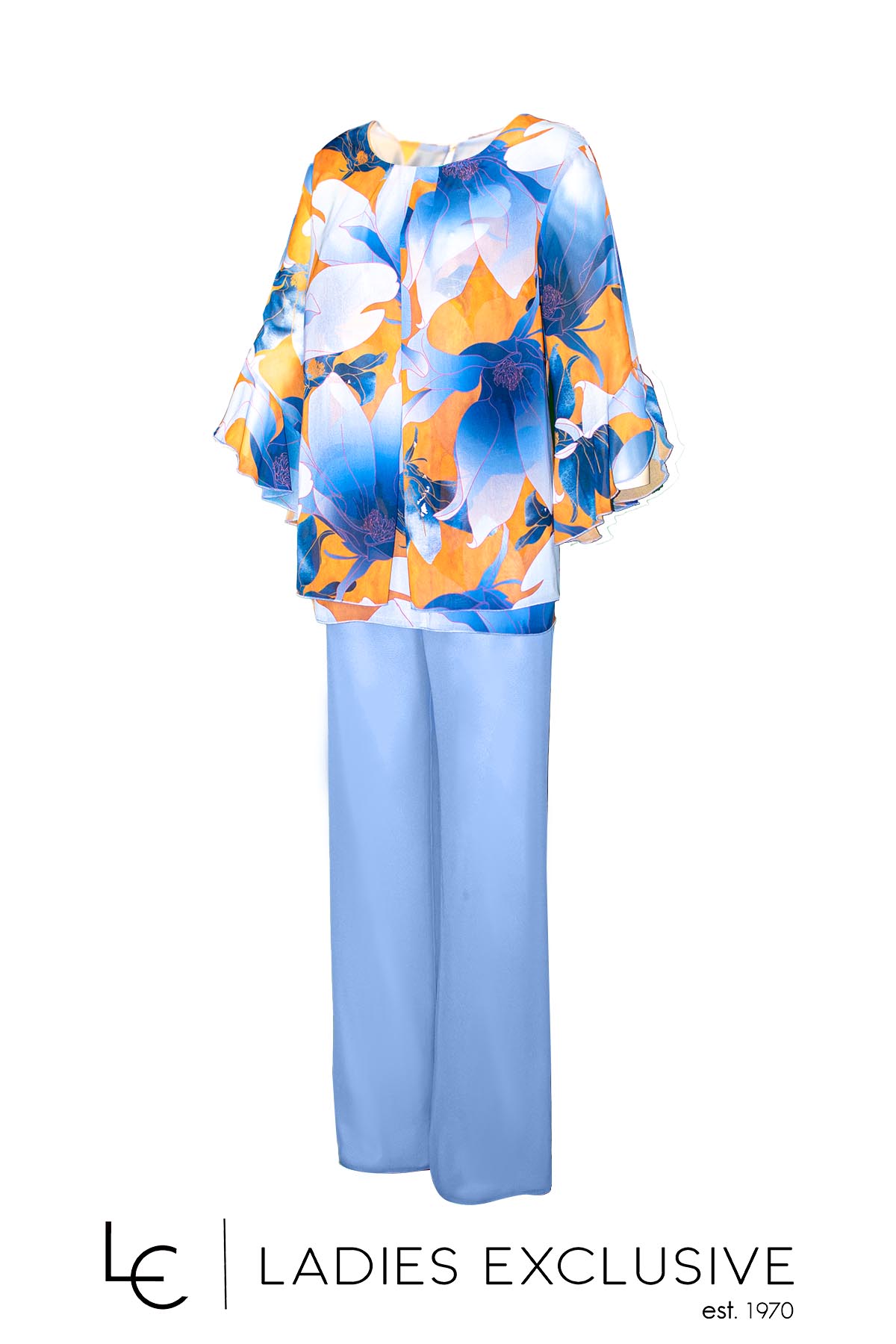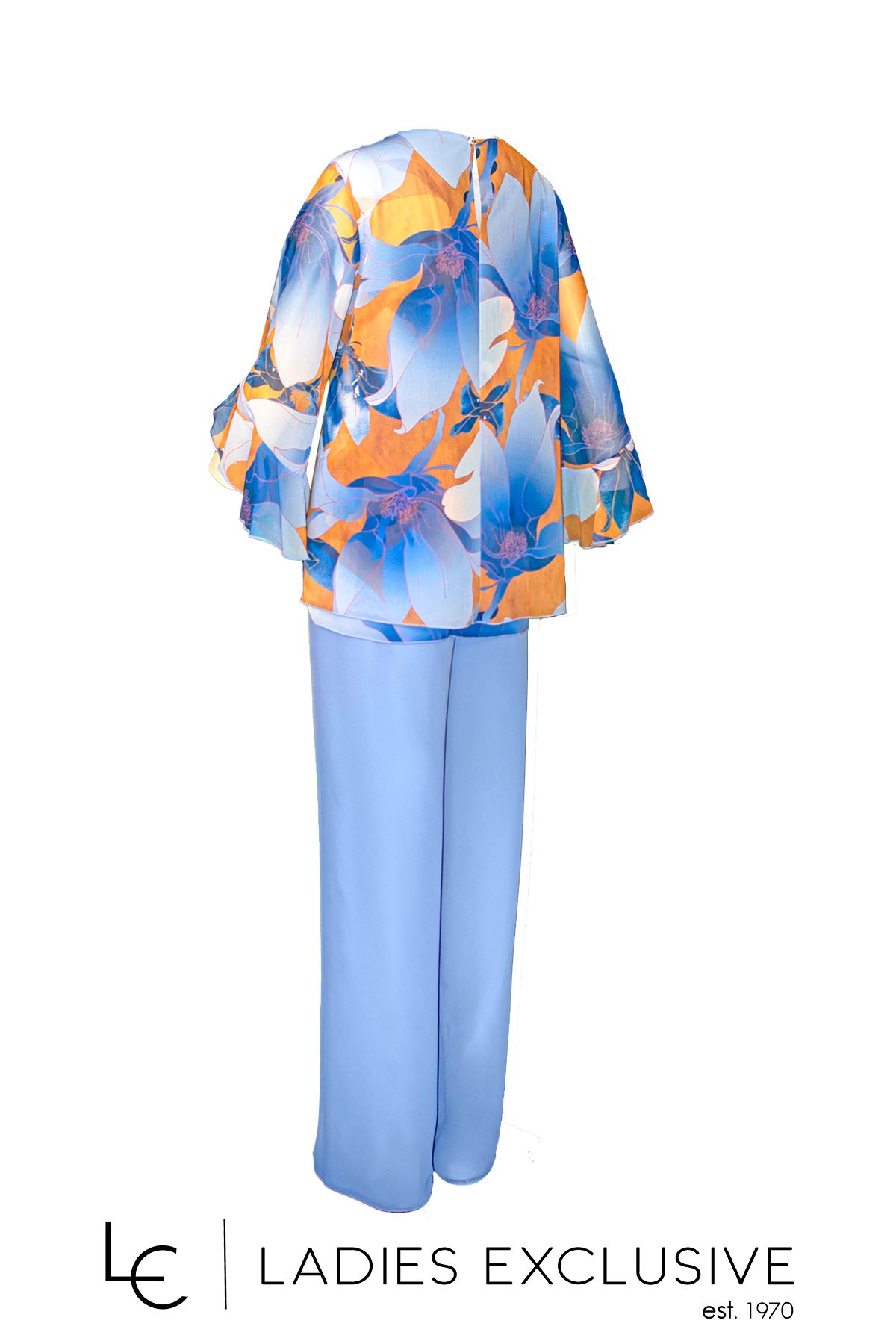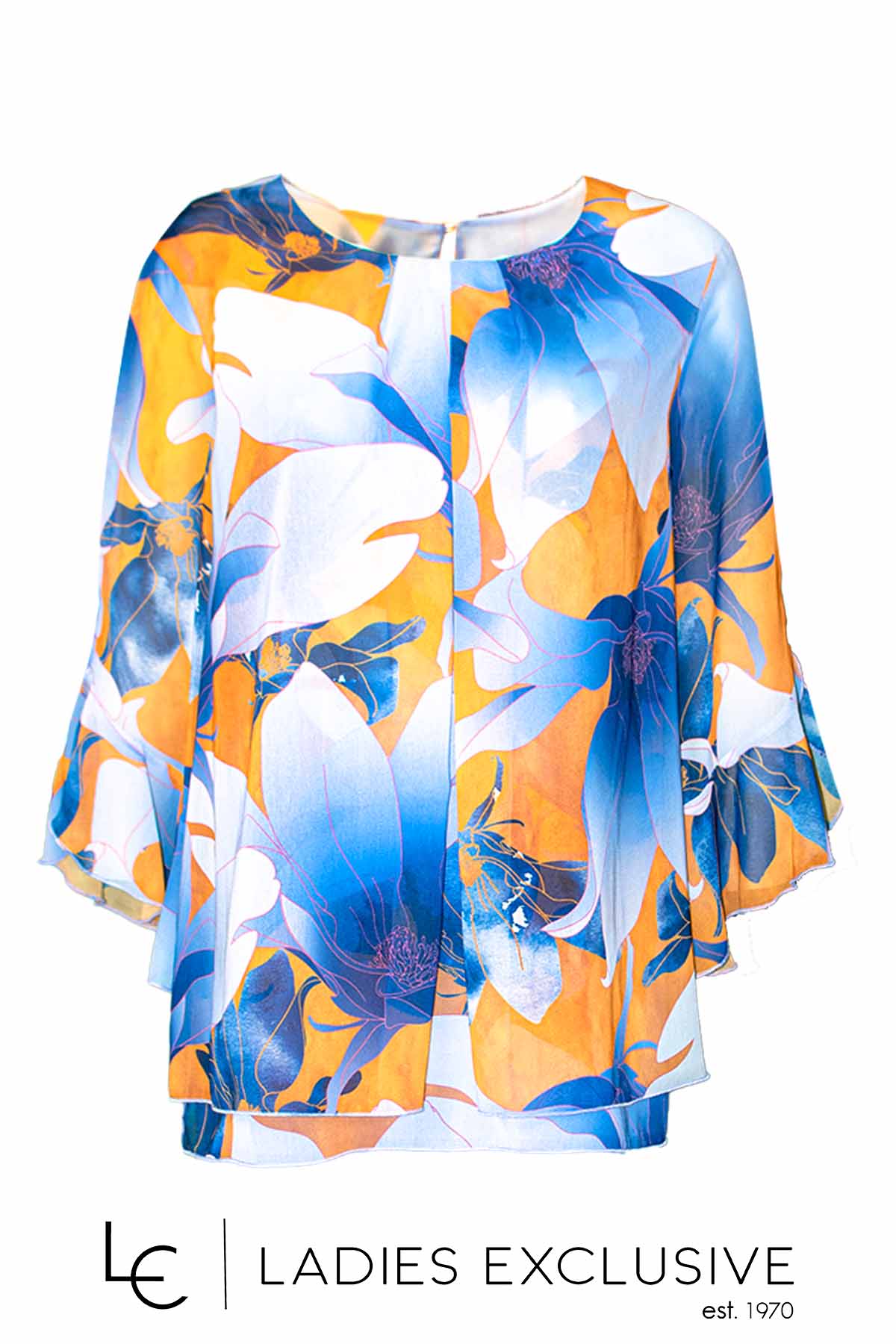 WEFTS Μπλούζα σε σιέλ αποχρώσεις τουνίκ από μουσελίνα, με βολάν στα μανίκια και πιέτα που ανοίγει στο μπροστινό μέρος.