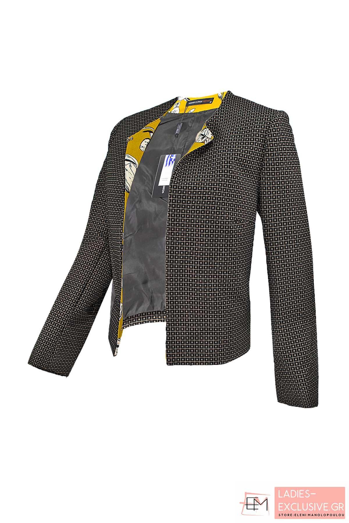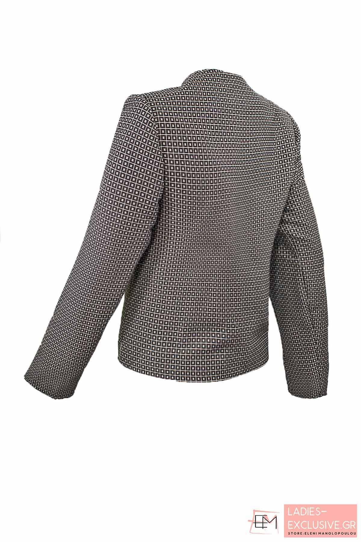 WOMEN'S STYLE Ζακέτα τύπου chanel σε μαύρο χρώμα με άσπρες λεπτομέρειες και μήκος στη μέση. Ταιριάζει με το φόρεμα κωδ:6548.