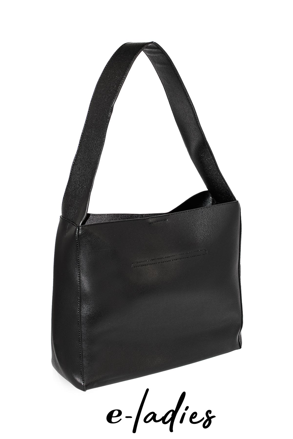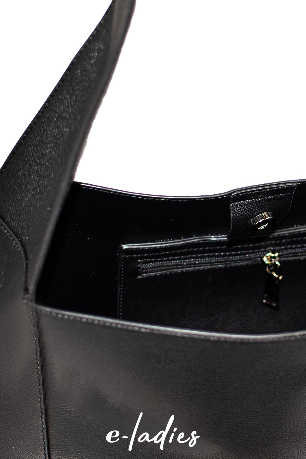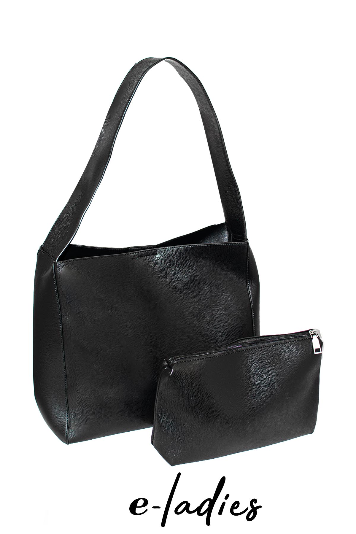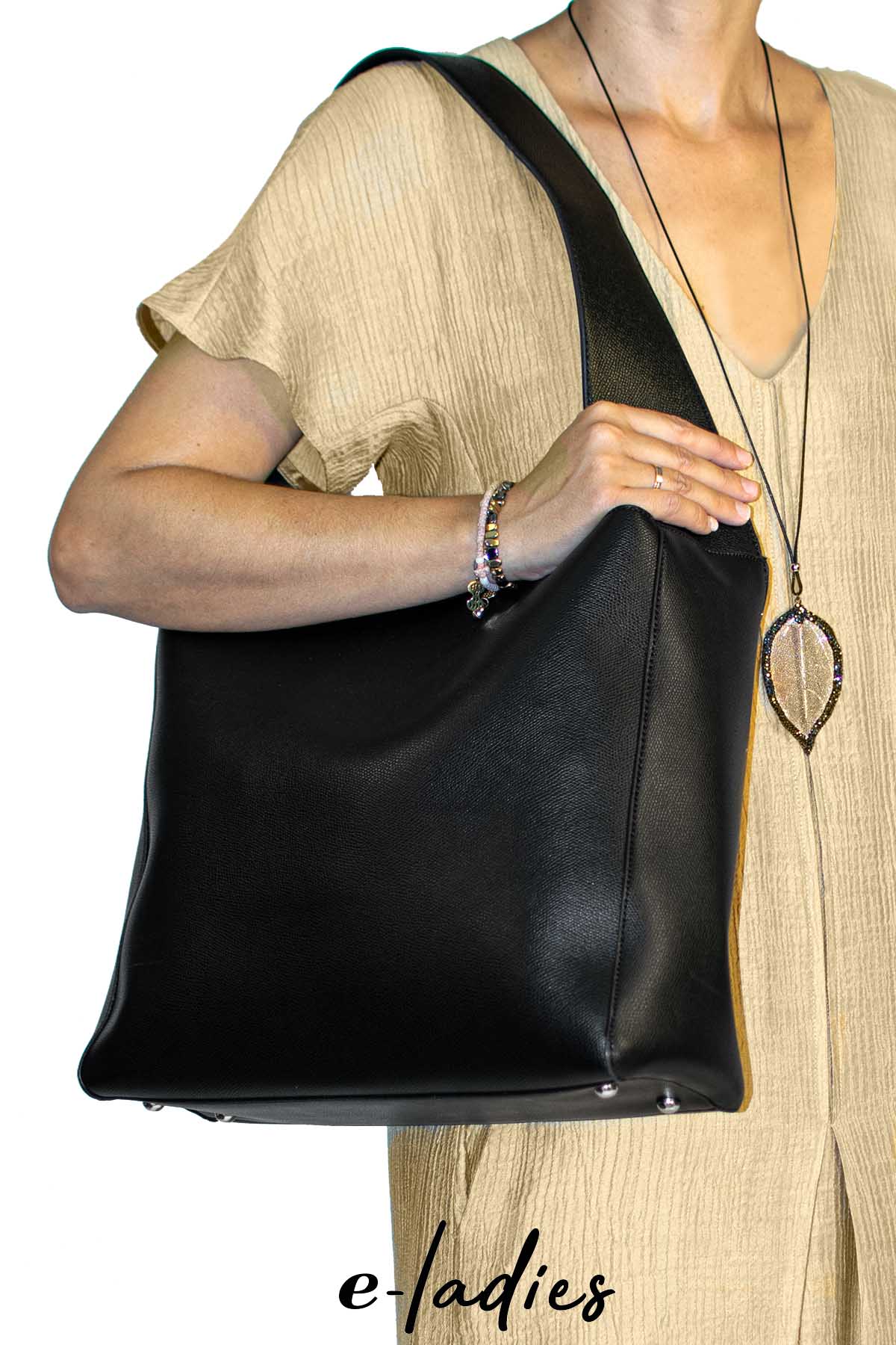 Τσάντα μαυρη ώμου με επιπλέον τσαντάκι εσωτερικά και κλείσιμο με μαγνήτη. Διαστάσεις: 45X34. Σύνθεση: Οικολογικό δέρμα