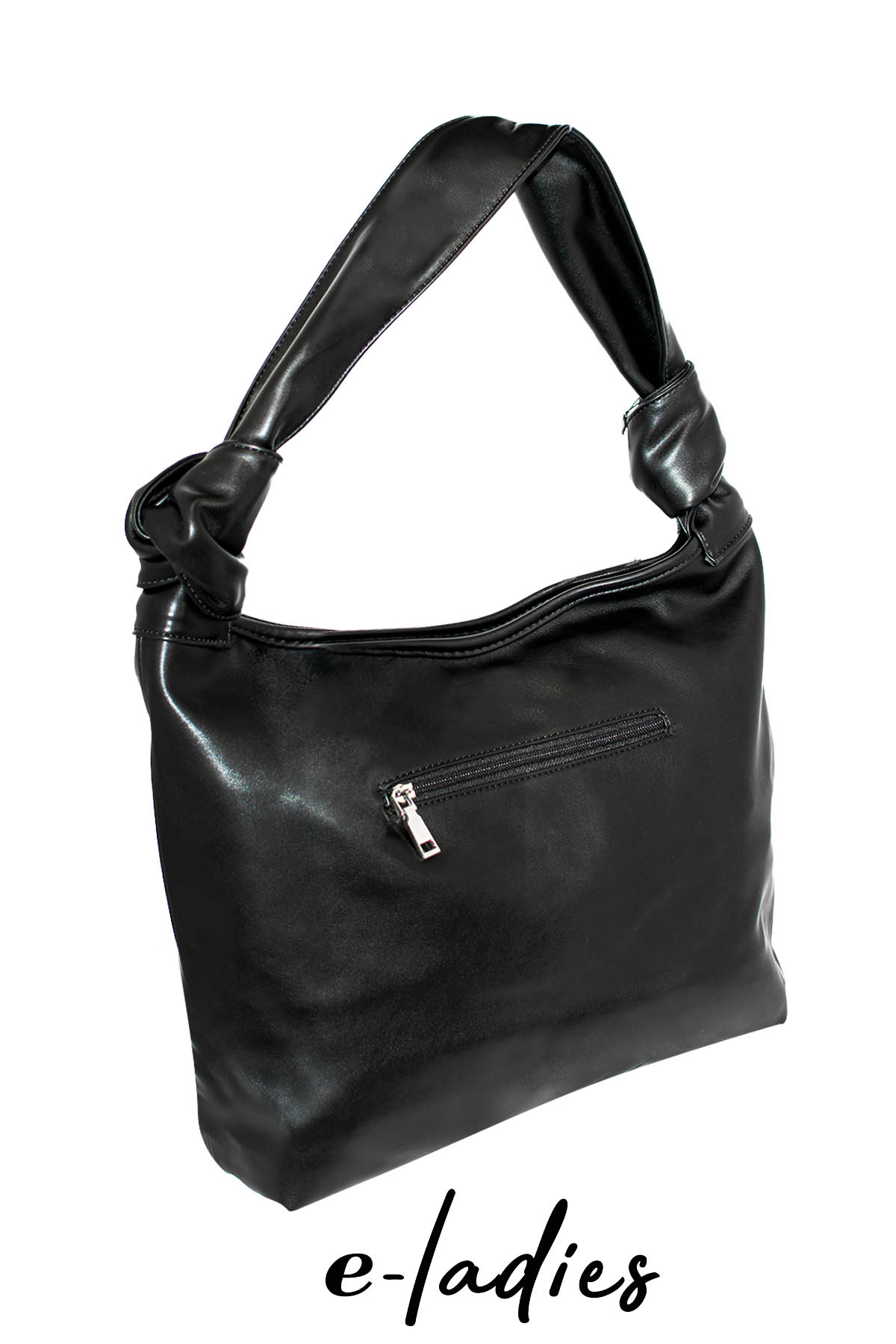 Τσάντα μαυρη ώμου με διακοσμητικούς κόμπους και φερμουάρ. Διαστάσεις: 45X34. Σύνθεση: Οικολογικό δέρμα