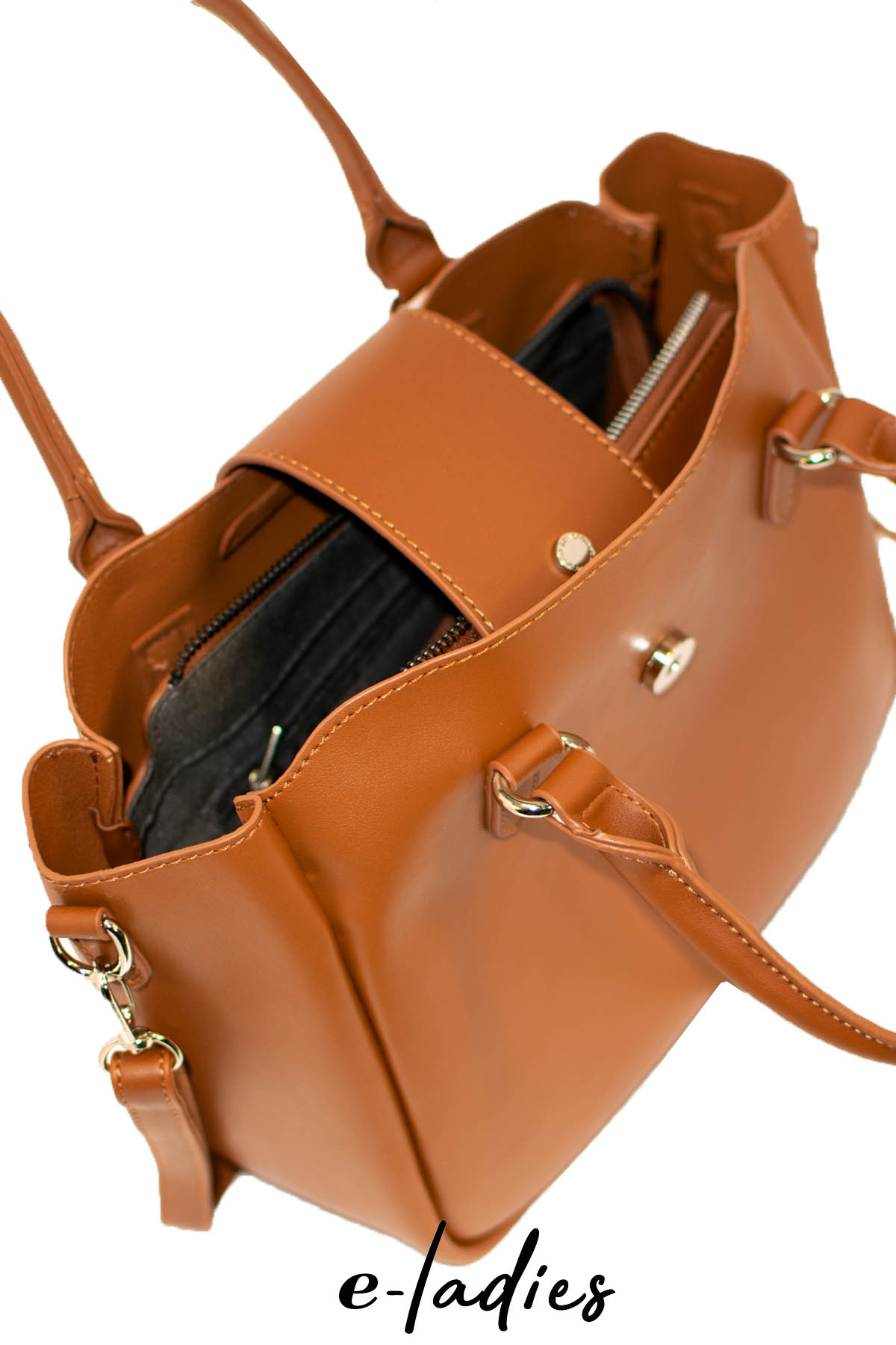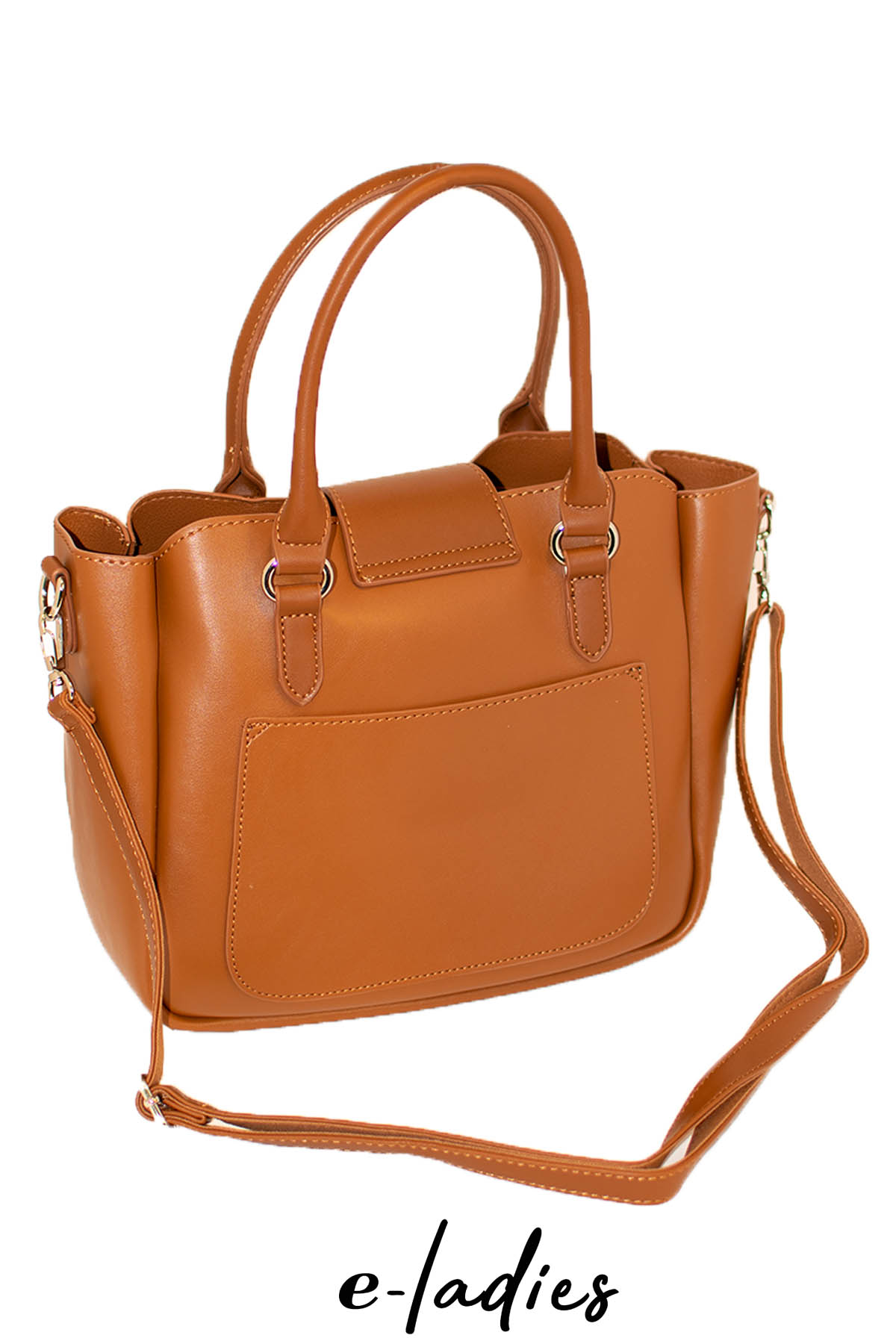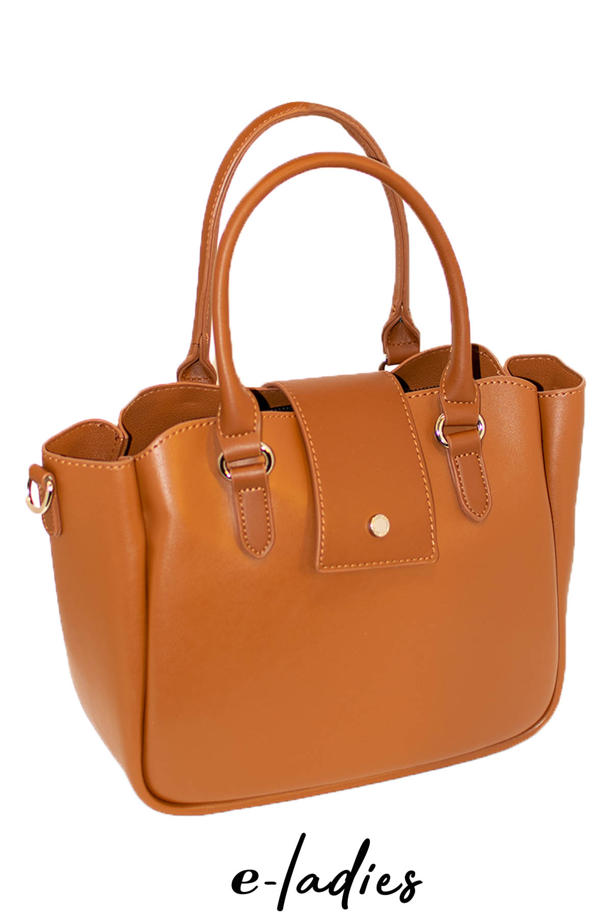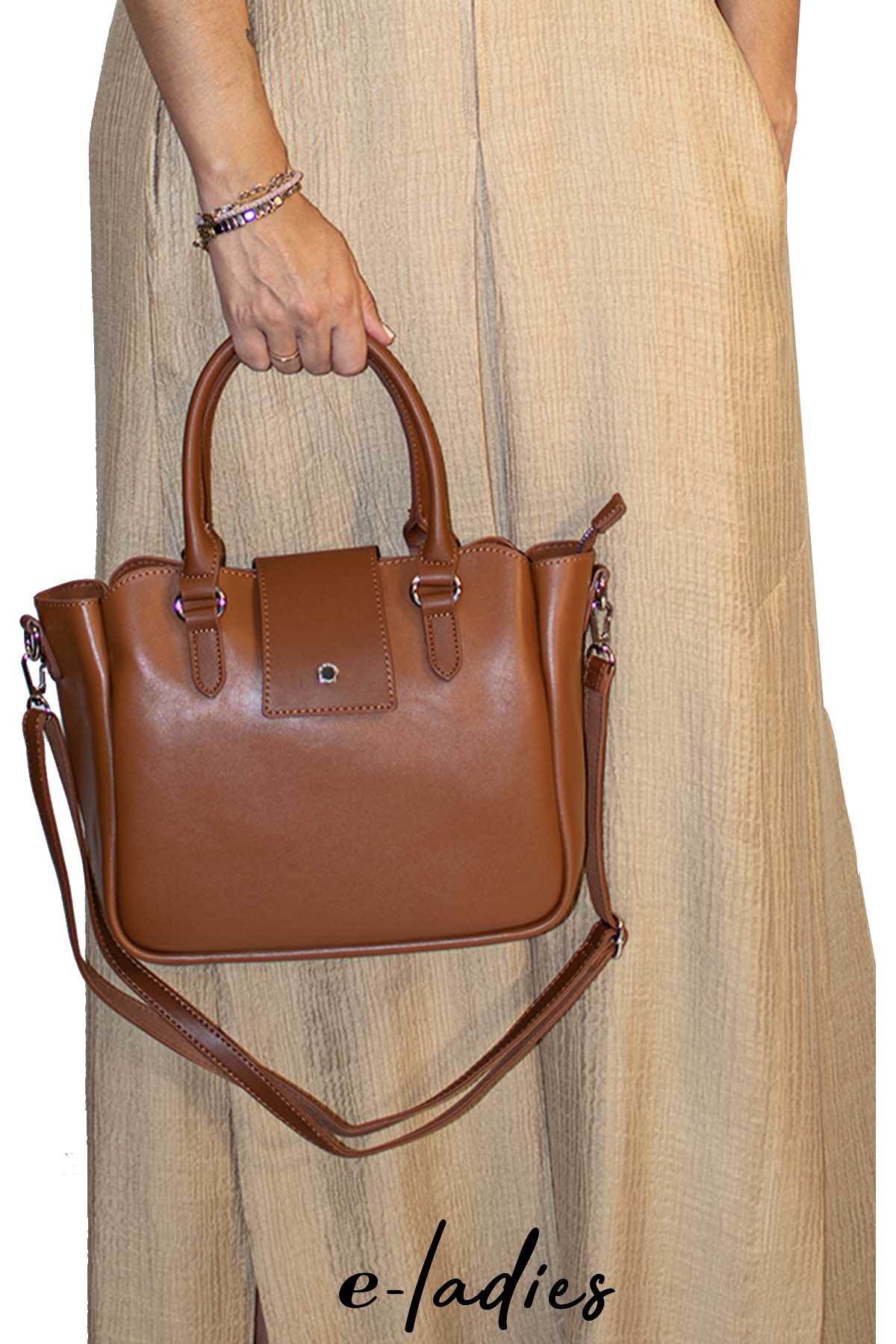 Τσάντα χειρός ταμπά σε μεσαίο μέγεθος, με μαγνητικό κλείσιμο και φερμουάρ. Διαθέτει επιπλέον μακρύτερο λουρί. Διαστάσεις: 27X22. Σύνθεση: Οικολογικό δέρμα