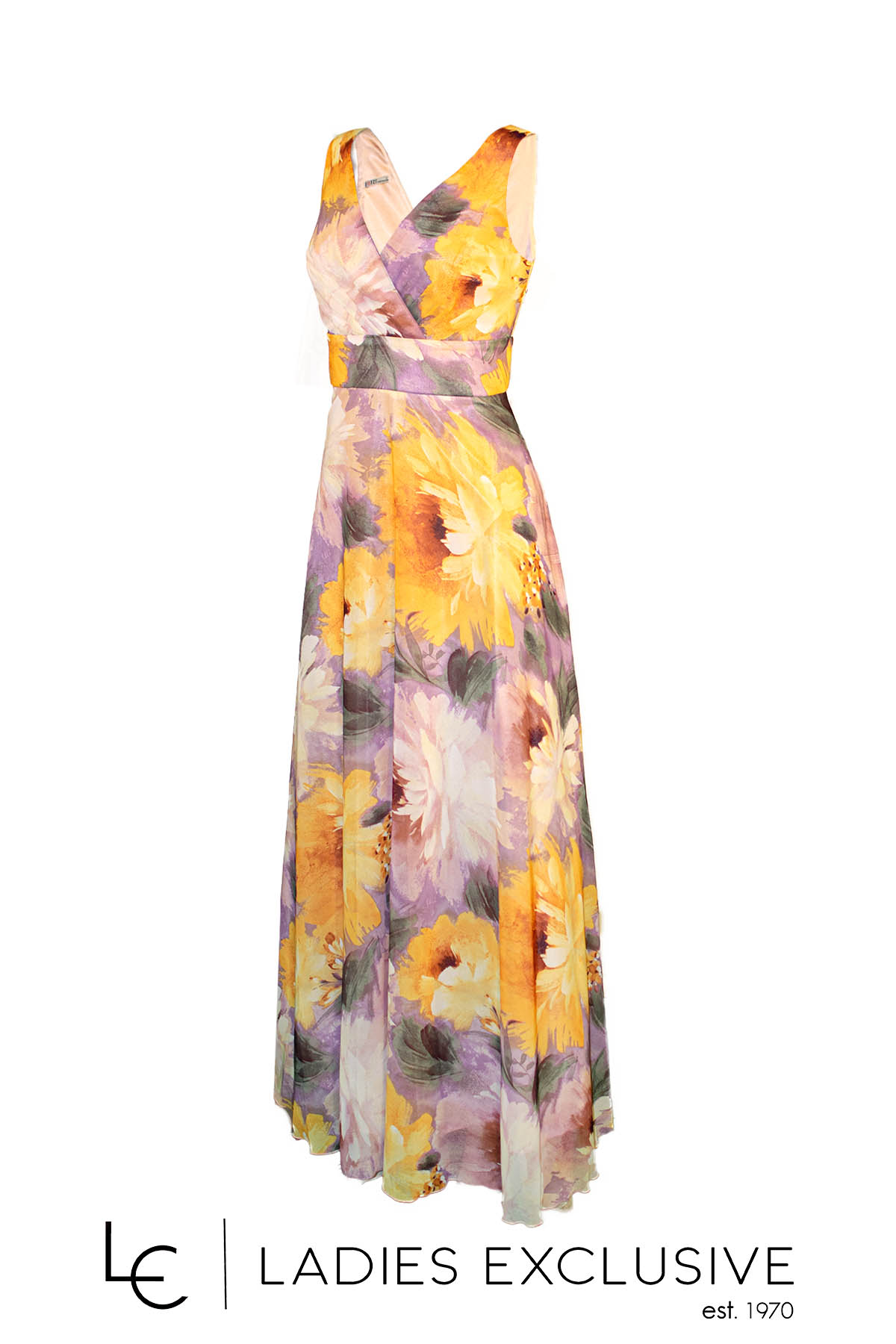 EFFECT Φόρεμα αμάνικο κρουαζέ μακρύ με μουσελίνα εξωτερικά.