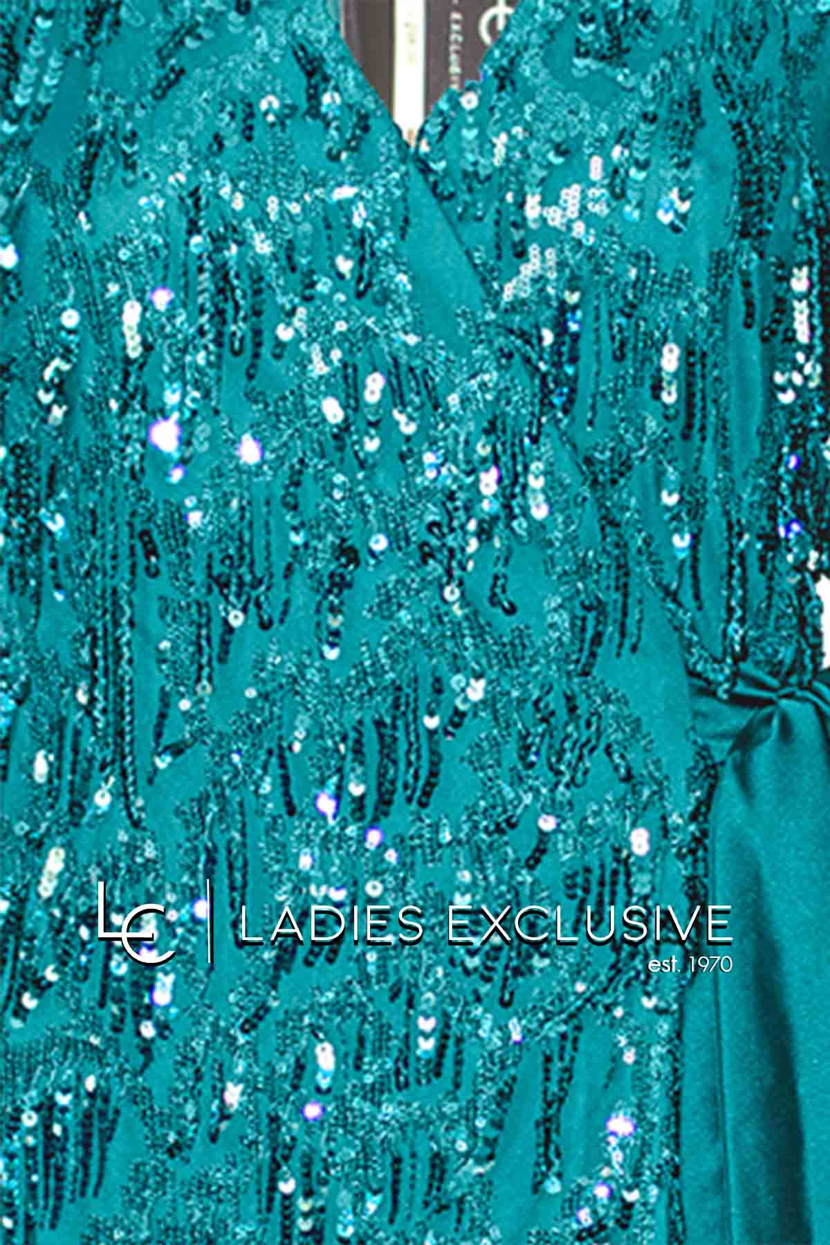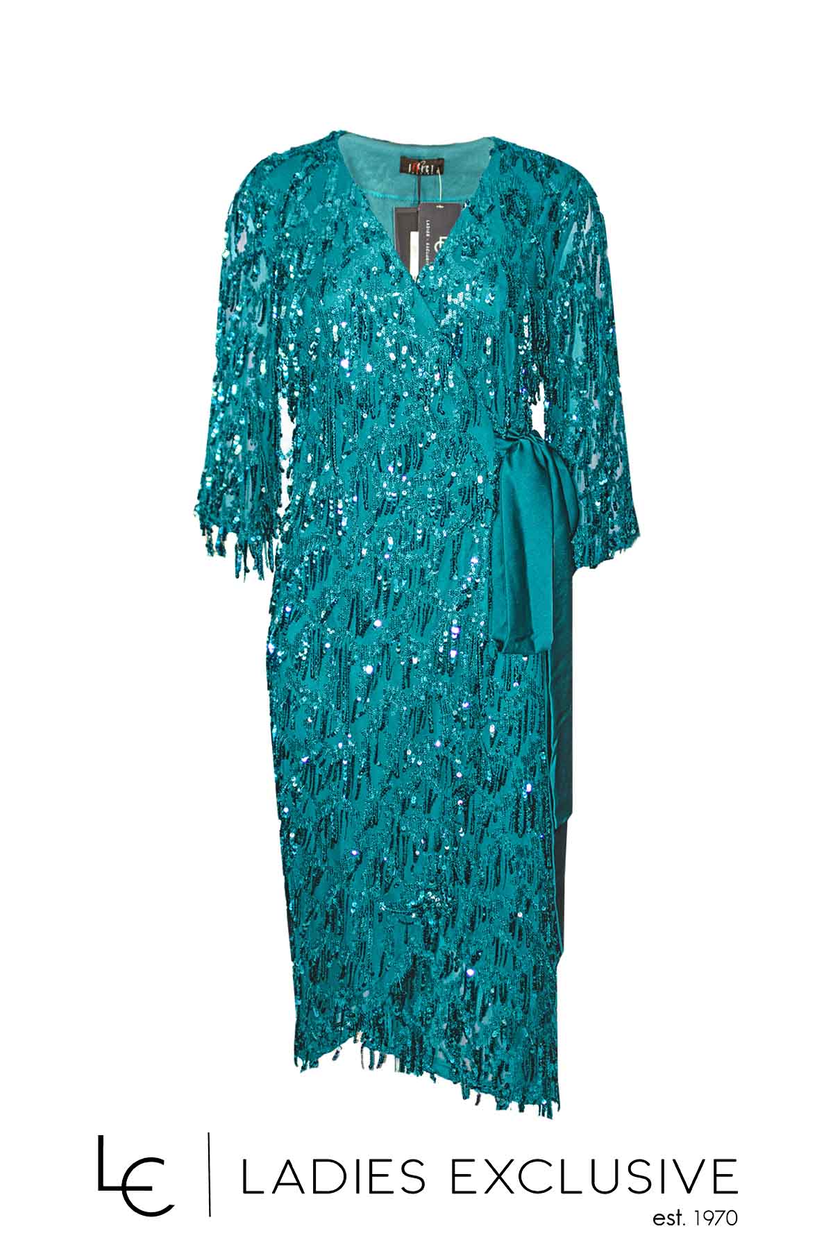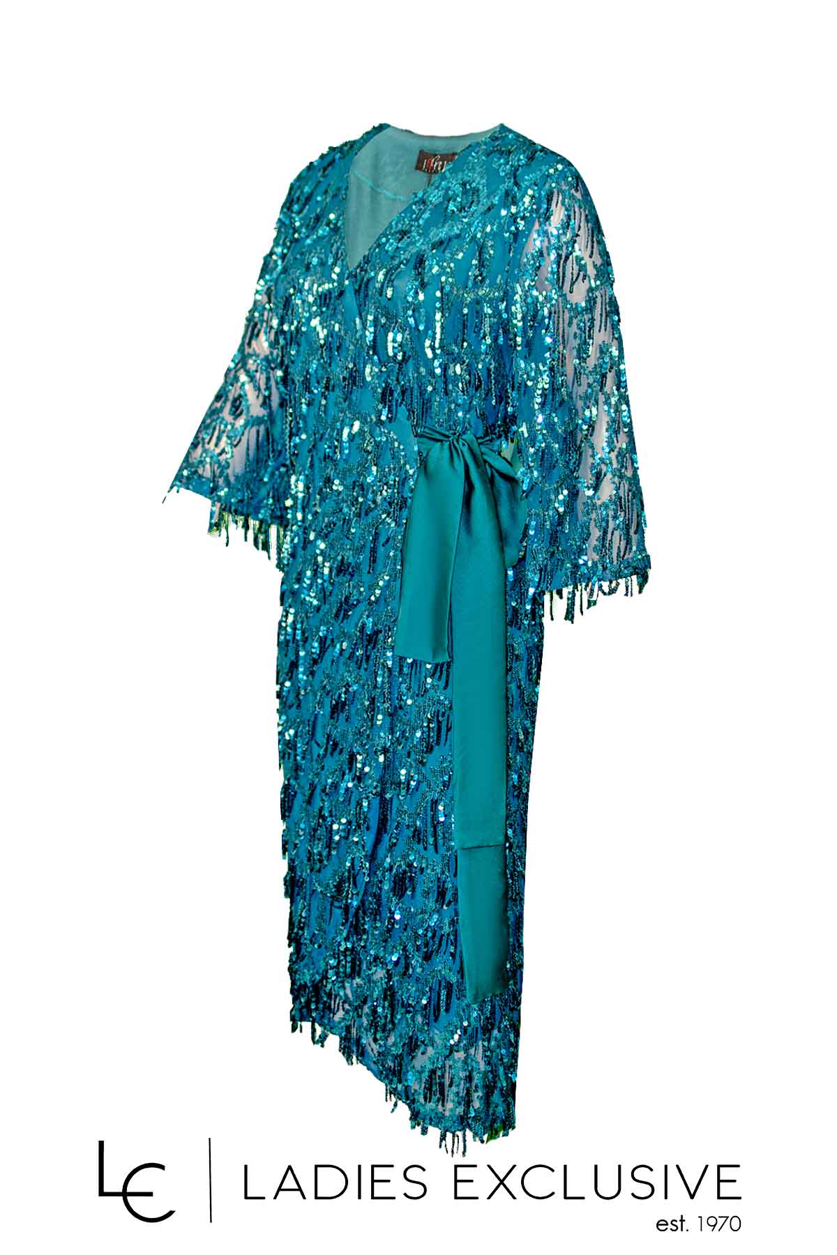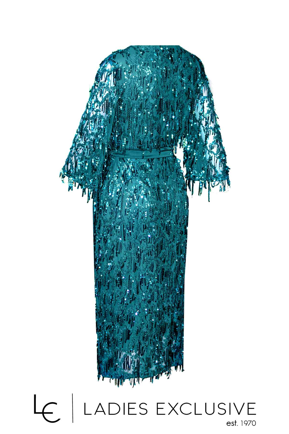 EFFECT Φόρεμα πετρόλ βραδινό κιμονό με παγιέτες, μανίκι 3/4 και σατέν ζώνη.