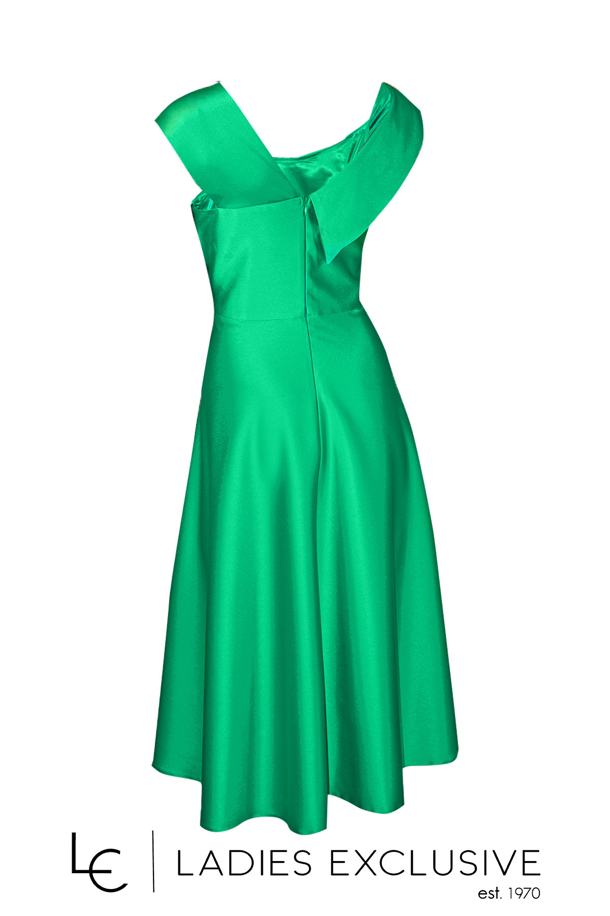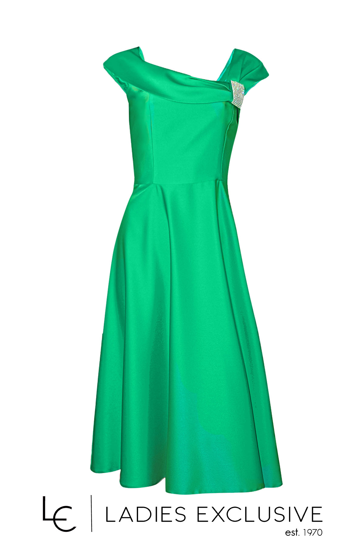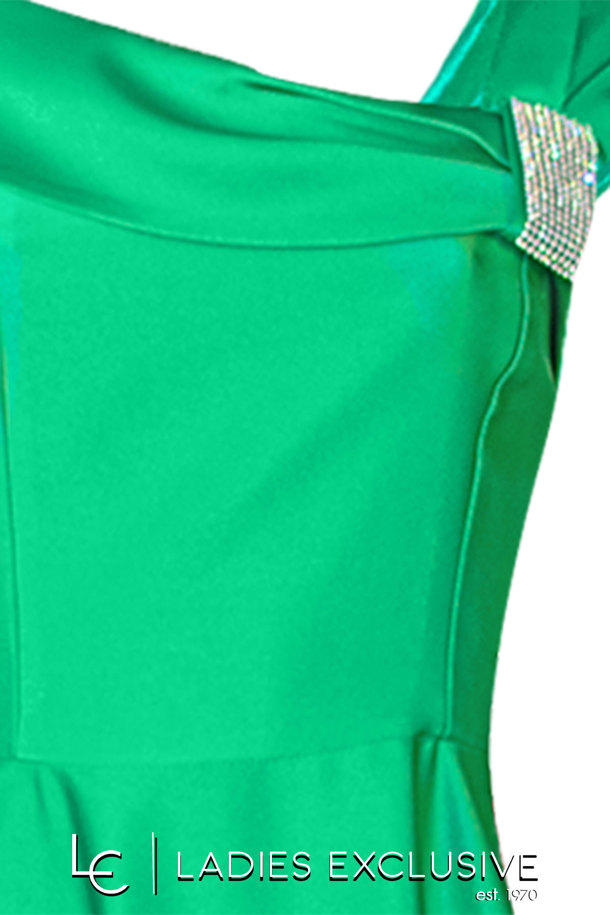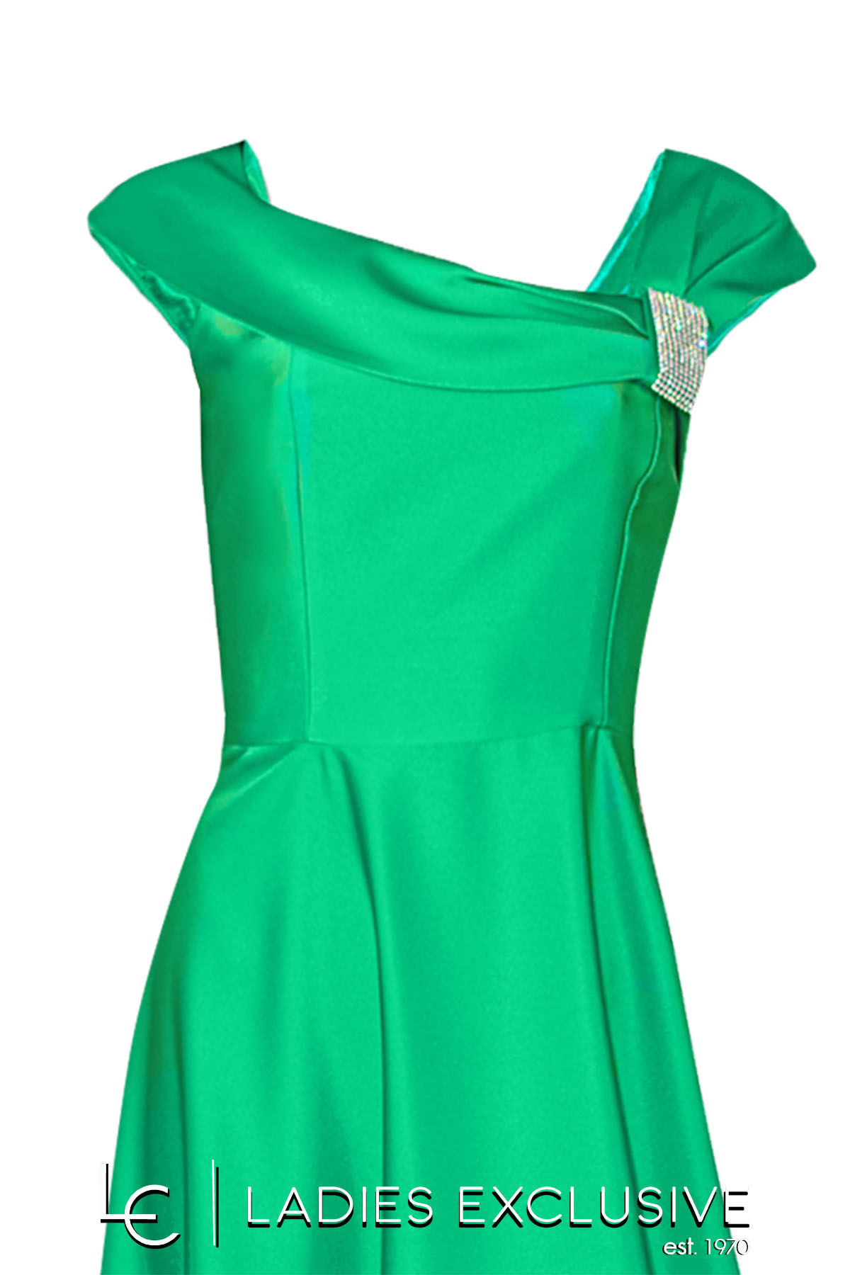 EFFECT Φόρεμα πράσινο βραδινό σατέν κλος με λεπτομέρεια κόσμημα στον ένα ώμο.
