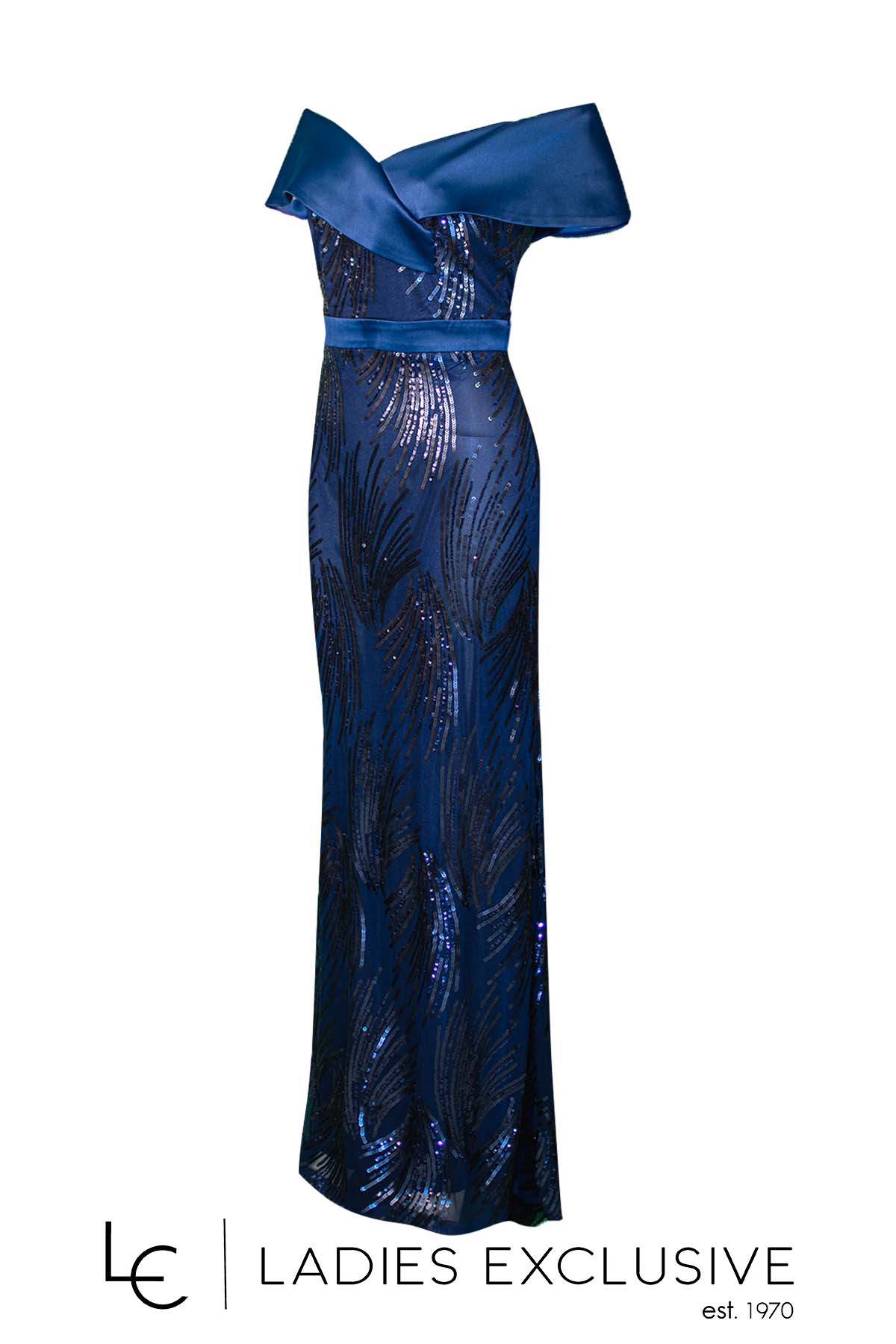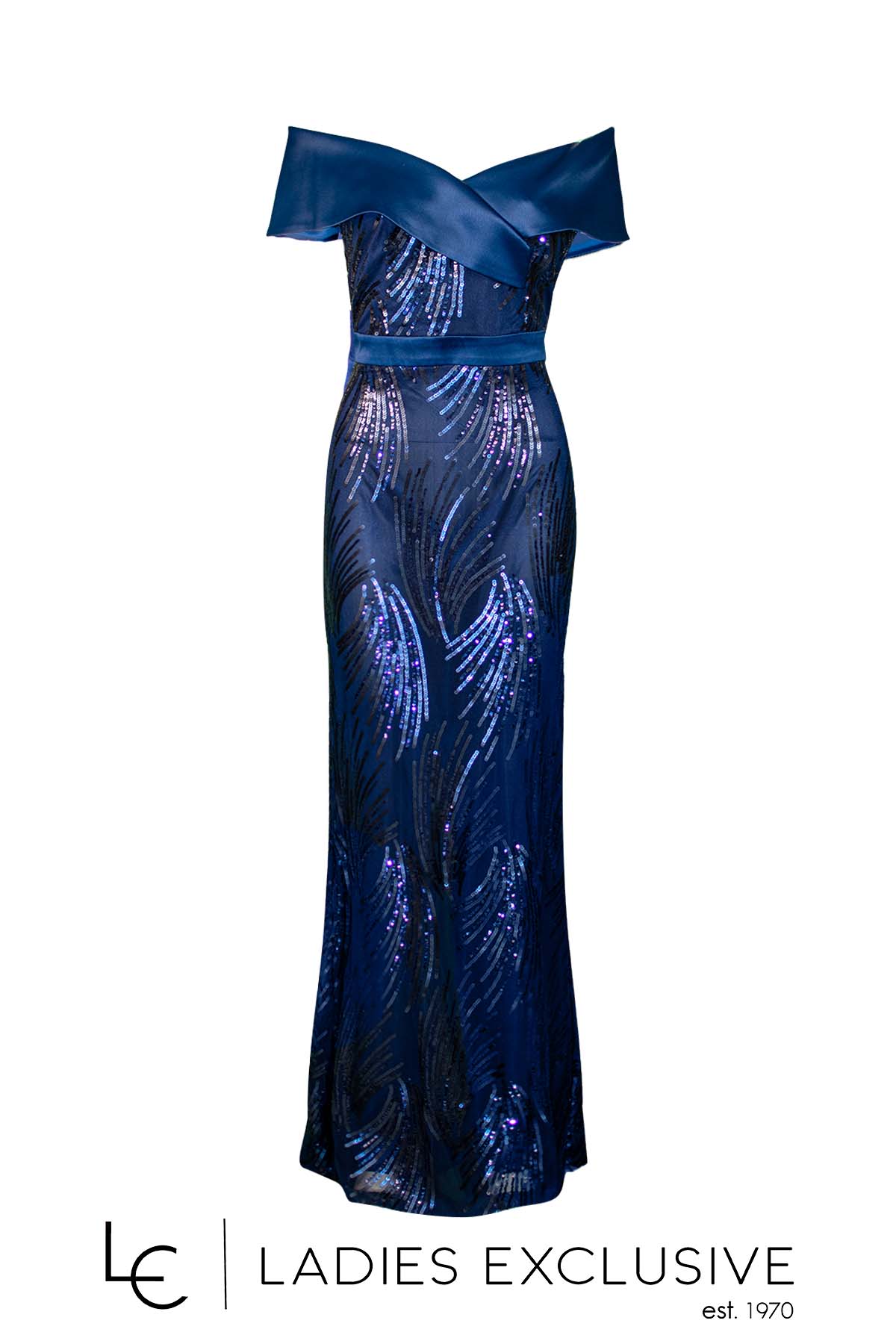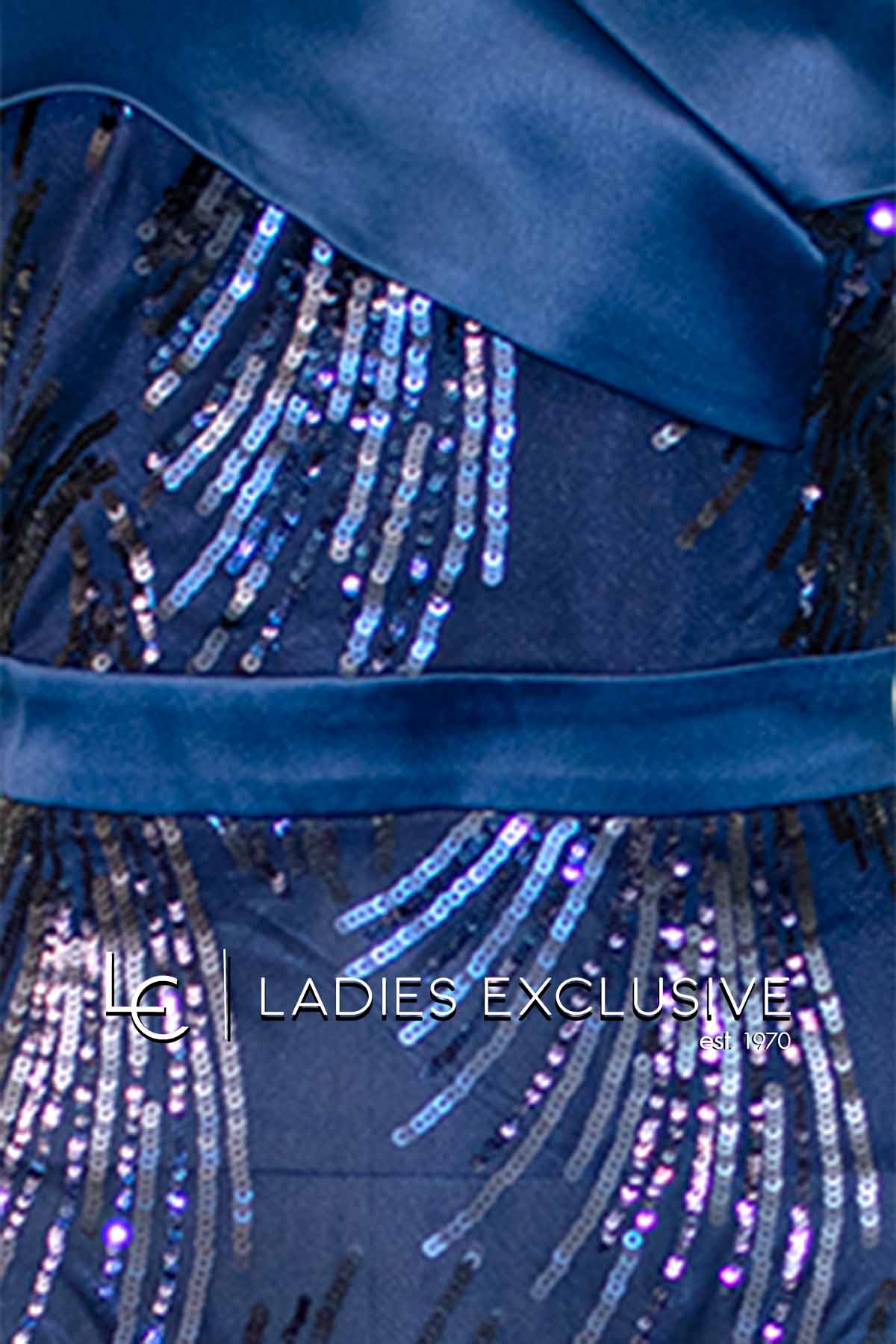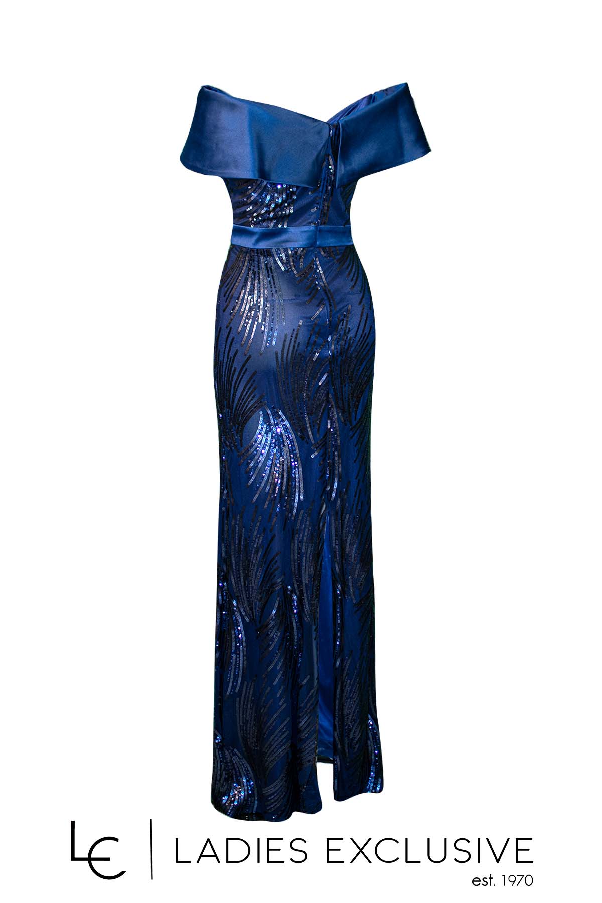 EFFECT Φόρεμα μπλε βραδινό μακρύ με παγιέτες, εξώπλατο με σατέν λεπτομέρειες.