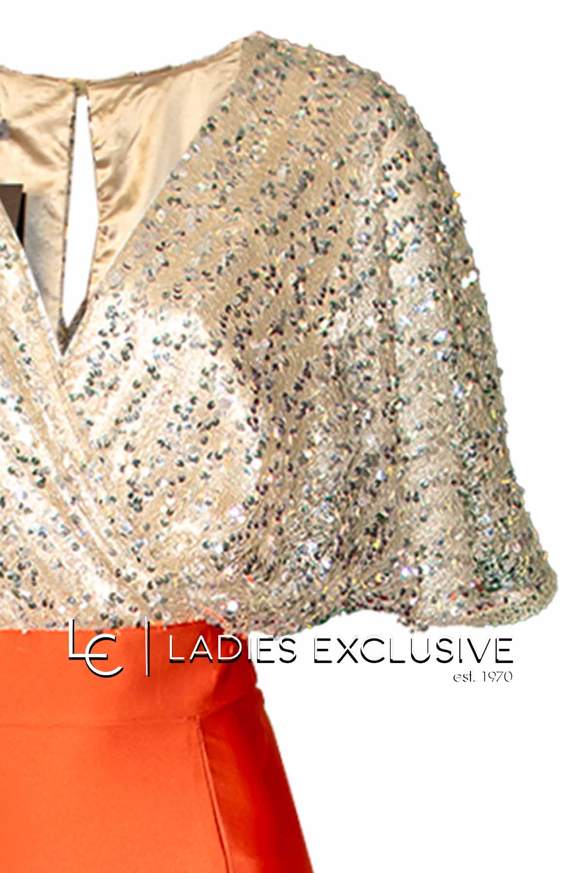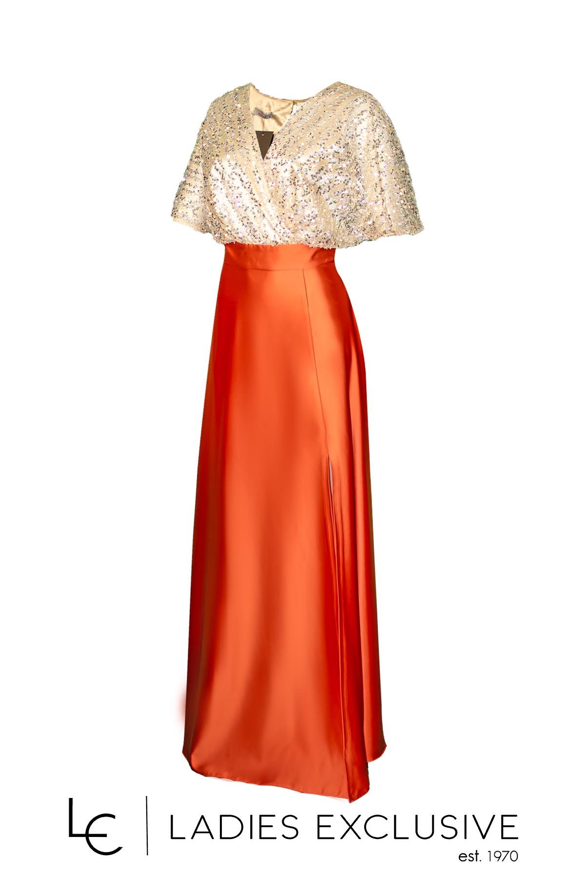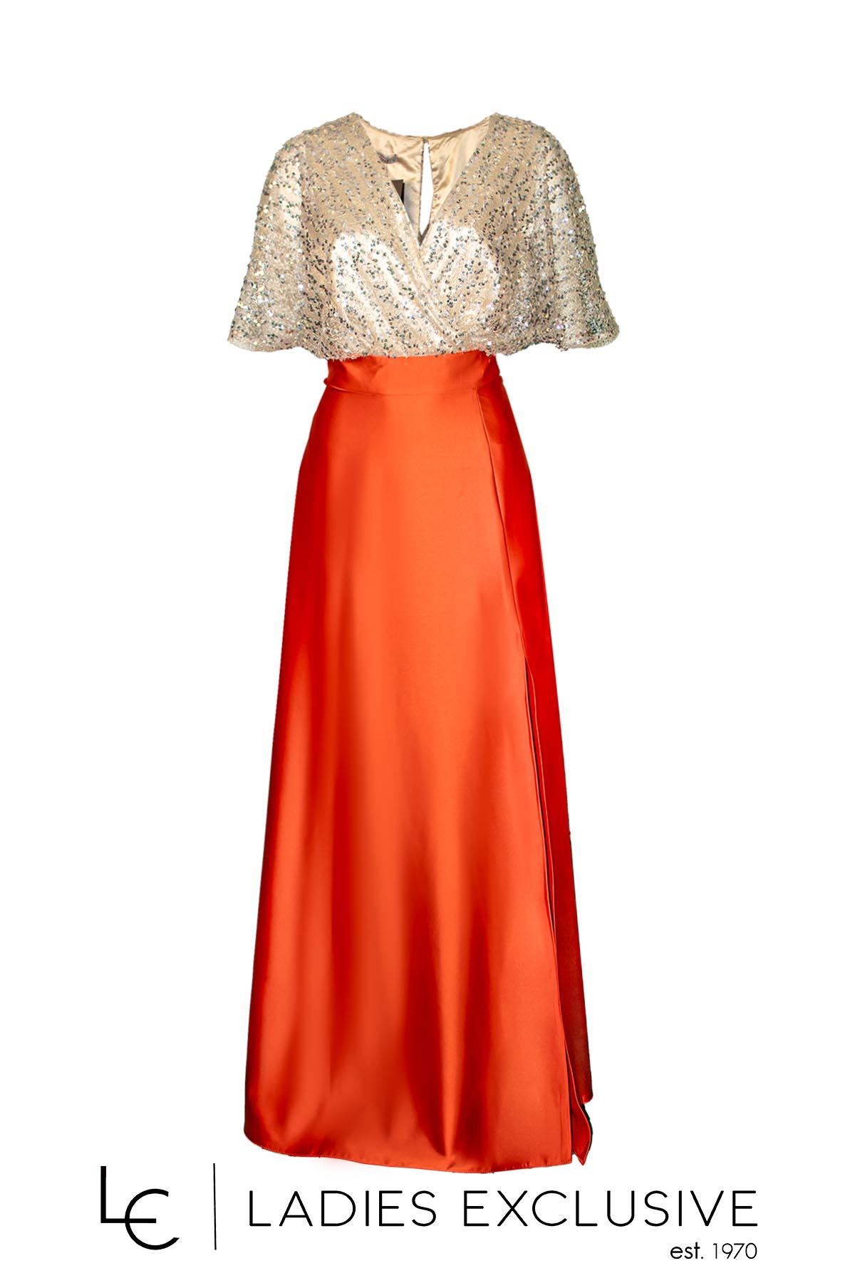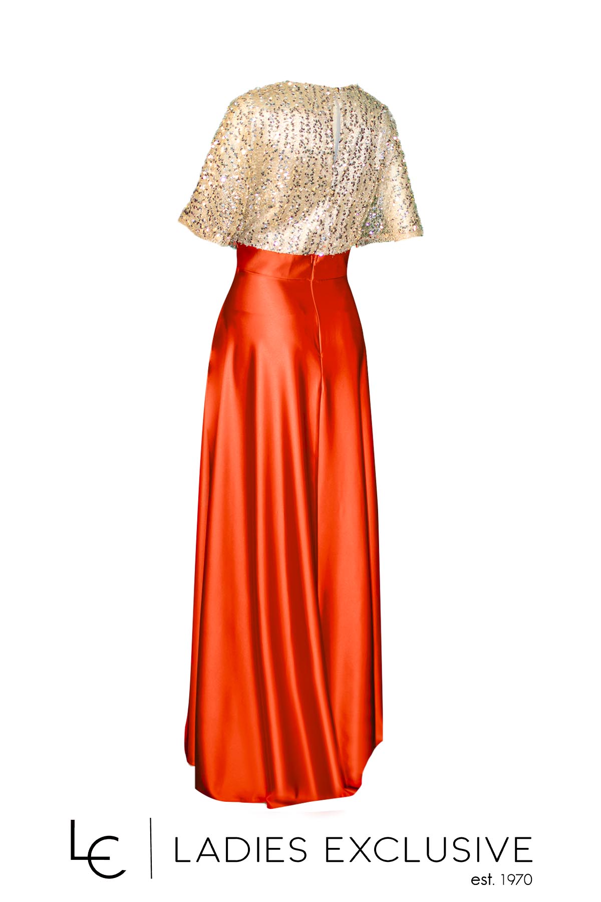 EFFECT Φόρεμα βραδινό μακρύ κρουαζέ, με χρυσές παγιέτες στο επάνω μέρος και εκάι κλος σατέν φούστα.