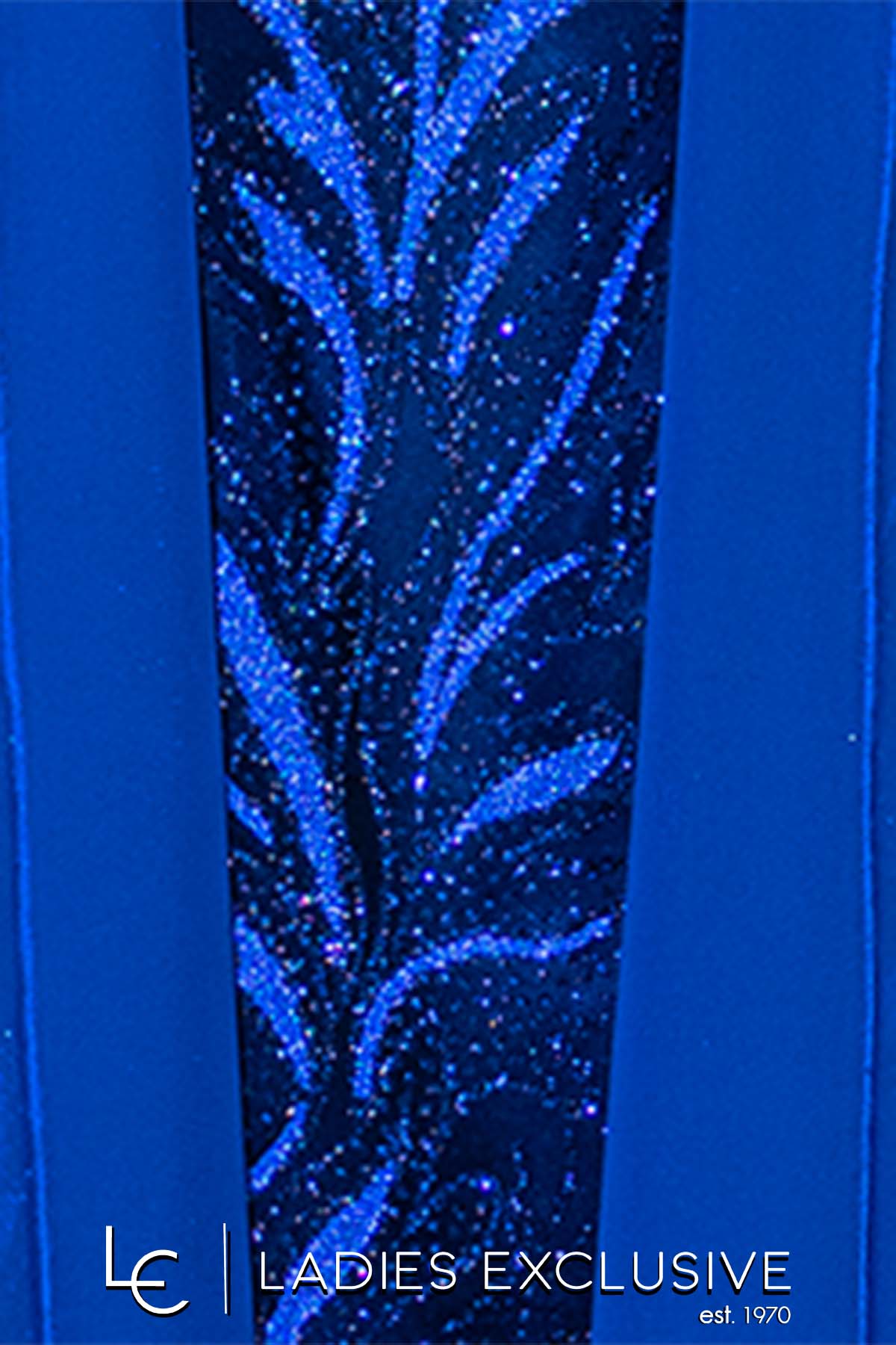 VETO Φόρεμα μπλε βραδινό μακρύ με κεντημένο μπούστο και μανίκι και αέρινη μουσελίνα με λάμψη στη φούστα. Διαθέσιμο σε μεγάλα μεγέθη.