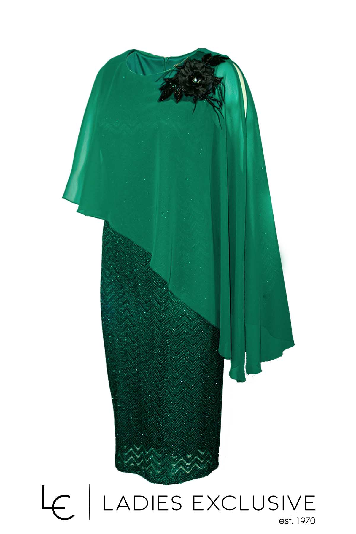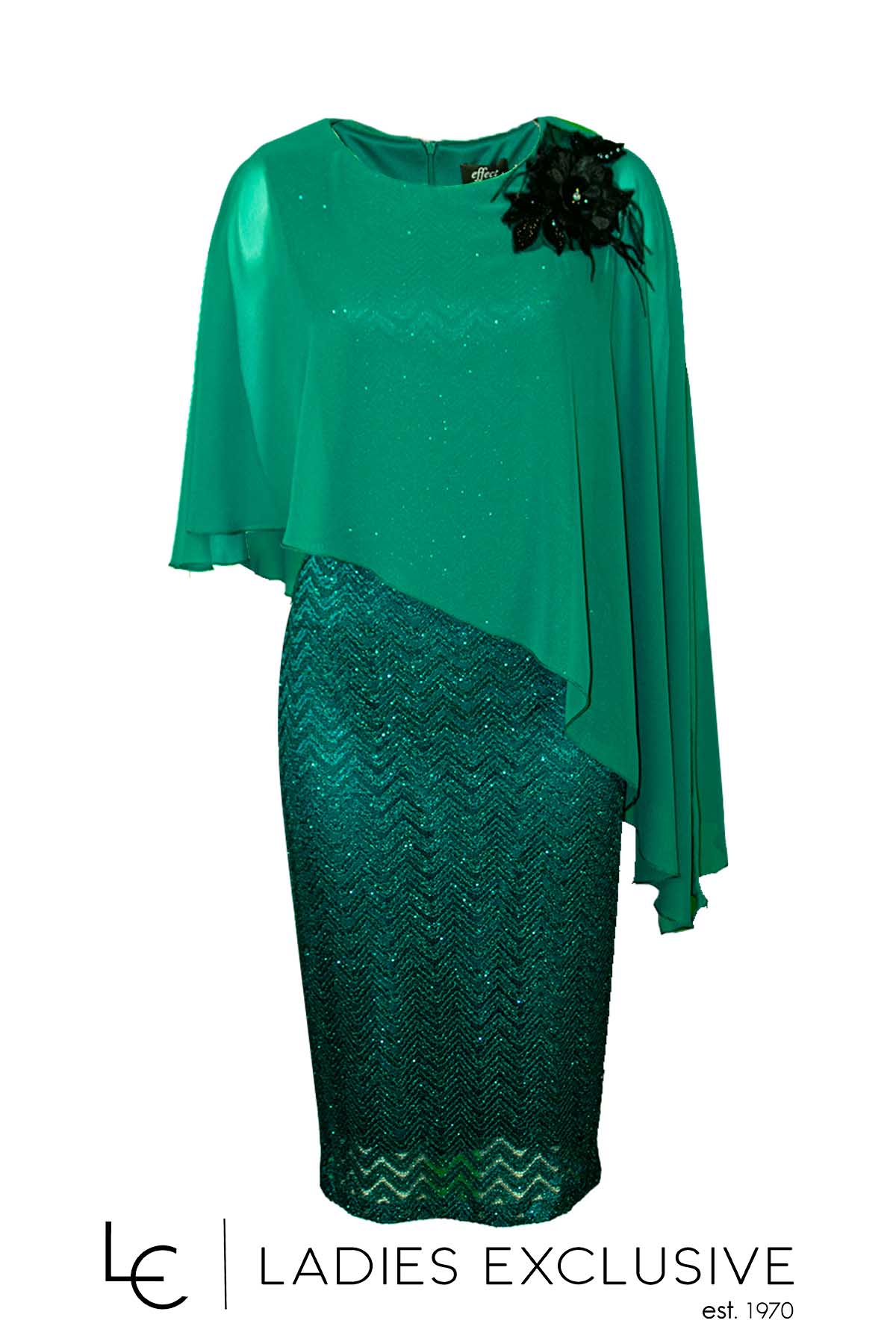 EFFECT Φόρεμα πράσινο βραδινό με μπέρτα μουσελίνα και μπουτουνιέρα.