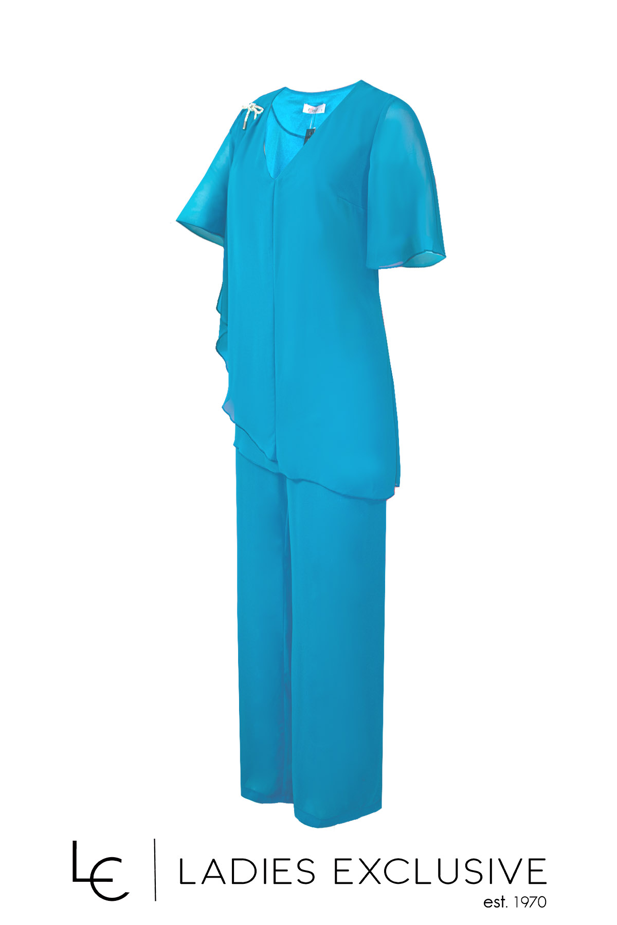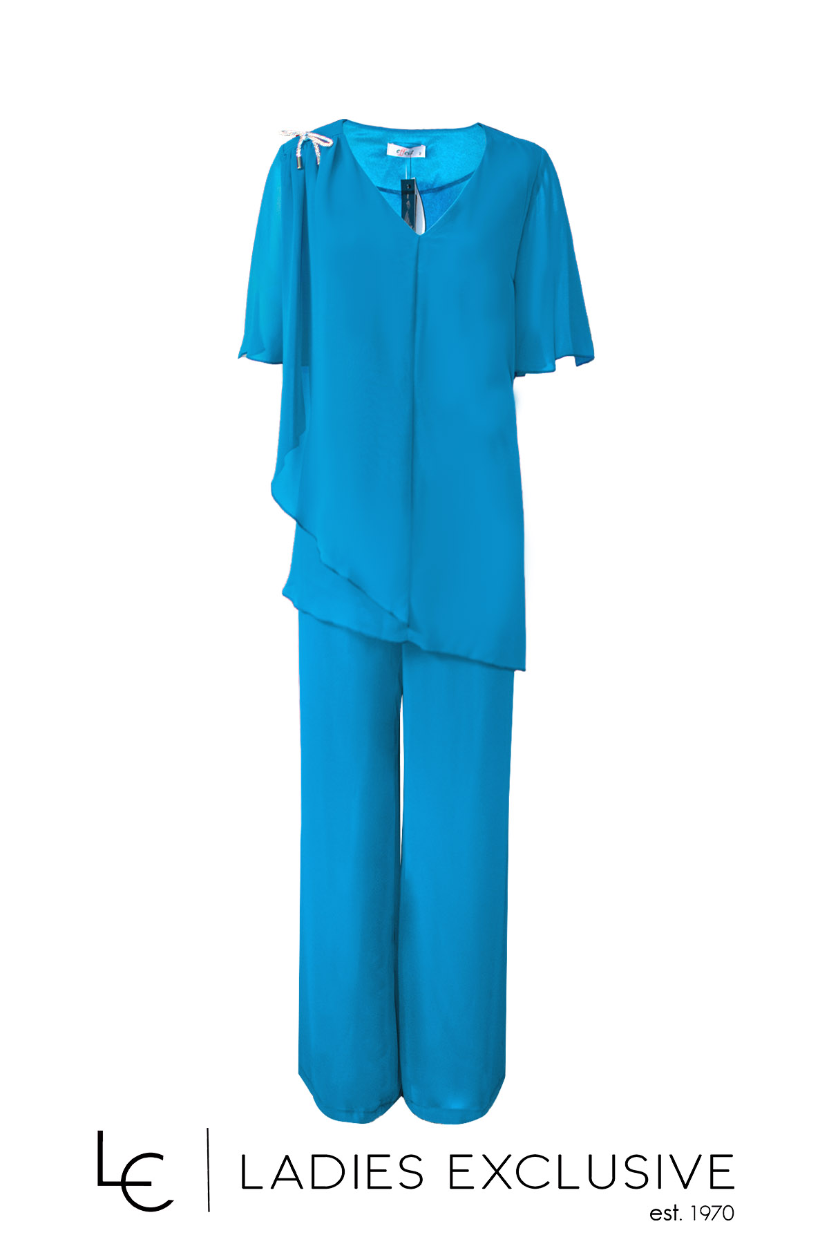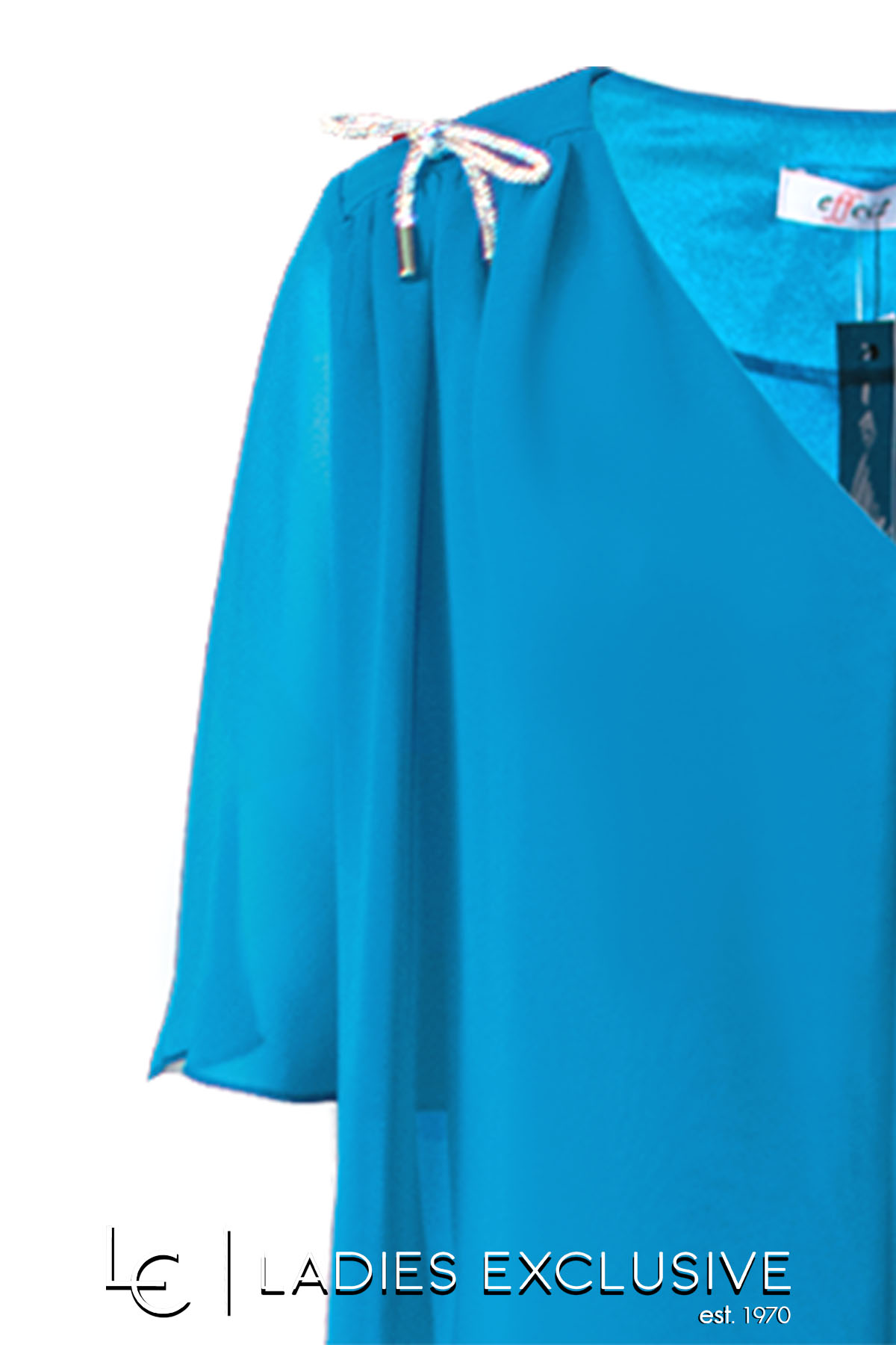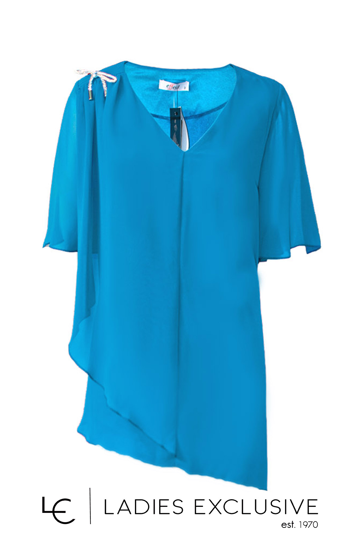 EFFECT Μπλούζα πετρόλ βραδινή κοντομάνικη από μουσελίνα ριχτή, με άνοιγμα v και ιδιαίτερη λεπτομέρεια φιόγκο από στρας. Γίνεται σετ με την παντελόνα με κωδικό 24-501-2494.11.