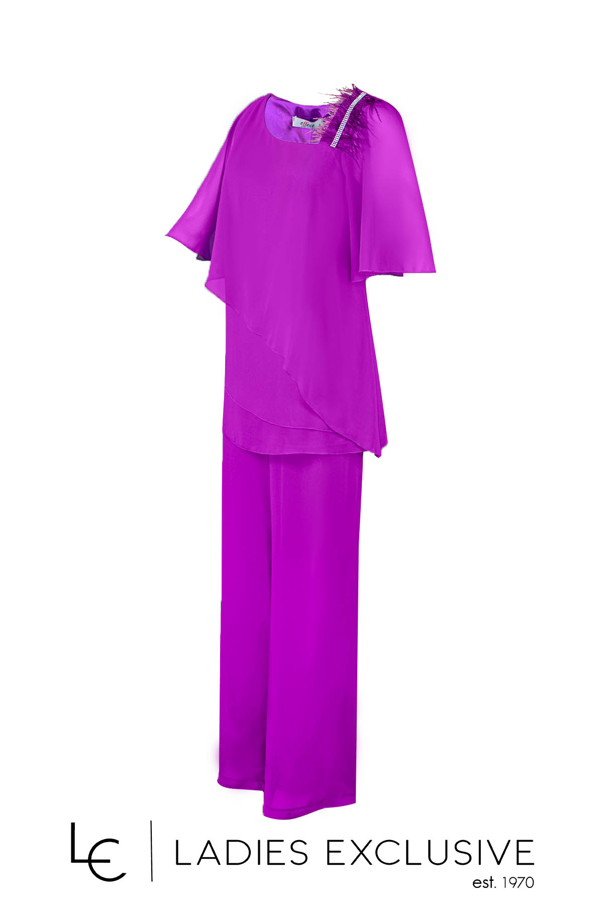 EFFECT Παντελόνα ματζέντα από μουσελίνα με λάστιχο στη μέση. Γίνεται σετ με την μπλούζα με κωδικό 24-506-2495.33.