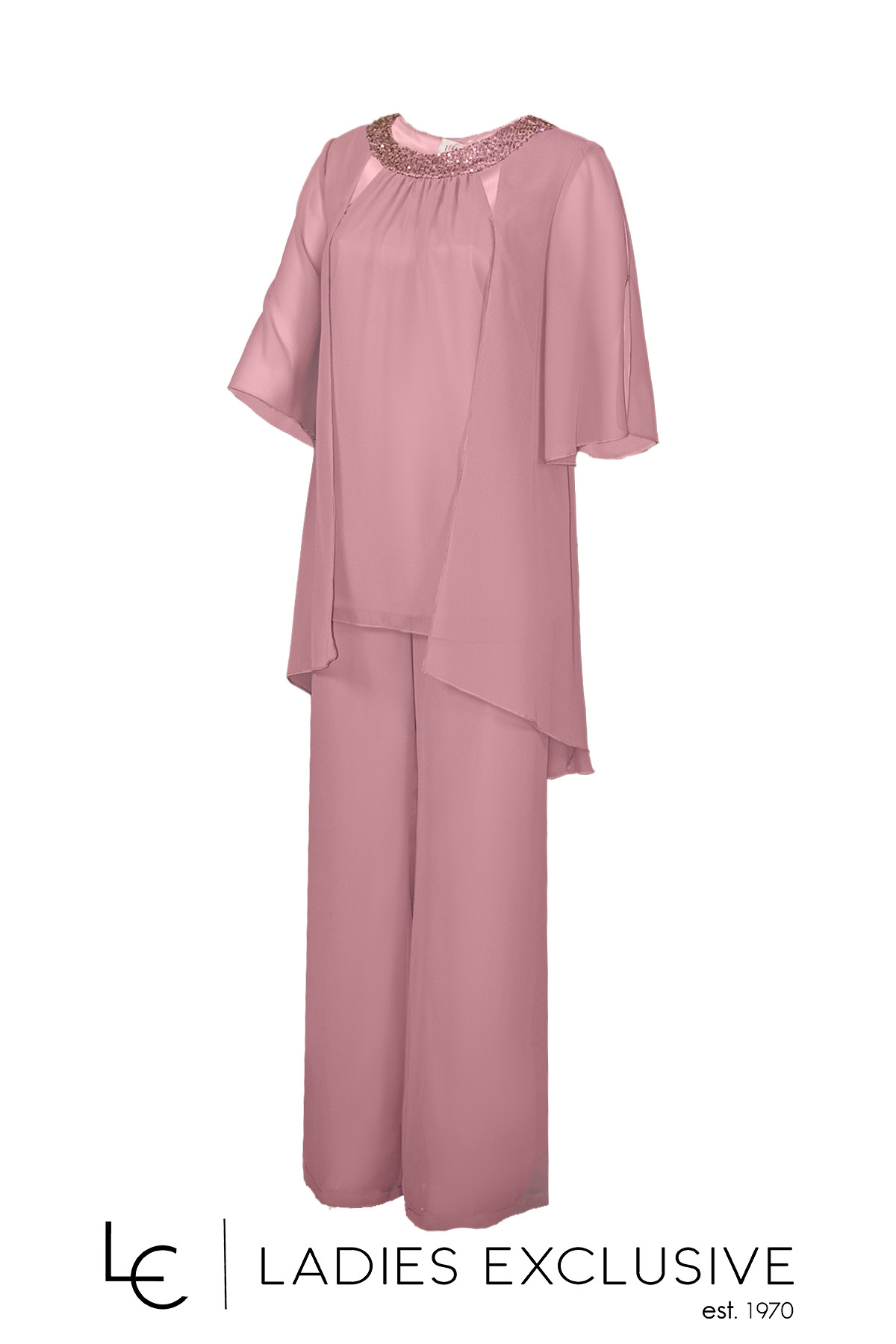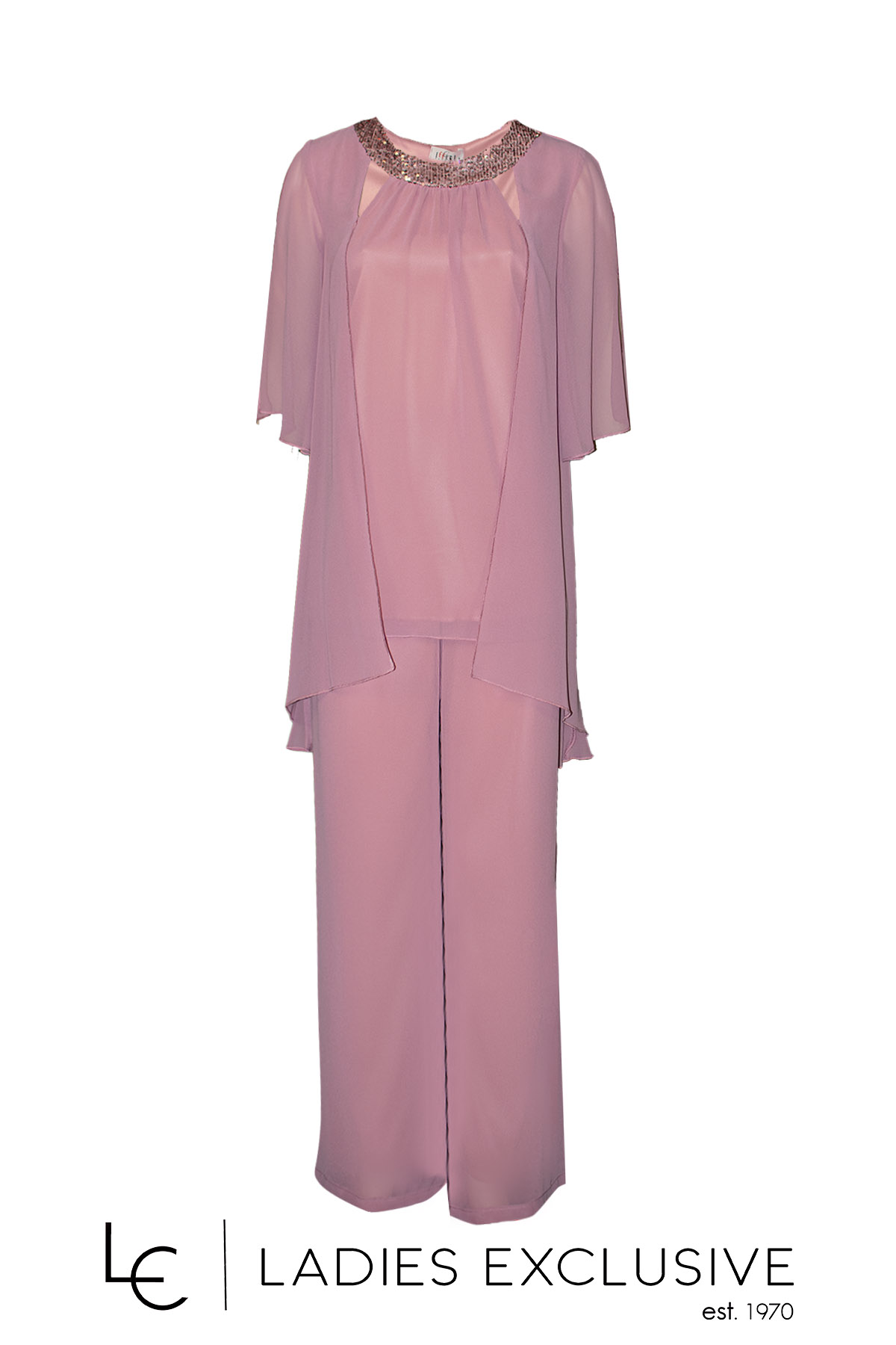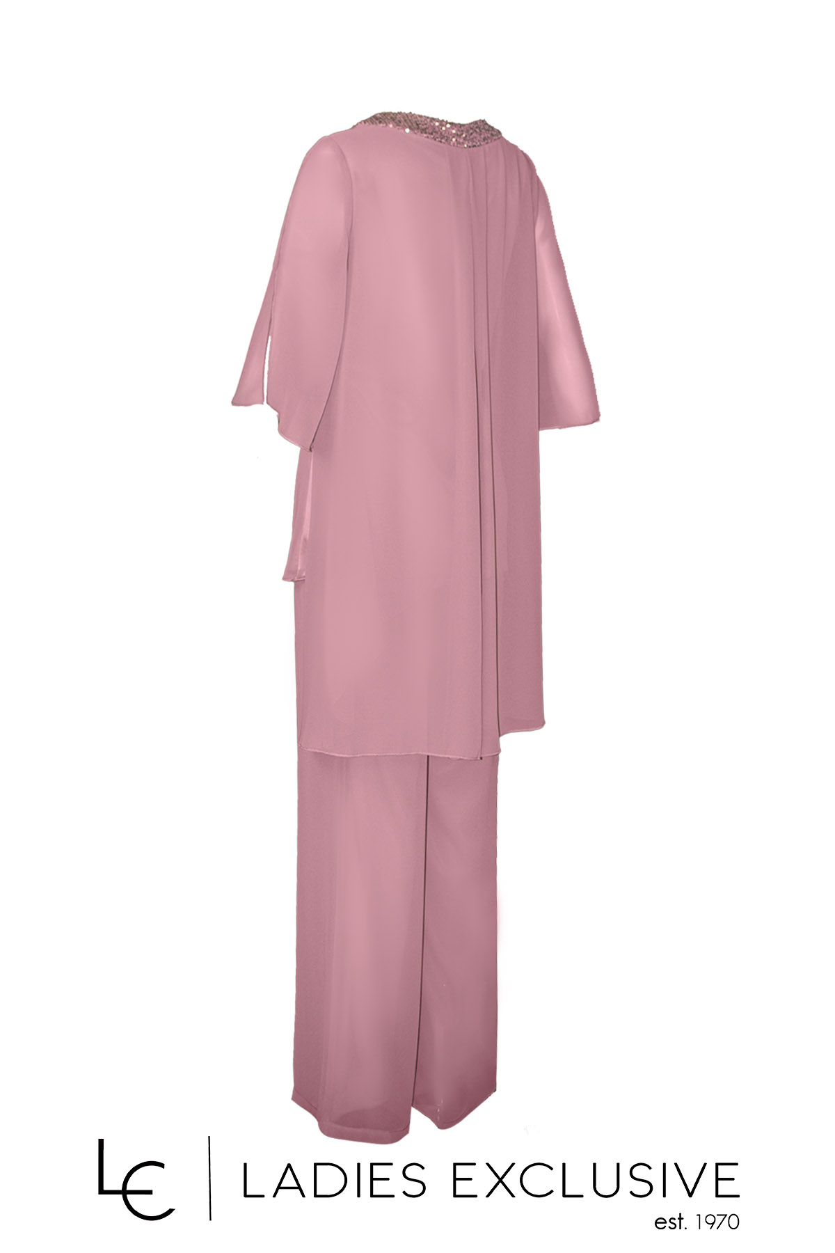 EFFECT Σετ 2 τεμαχίων ροζ, που αποτελείται από μπλούζα από αέρινη μουσελίνα με παγιέτες στη λαιμόκοψη και παντελόνα από μουσελίνα με λάστιχο στη μέση.