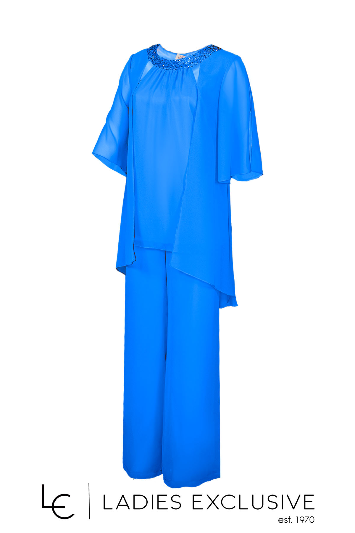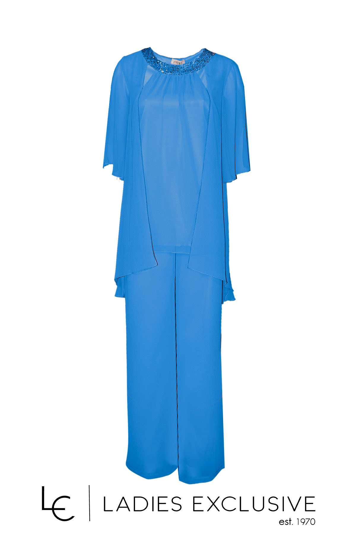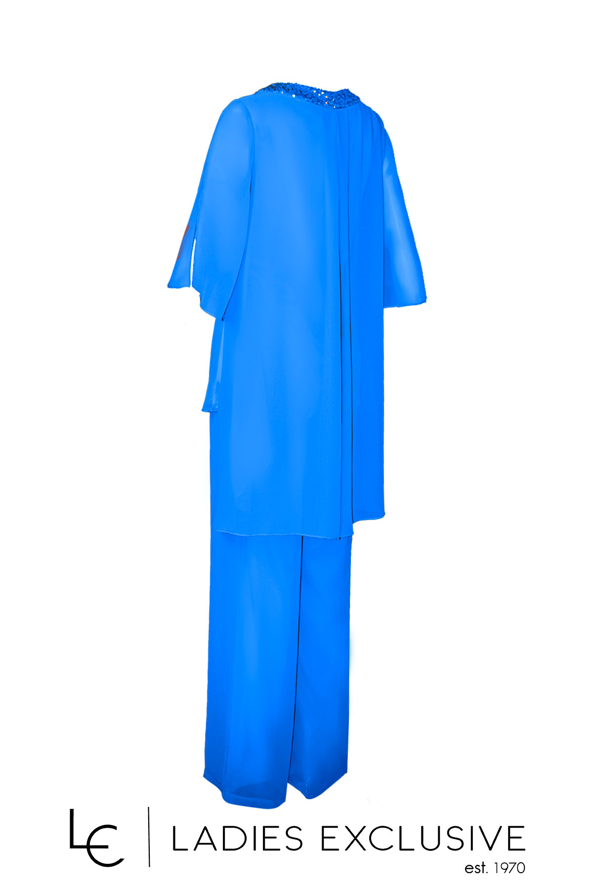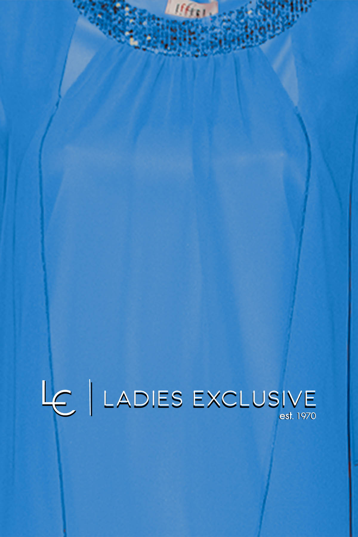 EFFECT Σετ 2 τεμαχίων μπλε ρουά, που αποτελείται από μπλούζα από αέρινη μουσελίνα με παγιέτες στη λαιμόκοψη και παντελόνα από μουσελίνα με λάστιχο στη μέση.