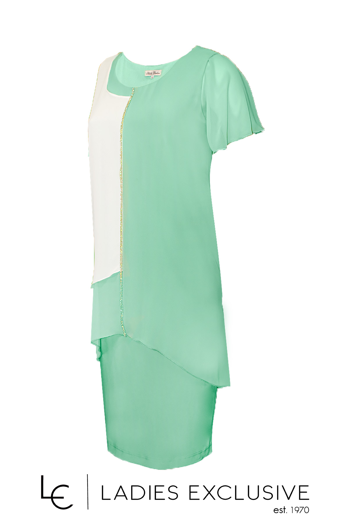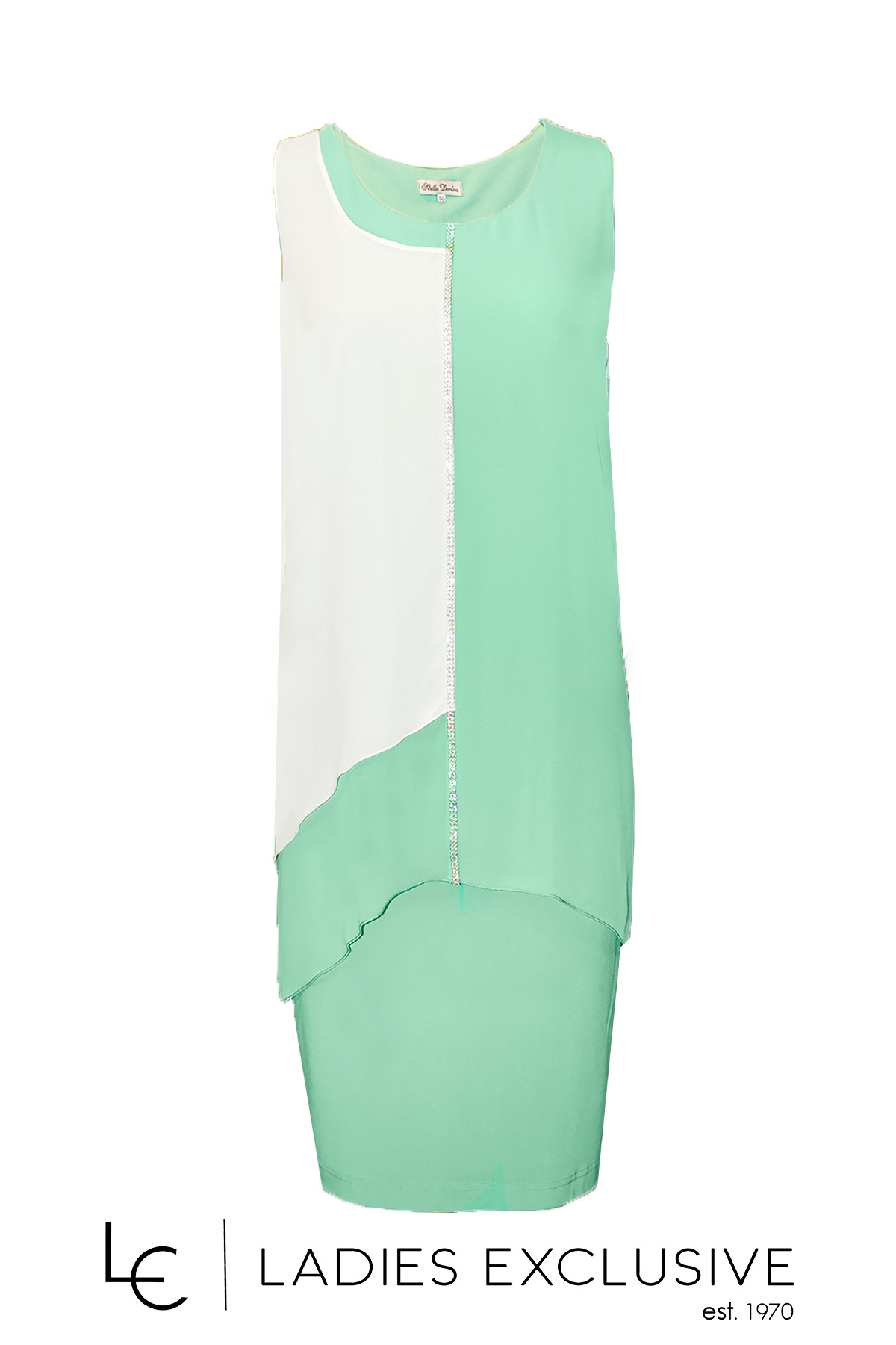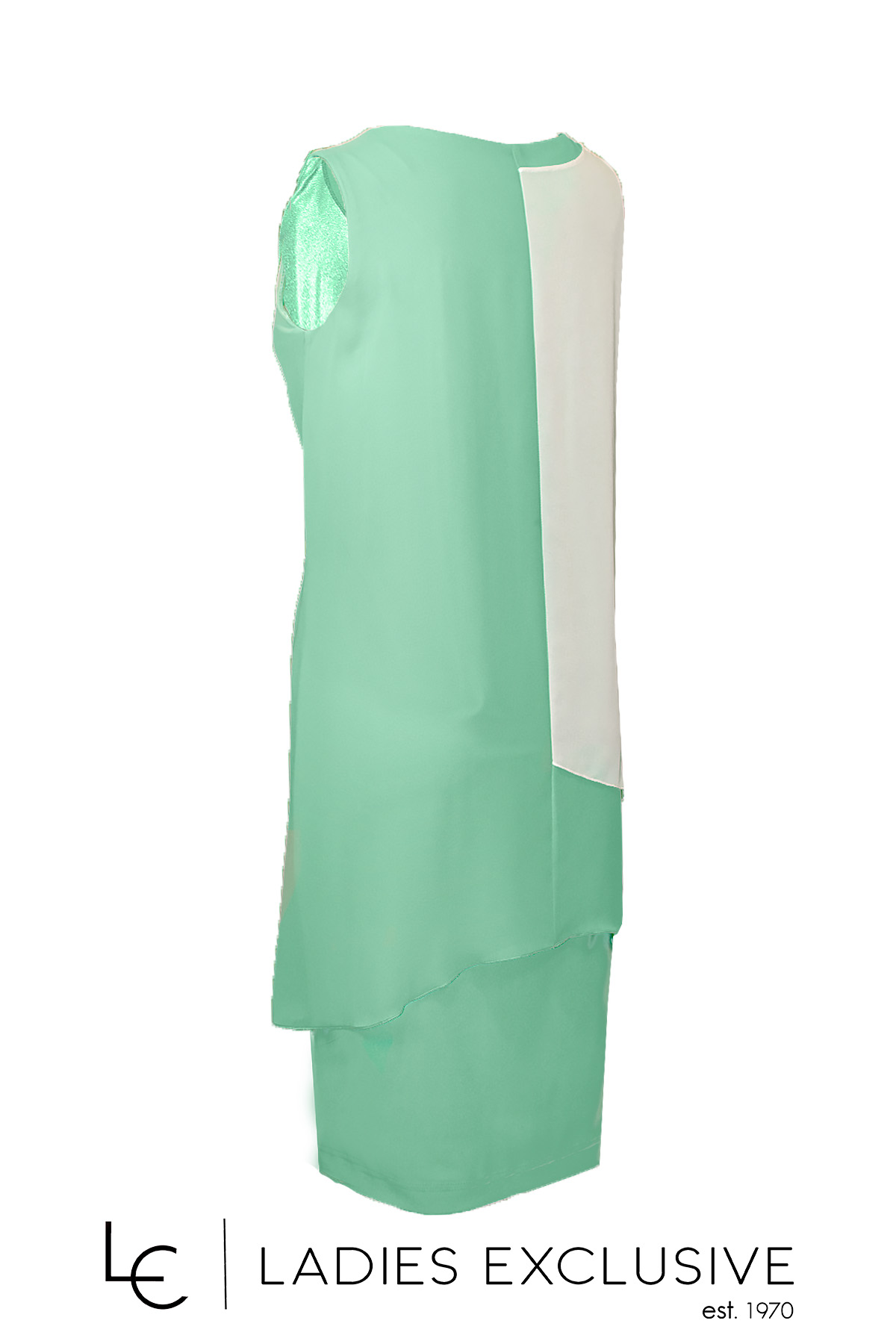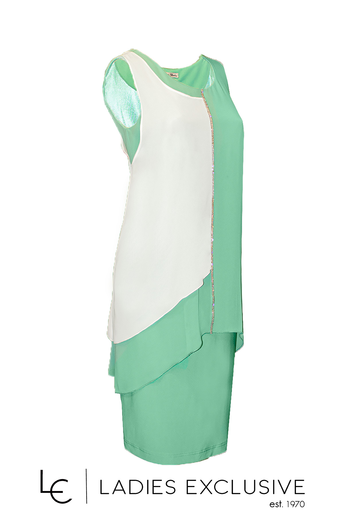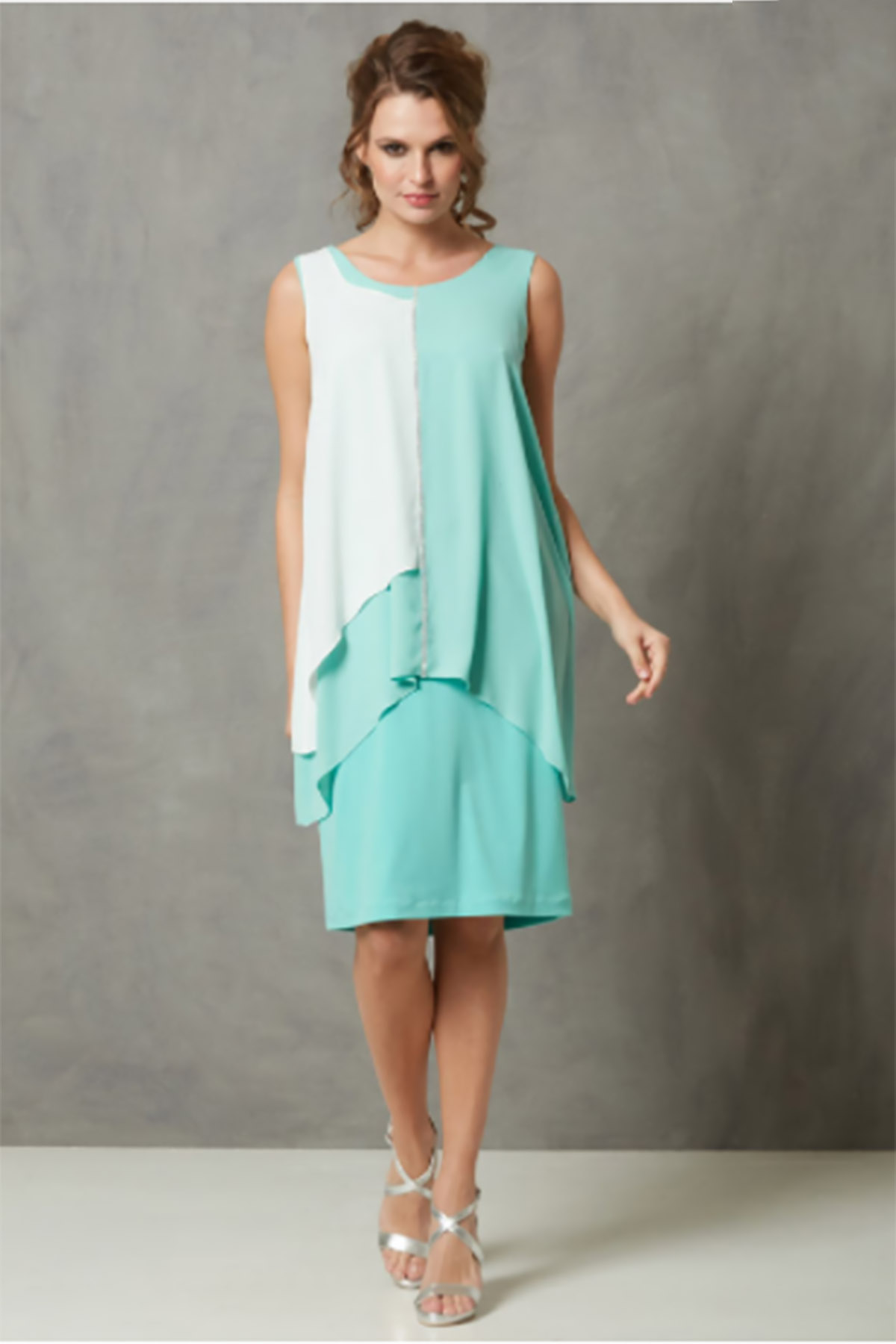 STELLA DERLOU Φόρεμα βραδινό βεραμάν μέχρι το γόνατο αμάνικο από ελαστικό ύφασμα εσωτερικά και ζορζέτα εξωτερικά που πέφτει ανάλαφρα στο σώμα. Υπάρχει επιπλέον ύφασμα για την τοποθέτηση μανικιών.