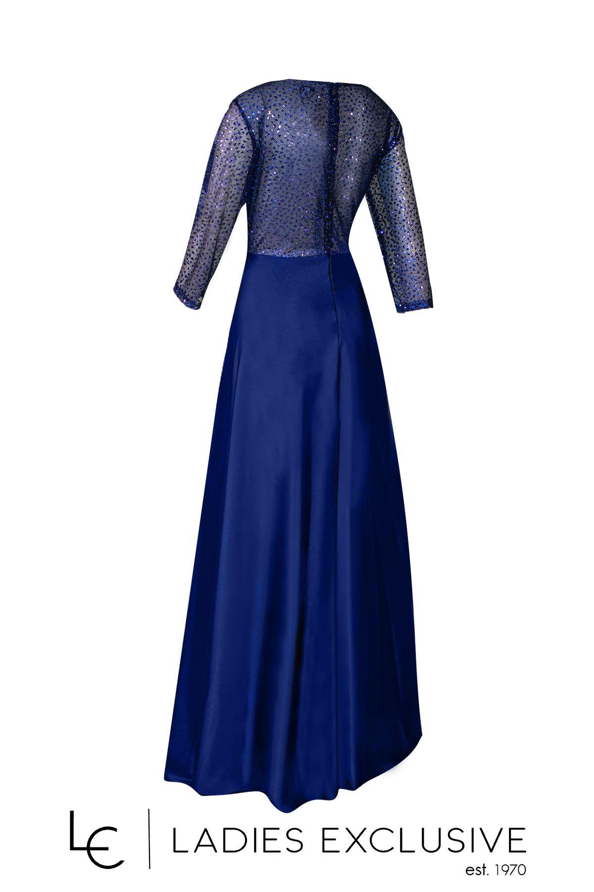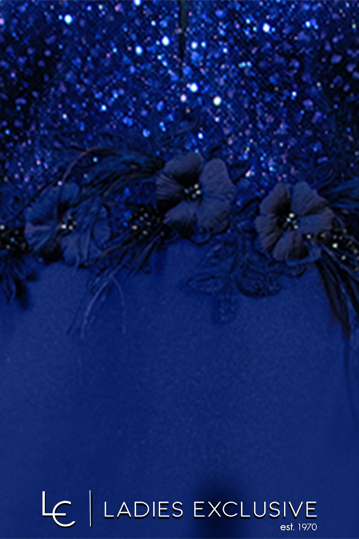 VETO Φόρεμα ίντιγκο βραδινό μακρύ κοντομάνικο, με κεντημένο μπούστο και λάμψη στη φούστα. Διαθέσιμο σε μεγάλα μεγέθη.