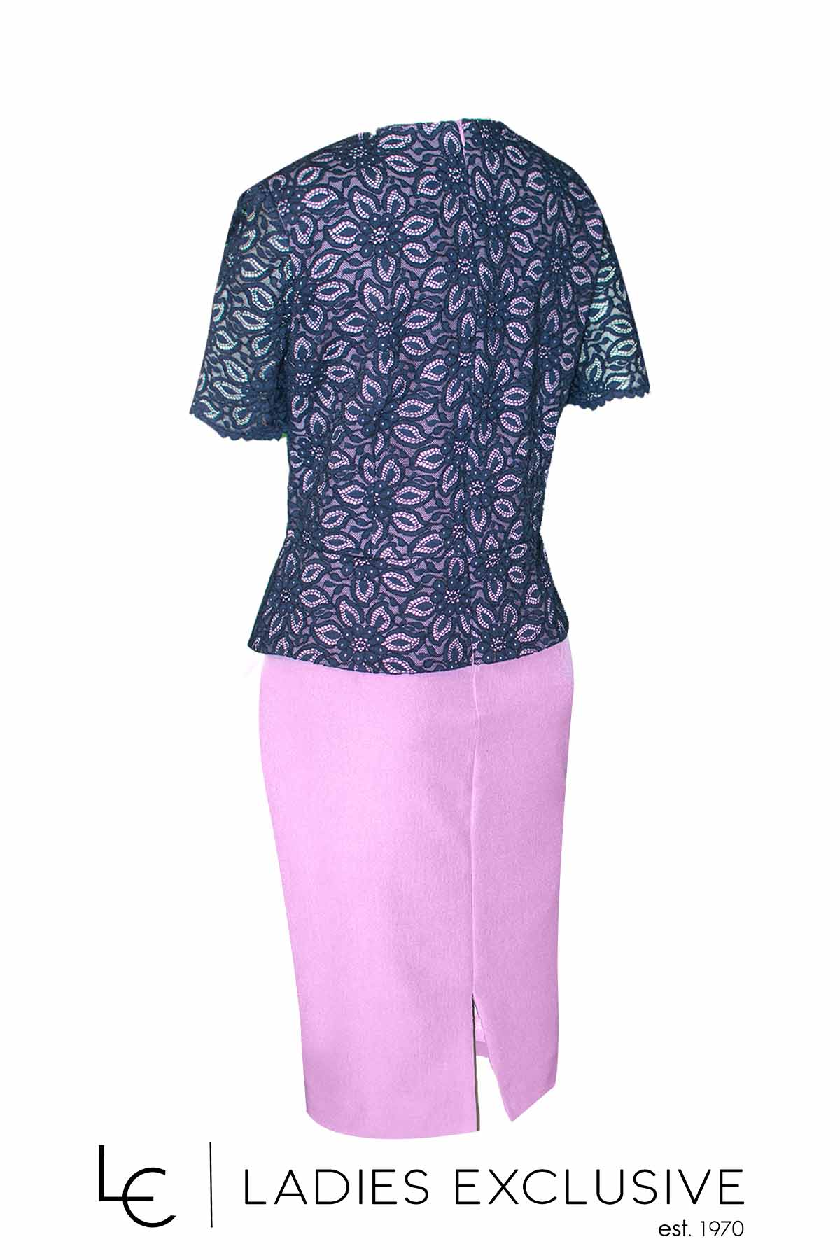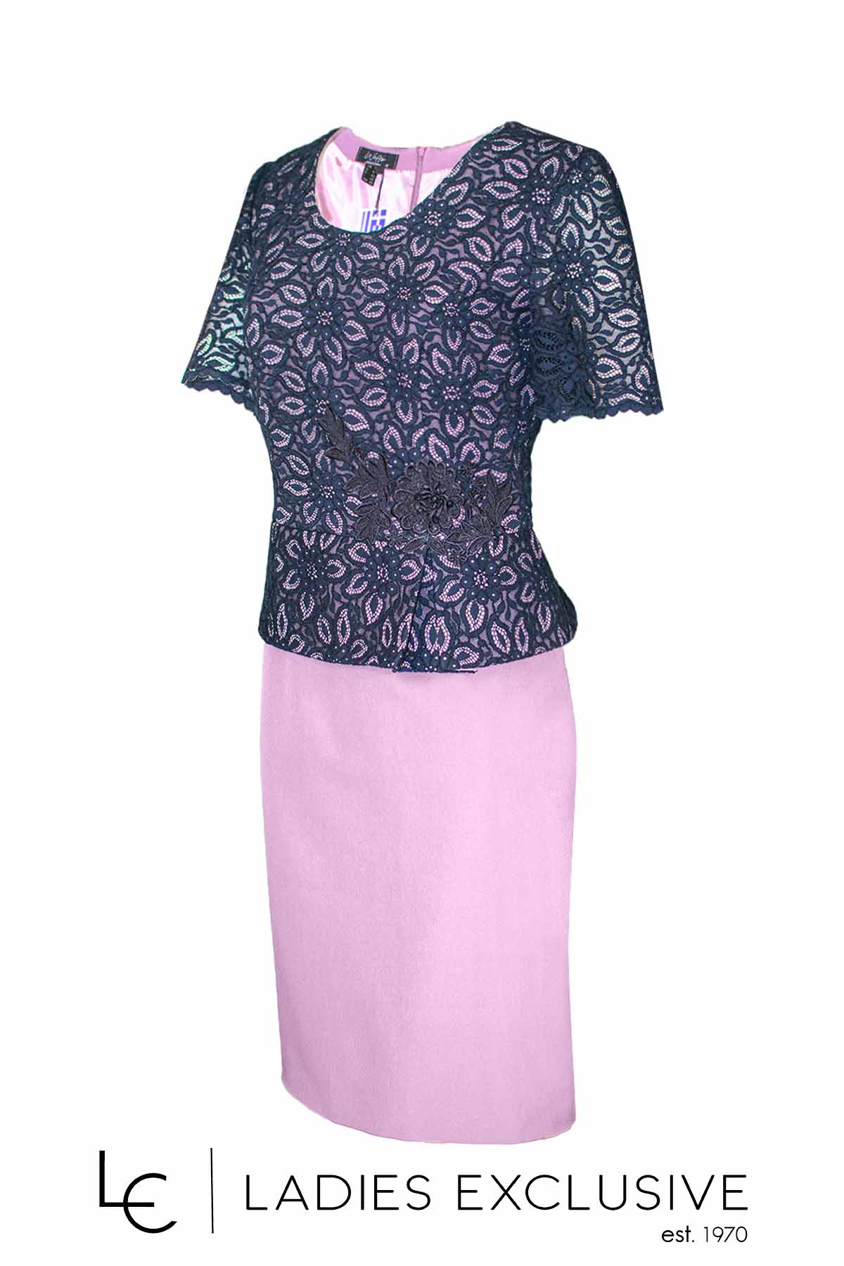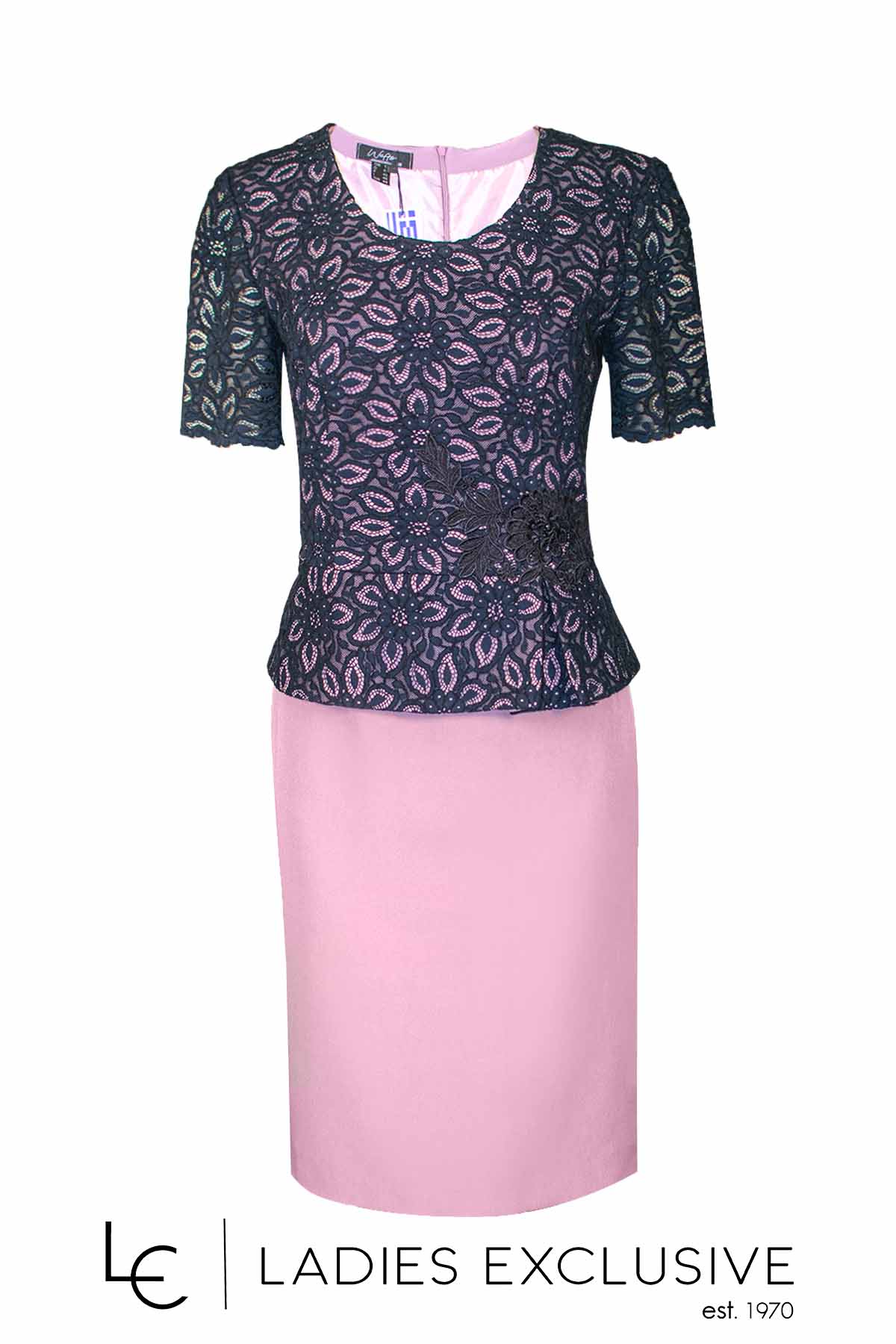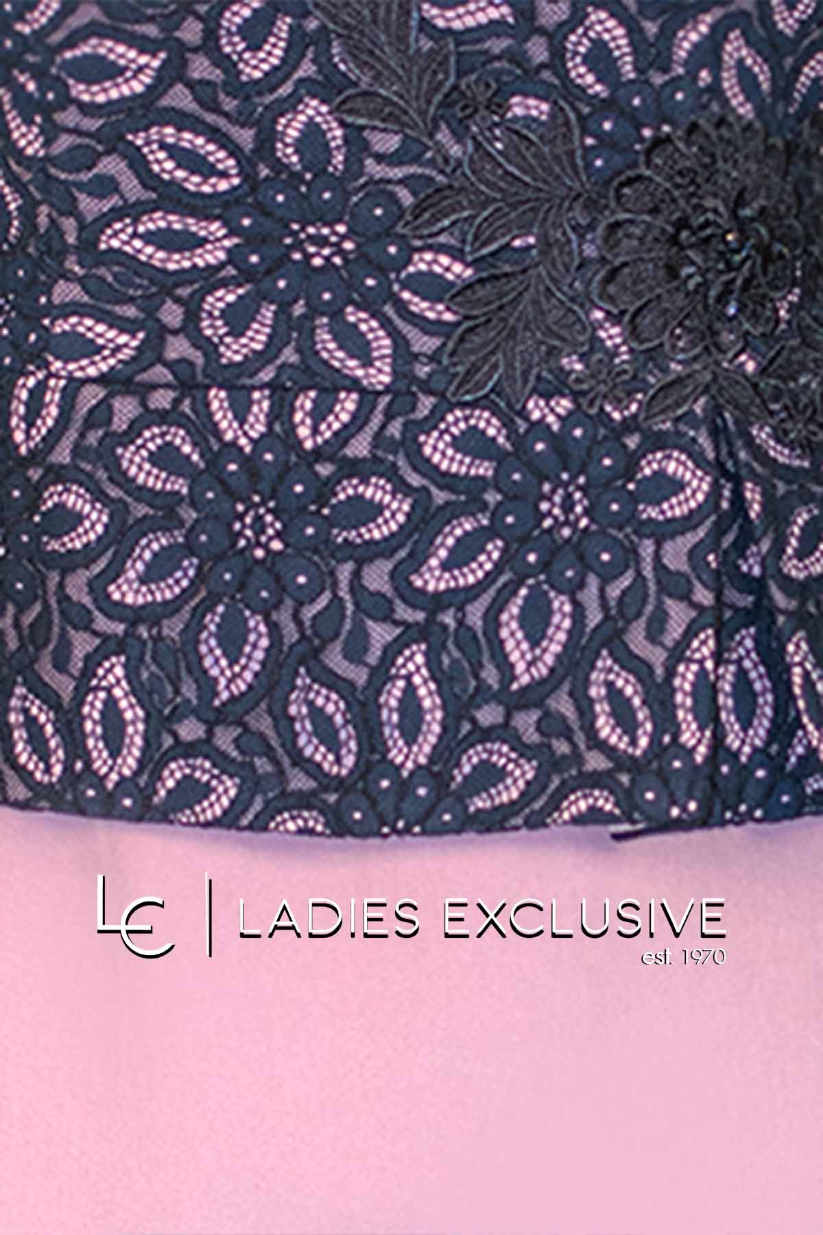 WEFTS Φόρεμα βραδινό σε ίσια γραμμή με ροζ κρεπ φούστα και μπλε δαντέλα στο πάνω μέρος.
