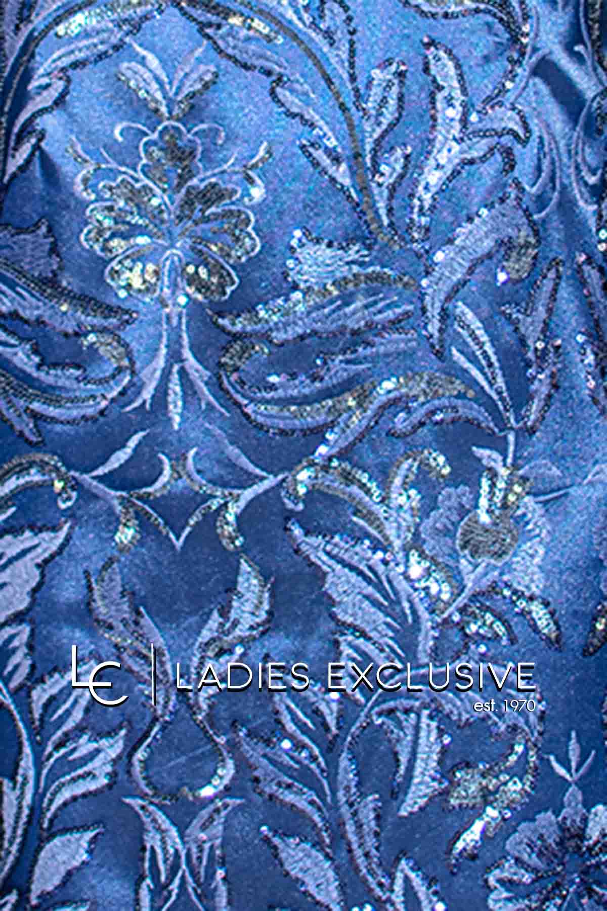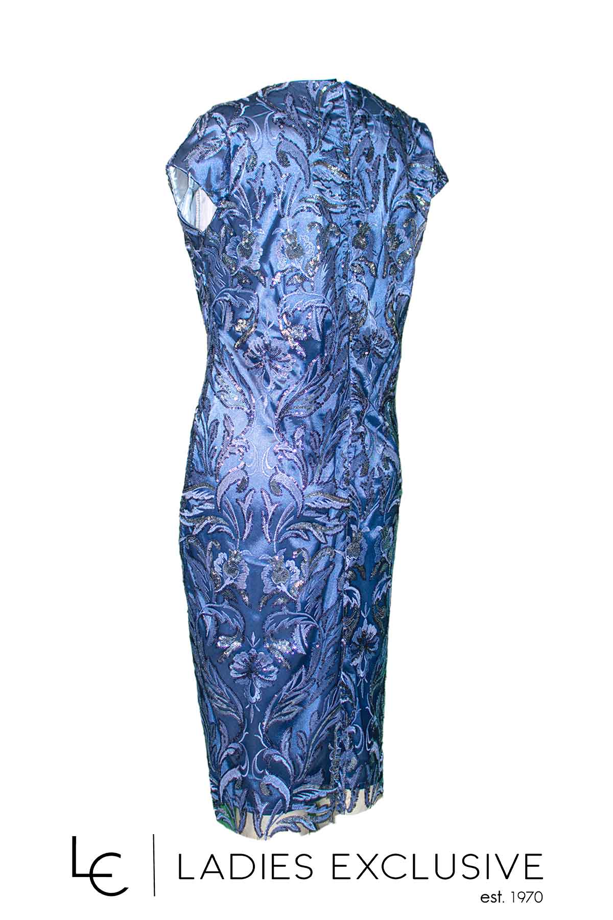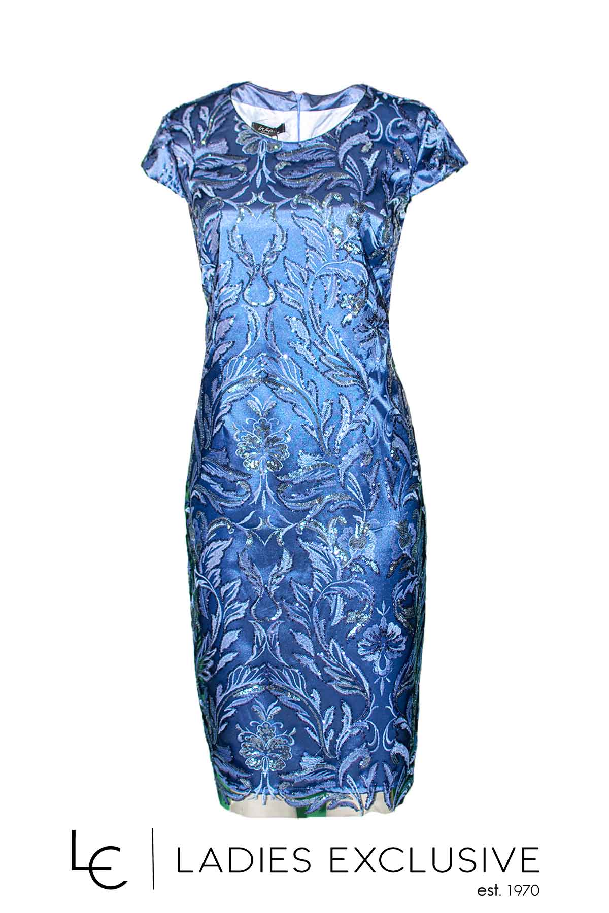WEFTS Φόρεμα μπλε βραδινό σε ίσια γραμμή, με κοφτό μανίκι και κεντημένες παγιέτες.