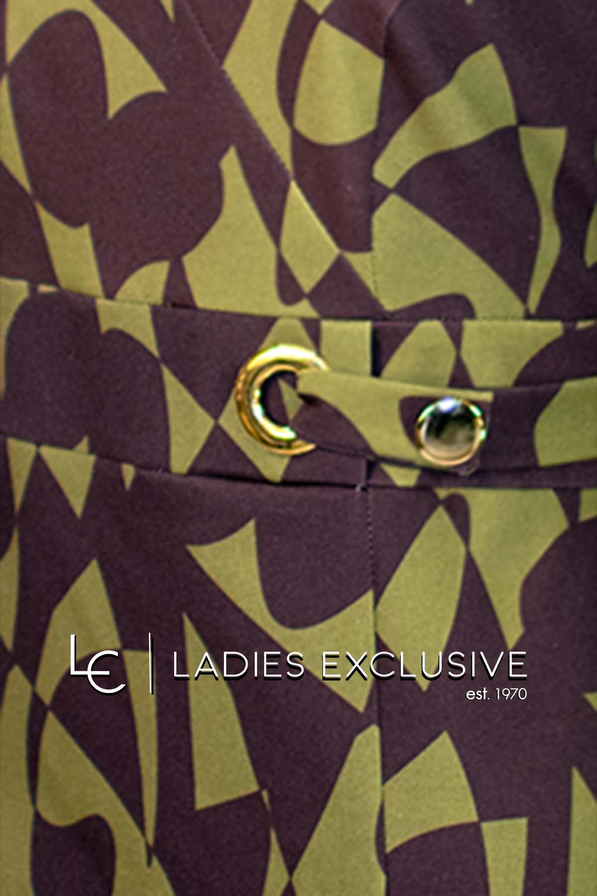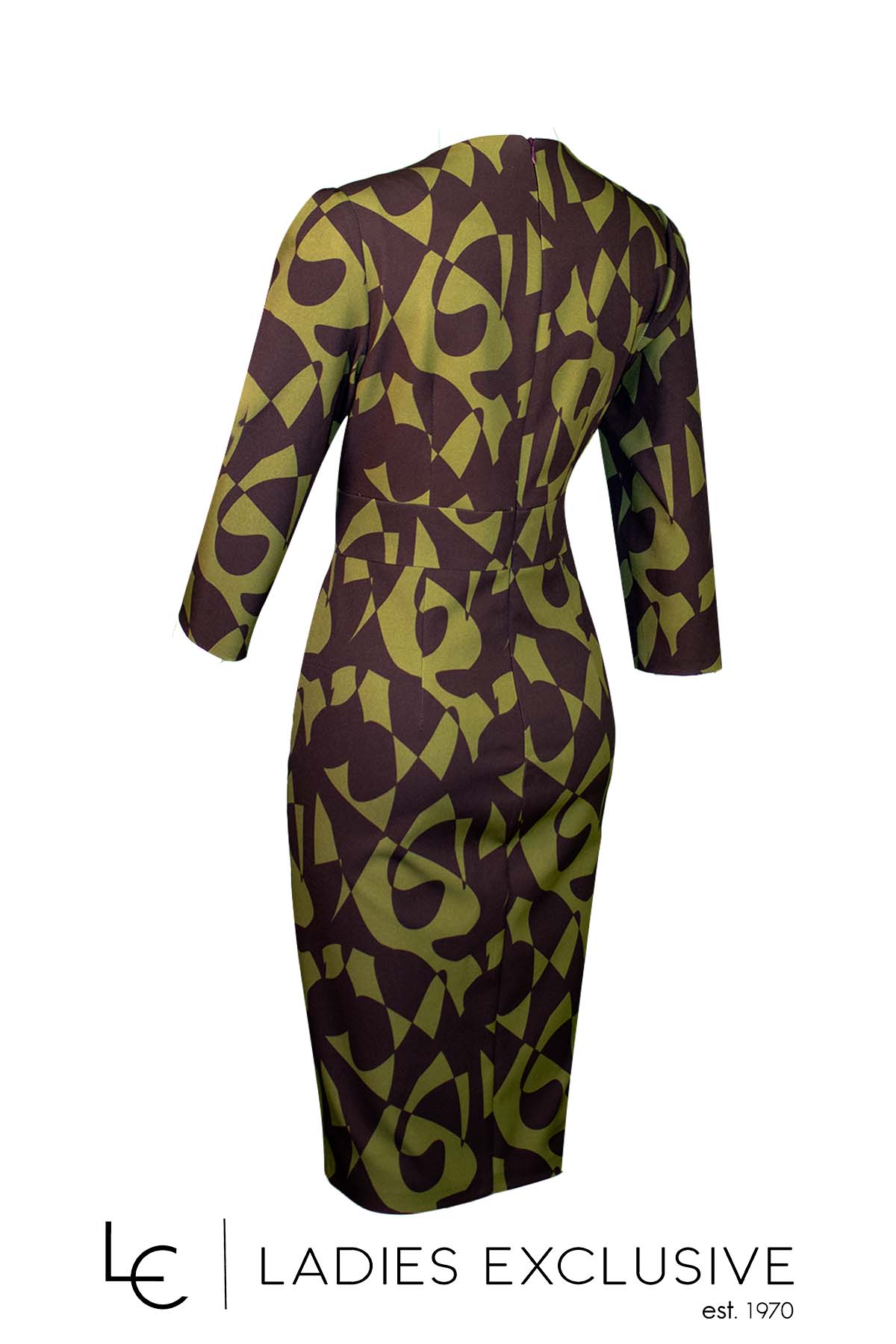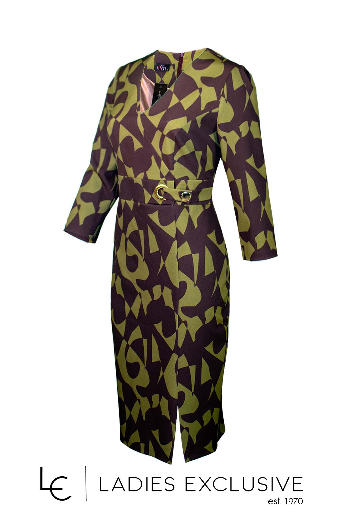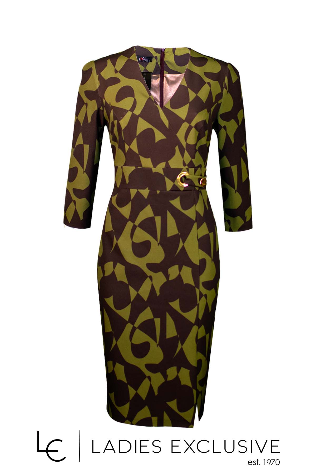 EFFECT Φόρεμα καφέ με λαδί κρεπ σε ίσια γραμμή με άνοιγμα v και μικρό σκίσιμο στο κάτω μέρος.