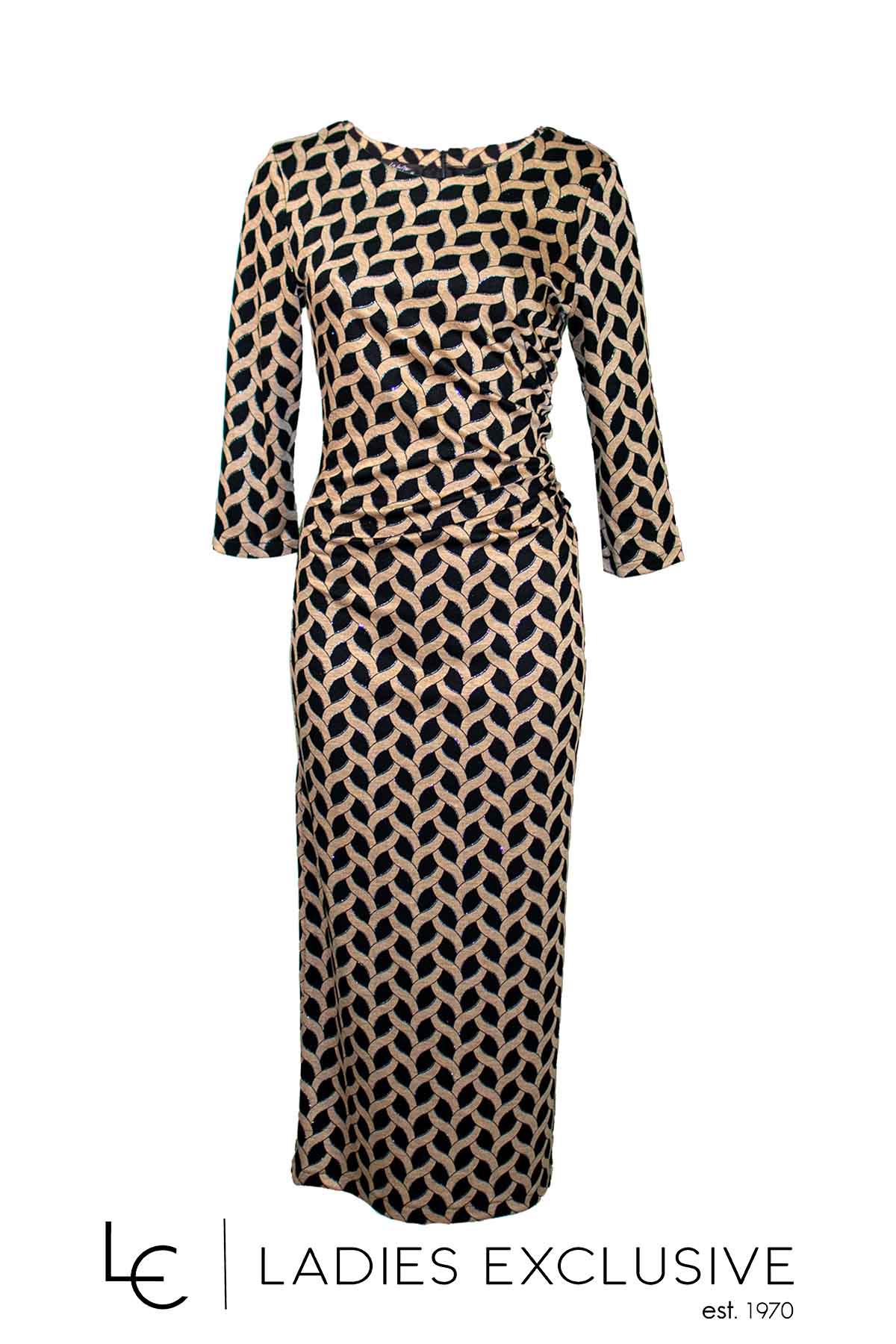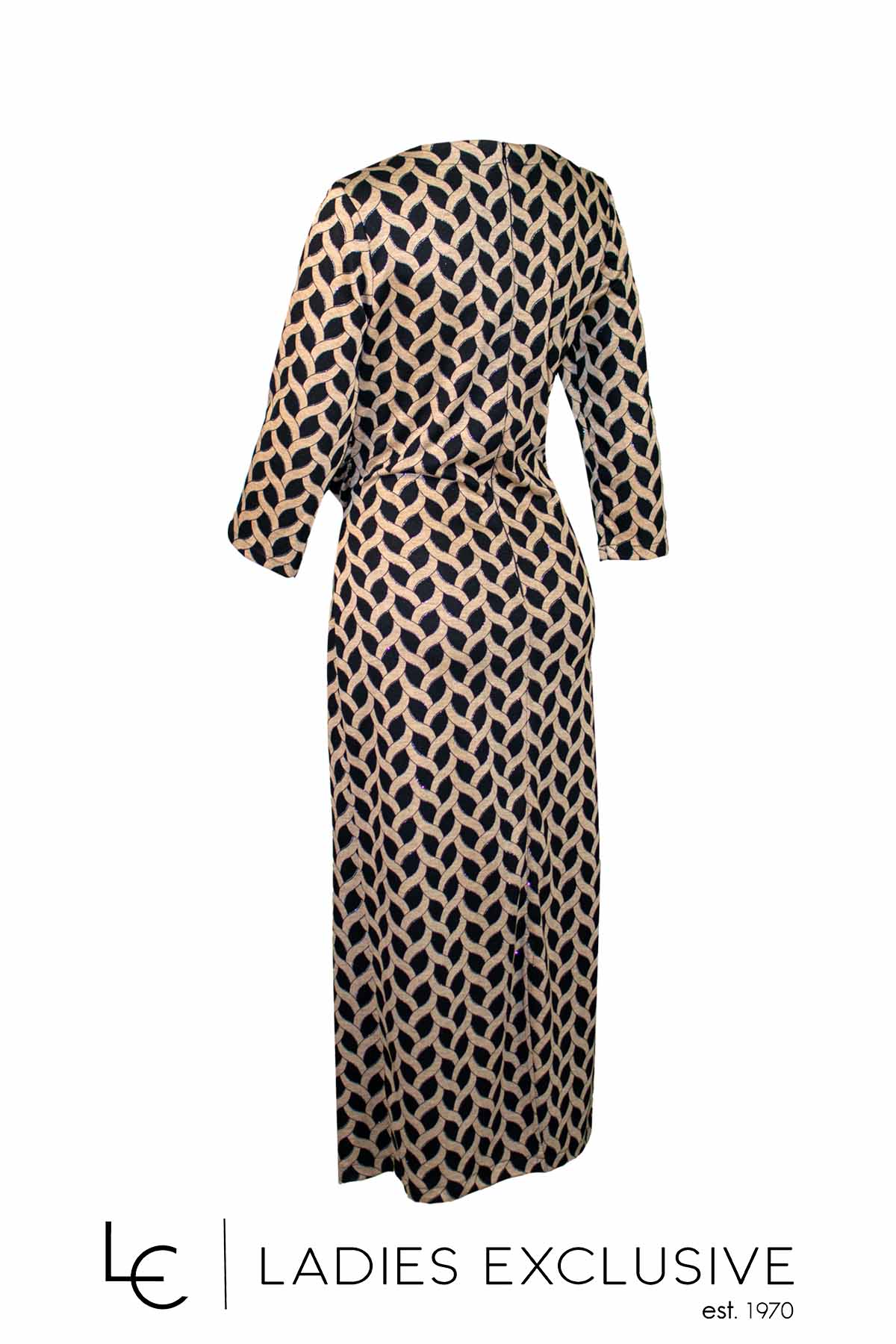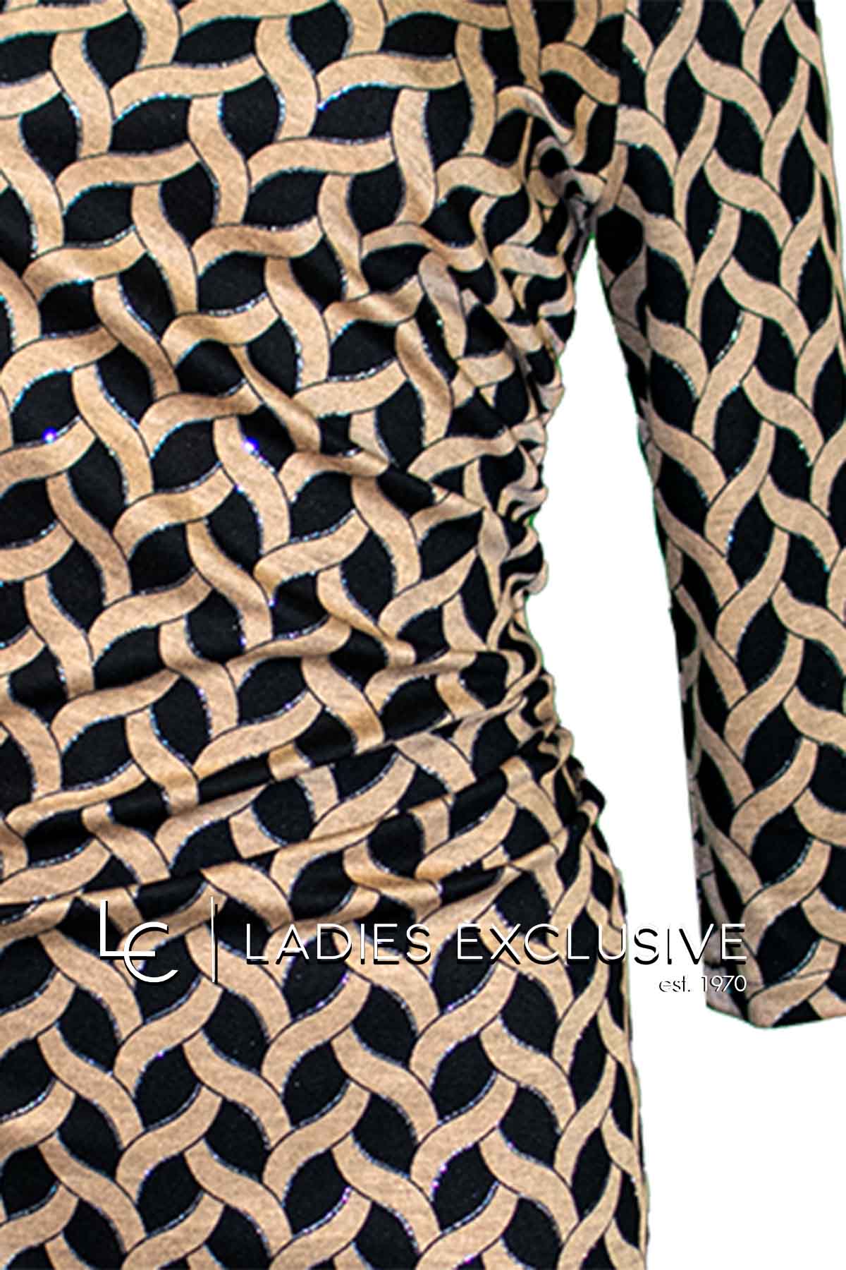 WEFTS Φόρεμα μπεζ με μαύρο μακρύ ζέρσεϊ, ντραπέ στη μέση, με μανίκι 3/4.
