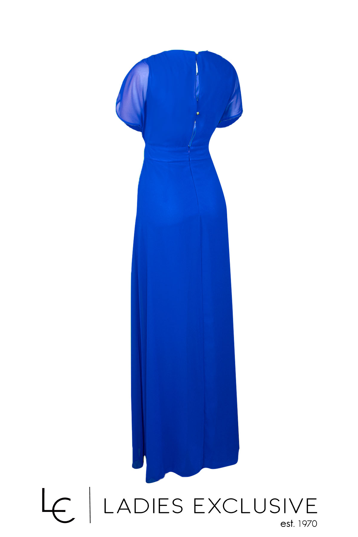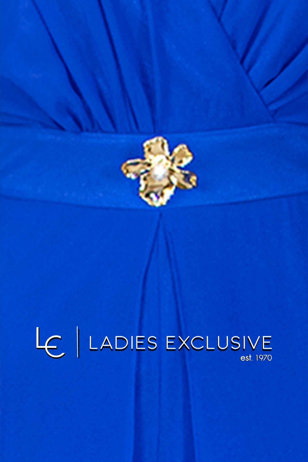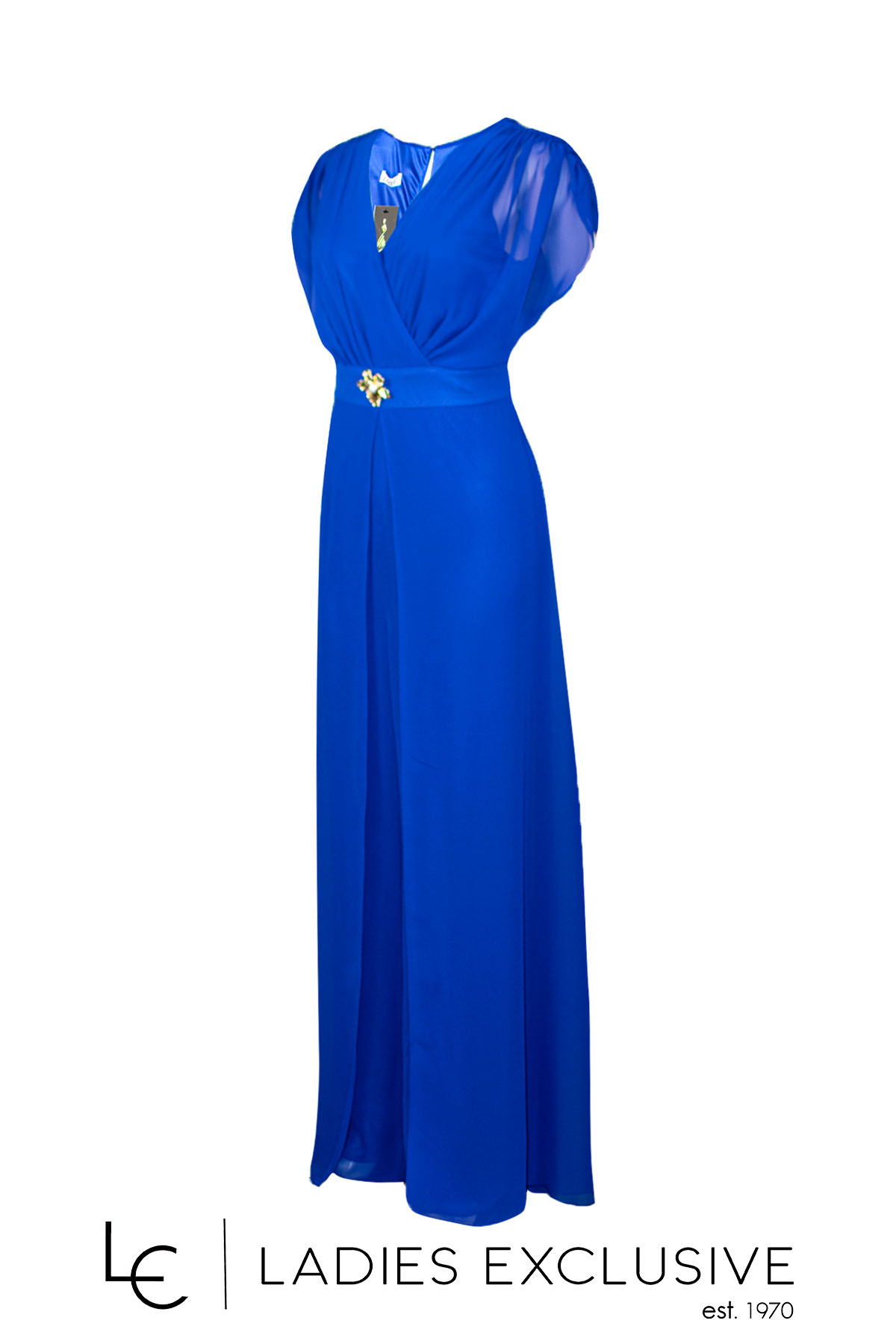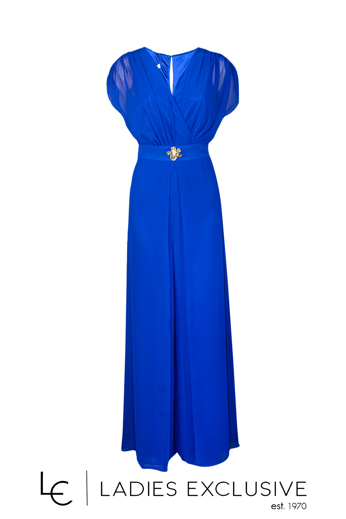 EFFECT Φόρμα μπλε ρουά ολόσωμη από μουσελίνα κορυαζέ, με ιδιαίτερη καρφίτσα λουλούδι στη ζώνη.