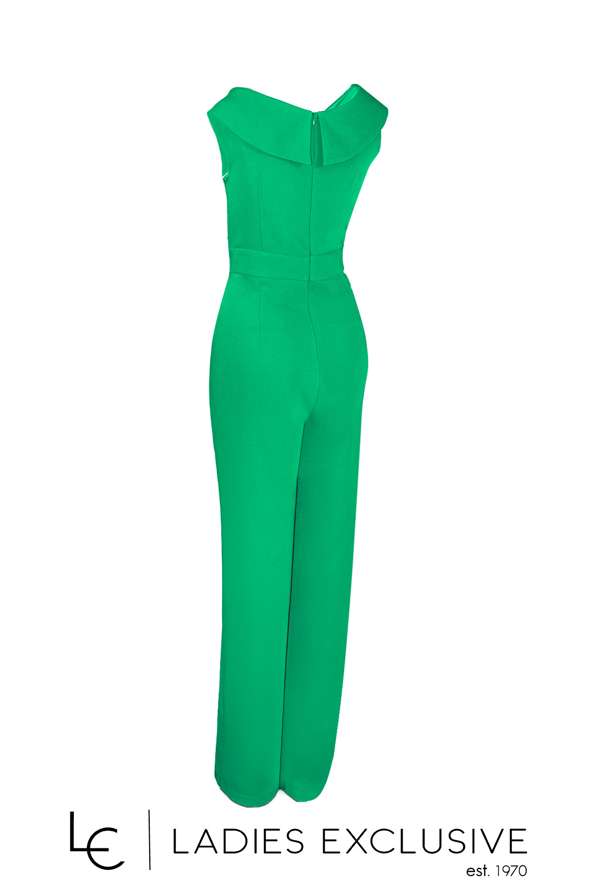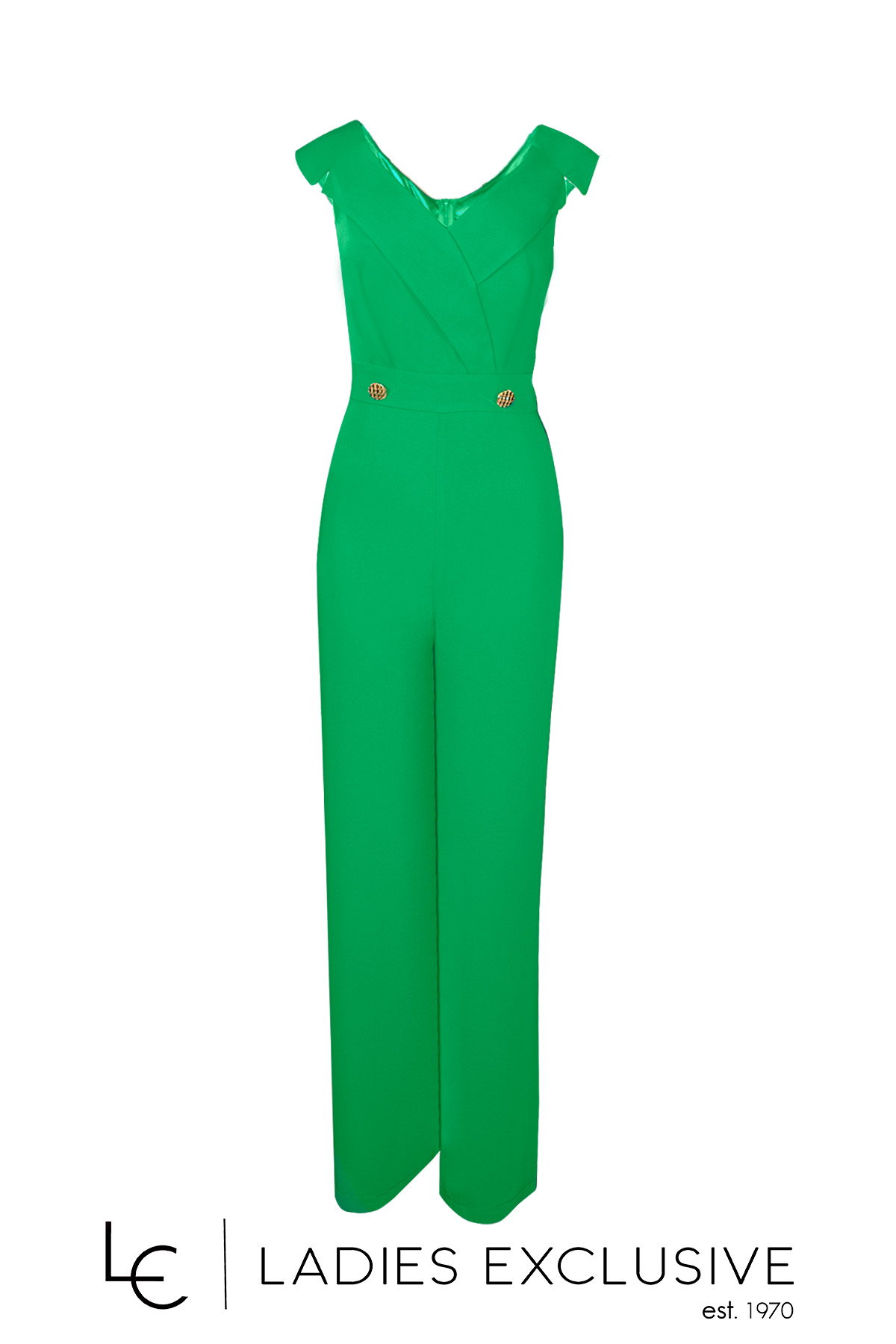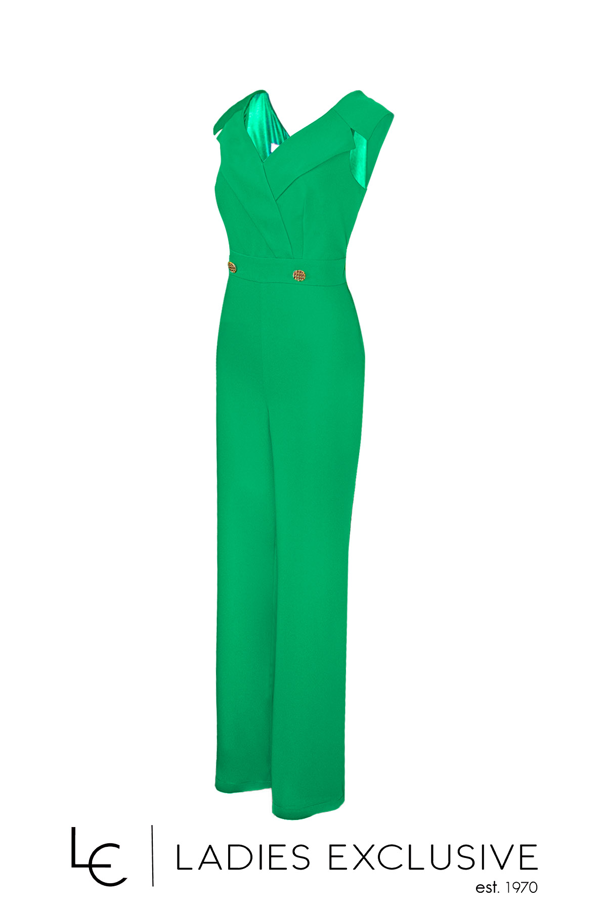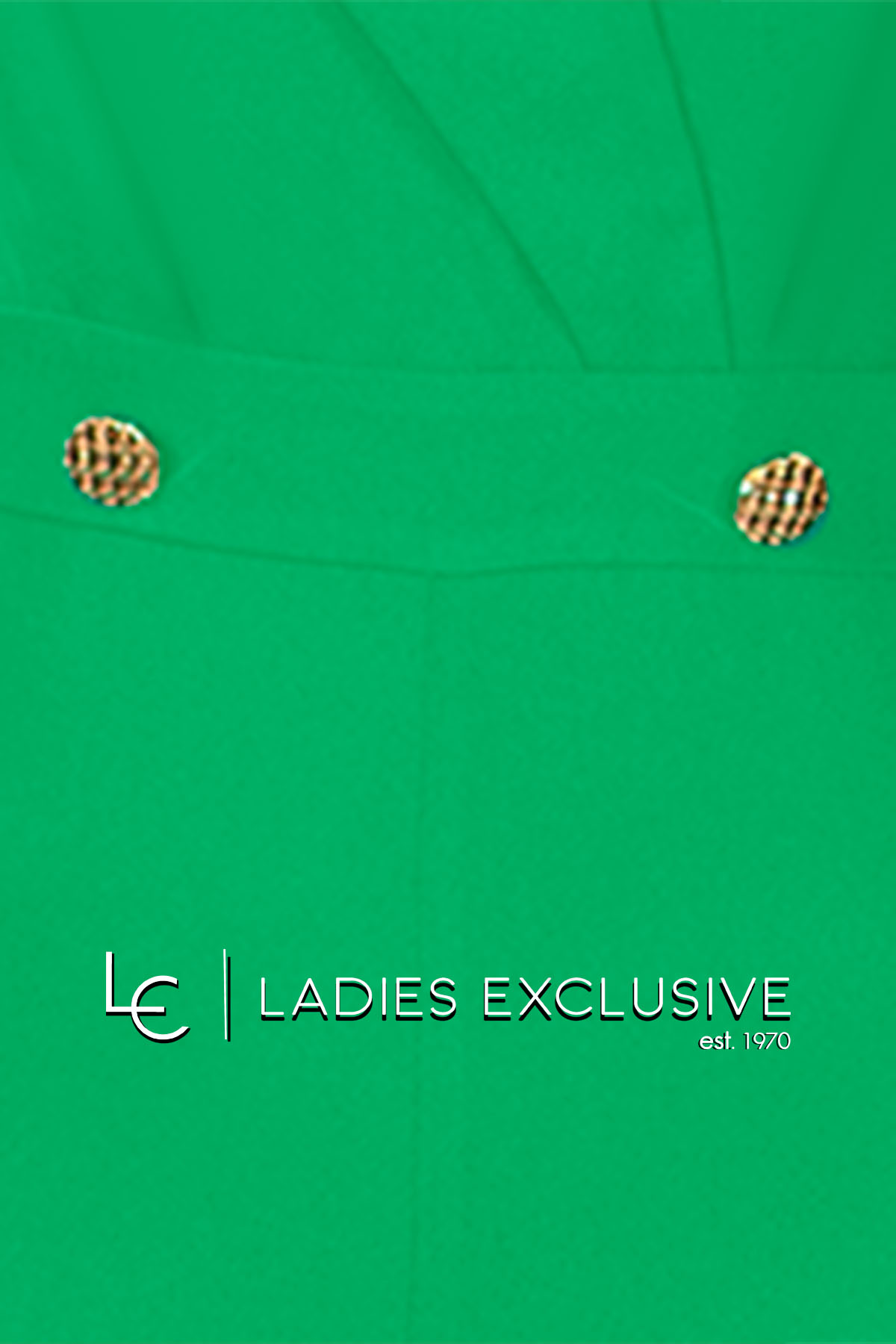 EFFECT Φόρμα πράσινη ολόσωμη κρεπ αμάνικη, με διακοσμητικά κουμπιά στη ζώνη. Διαθέτει επιπλέον ύφασμα για τοποθέτηση μανικιού.