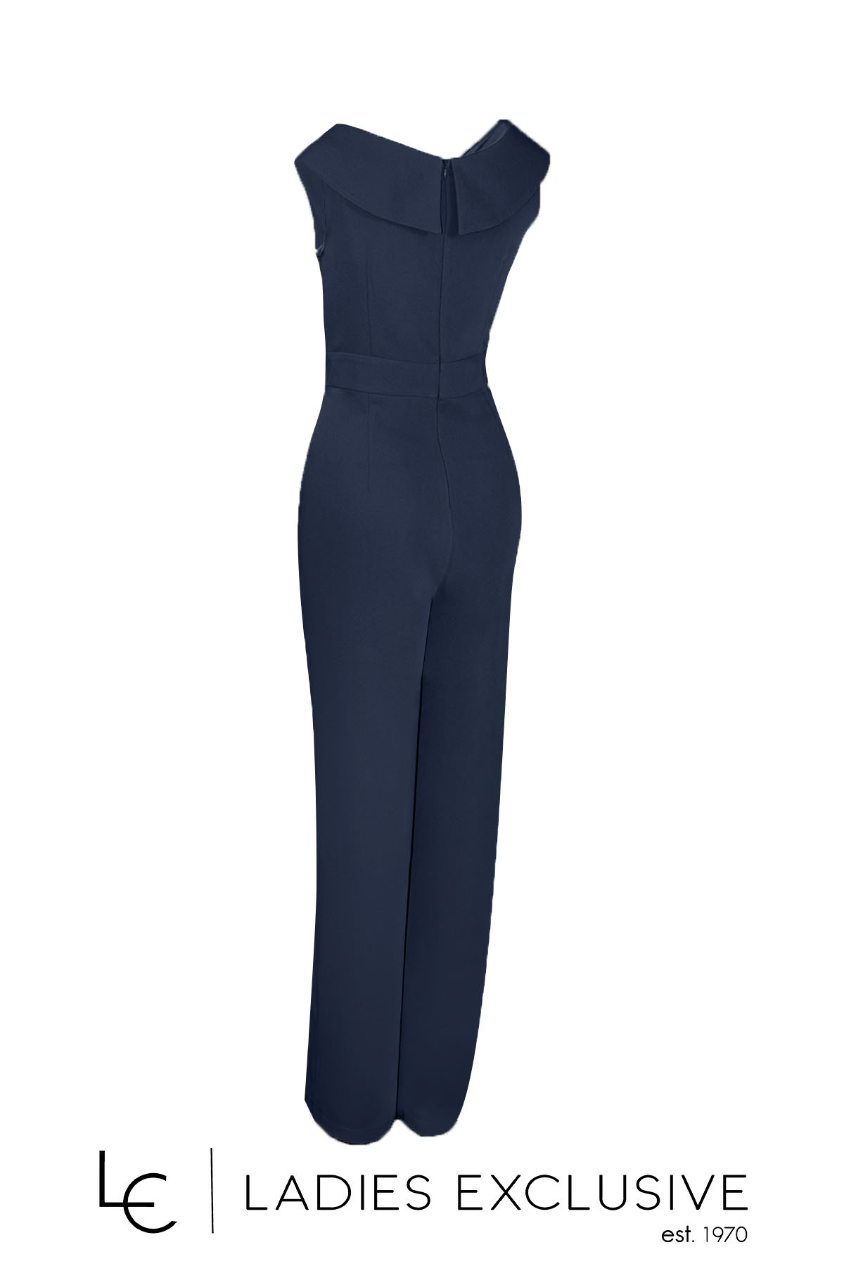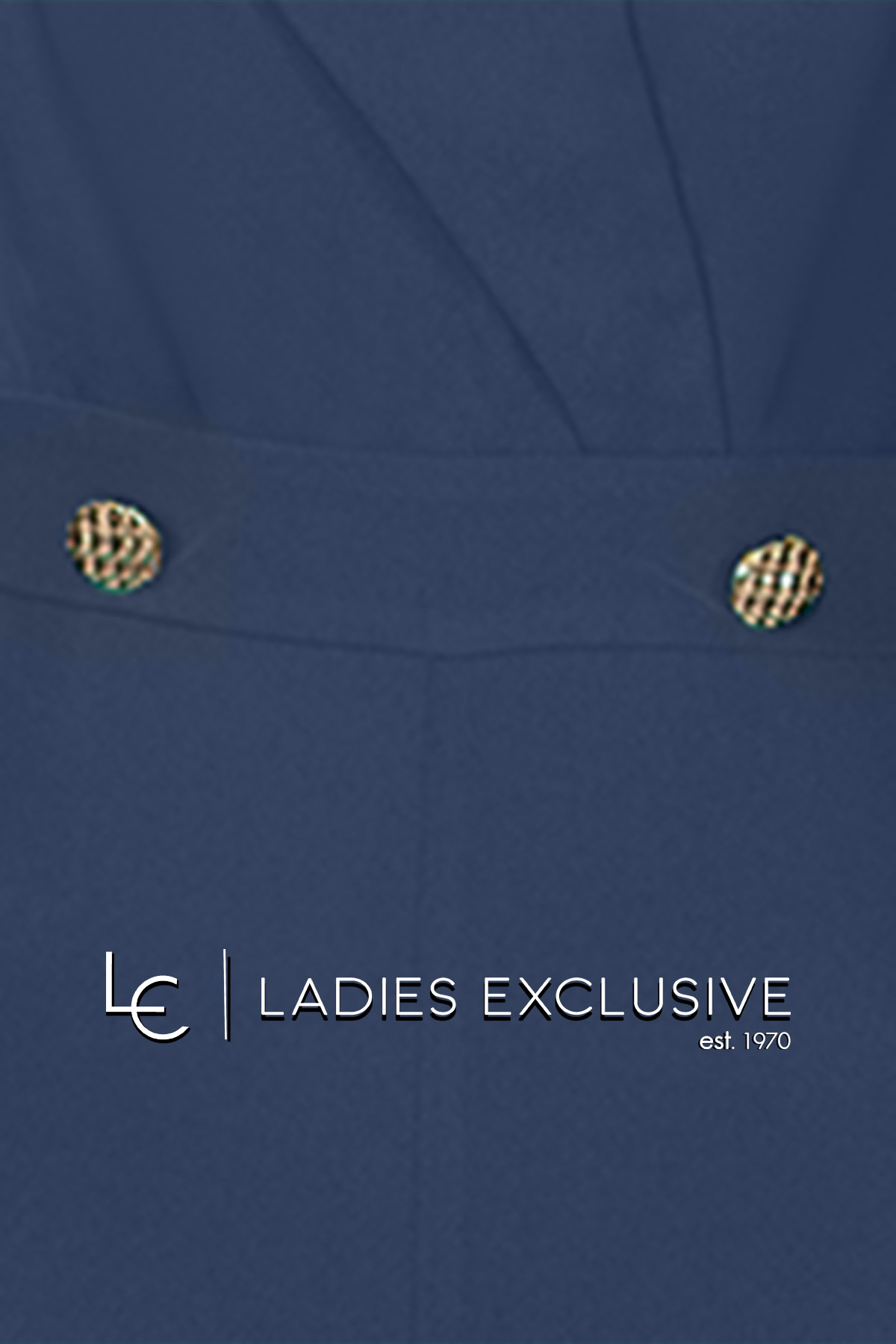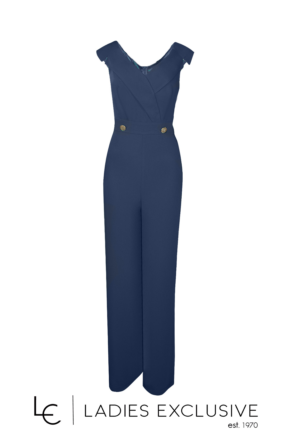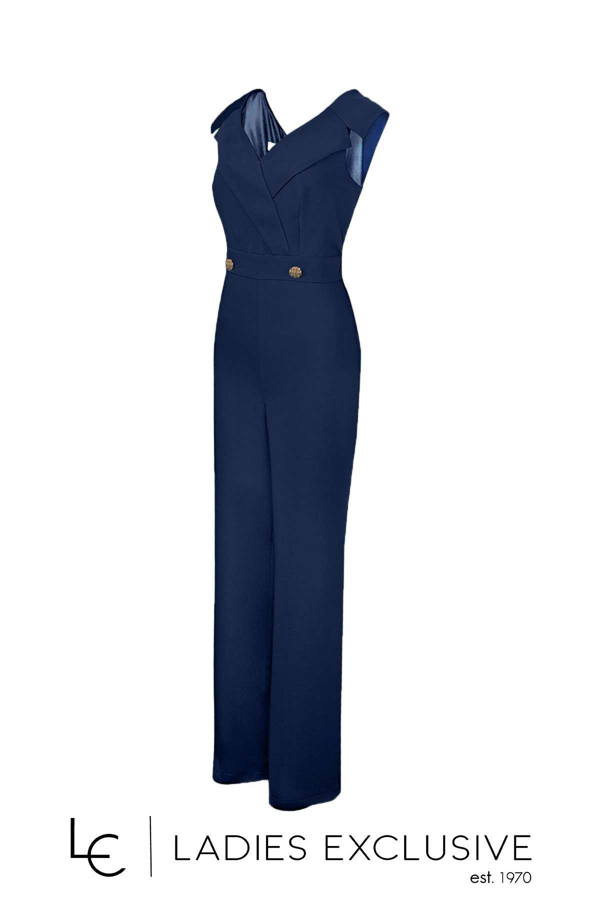 EFFECT Φόρμα μπλε ολόσωμη κρεπ αμάνικη, με διακοσμητικά κουμπιά στη ζώνη. Διαθέτει επιπλέον ύφασμα για τοποθέτηση μανικιού.