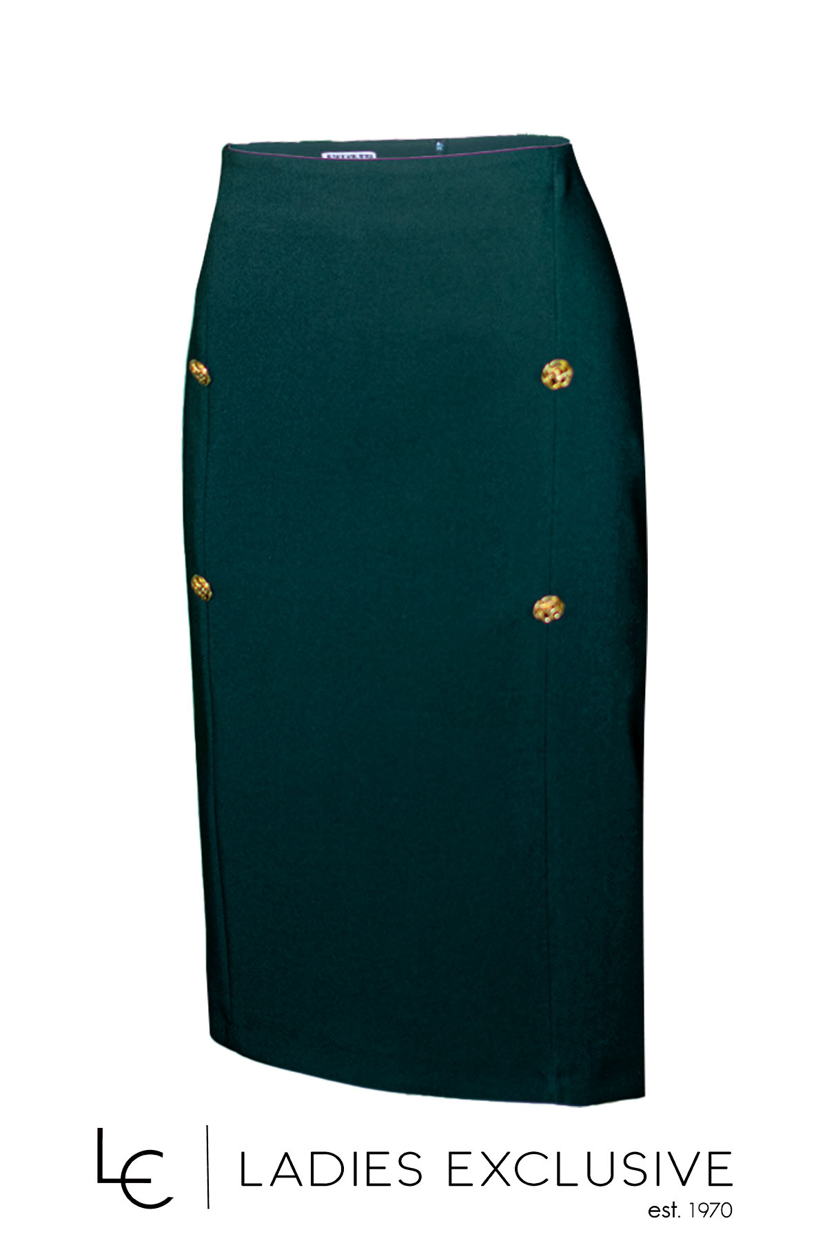 VIDAL Φούστα πράσινη κρεπ σε ίσια γραμμή, με διακοσμητικά χρυσά κουμπιά.