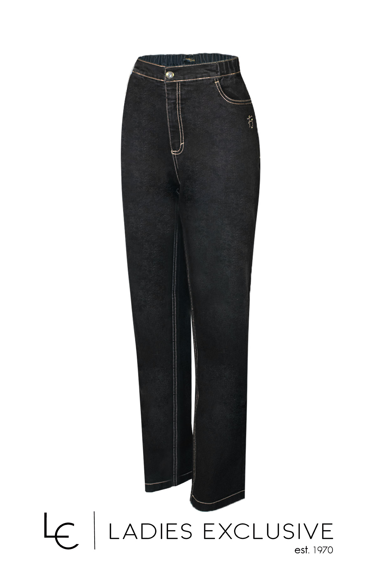 FIORENTINA JEANS Παντελόνι μαύρο τζην με λάστιχο στη μέση και κίτρινα εξώραφα.