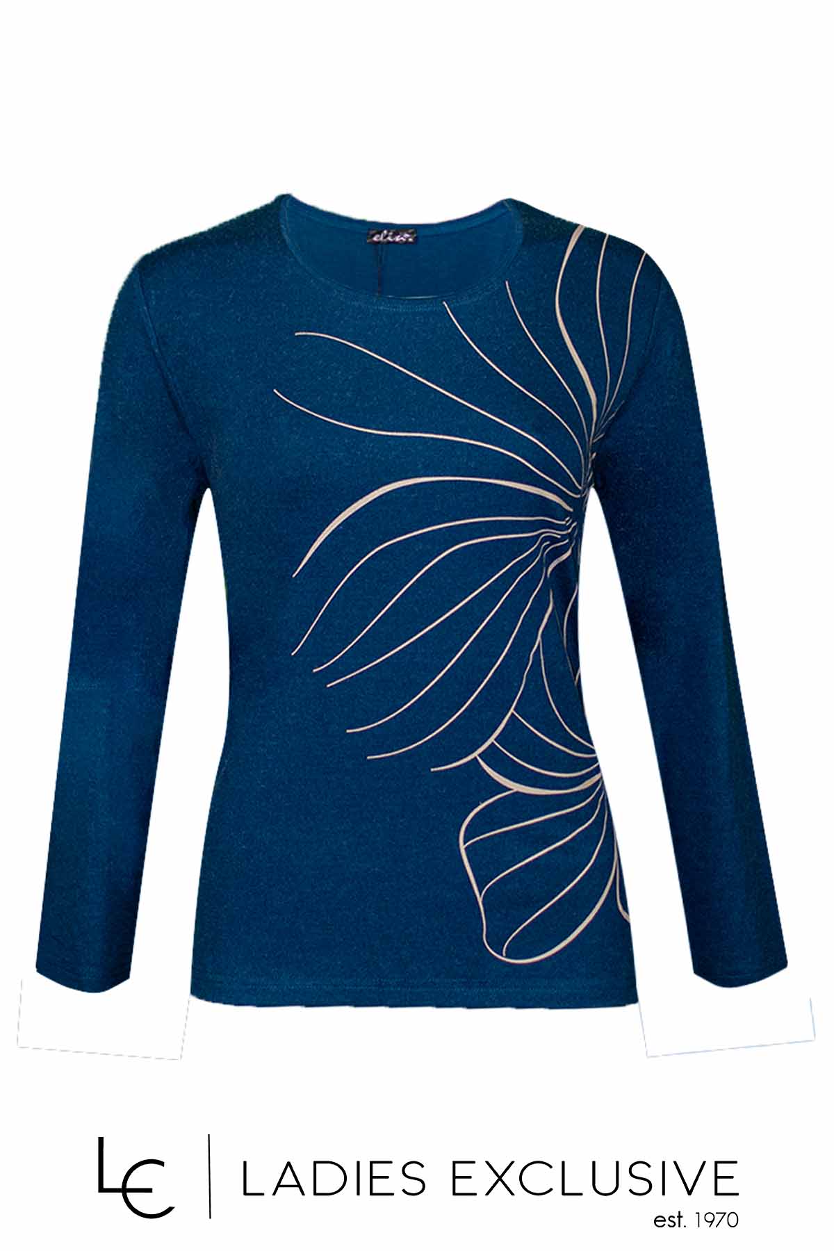 ELIN Μπλούζα μπλε από βισκόζη με μπεζ στάμπα.