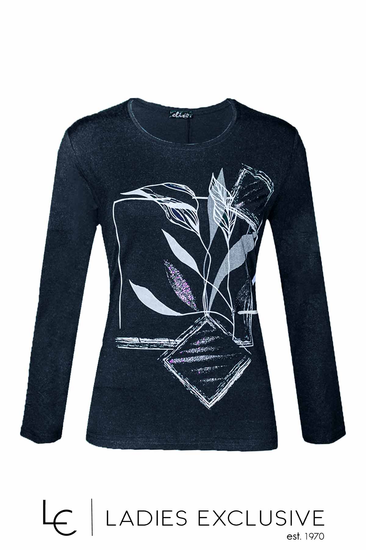 ELIN Μπλούζα ανθρακί από βισκόζη με στάμπα λουλούδι με λάμψη.