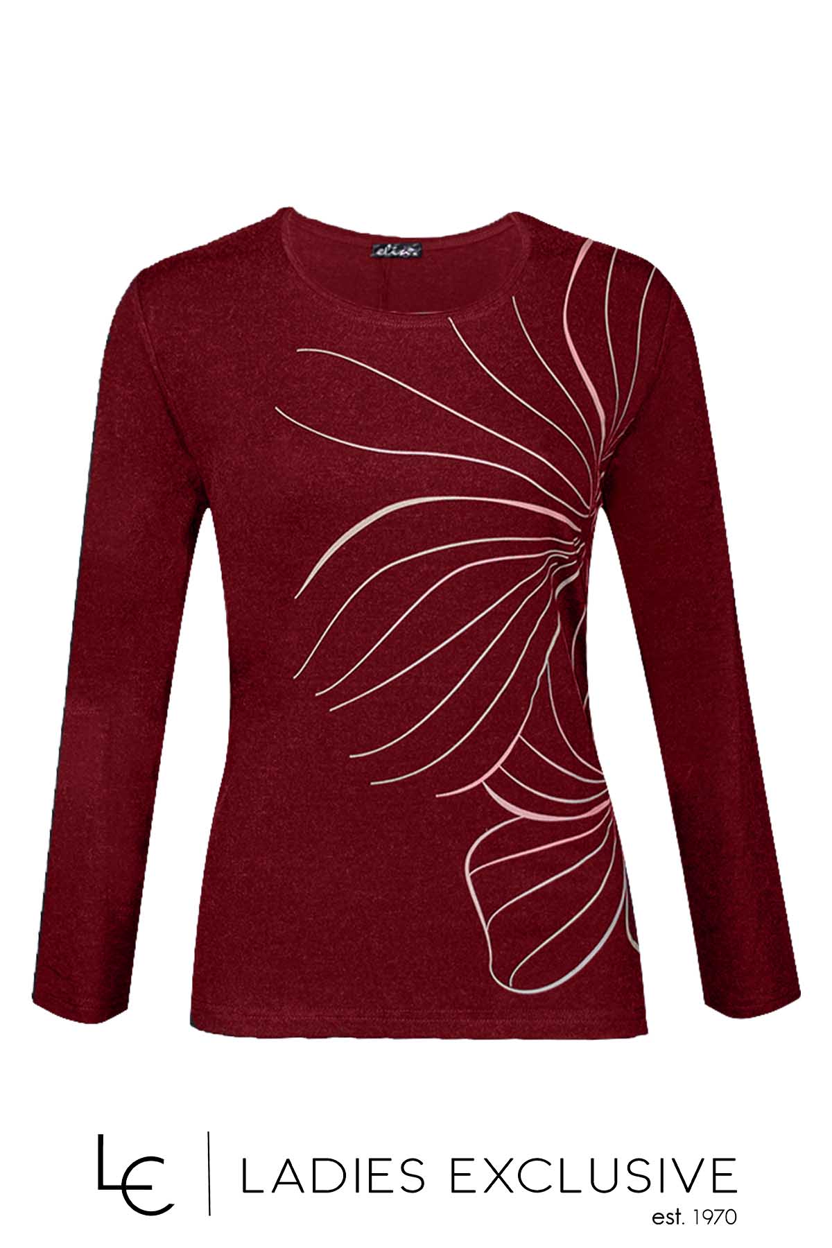 ELIN Μπλούζα μπορντώ από βισκόζη με μπεζ στάμπα.