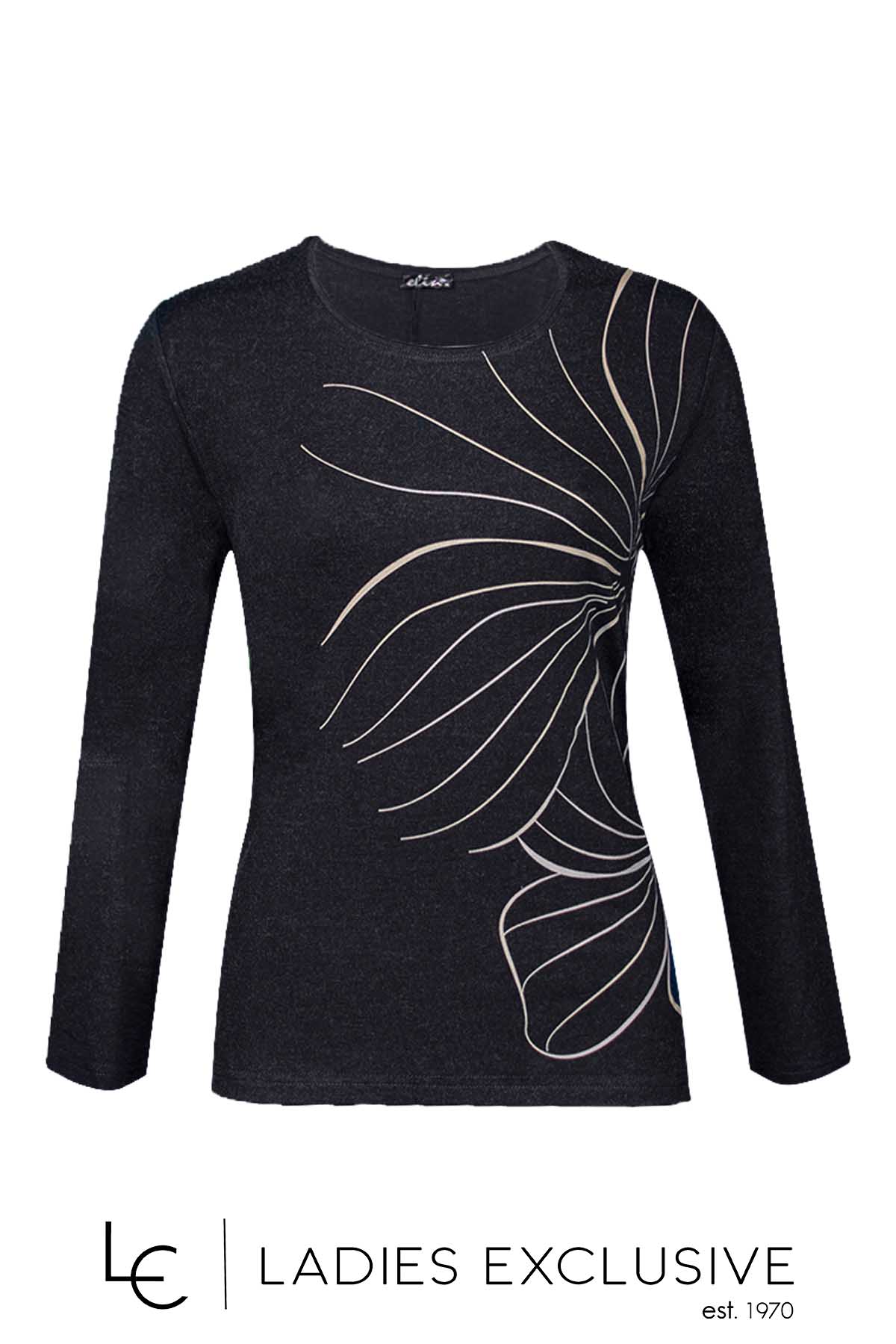 ELIN Μπλούζα ανθρακί από βισκόζη με μπεζ στάμπα.
