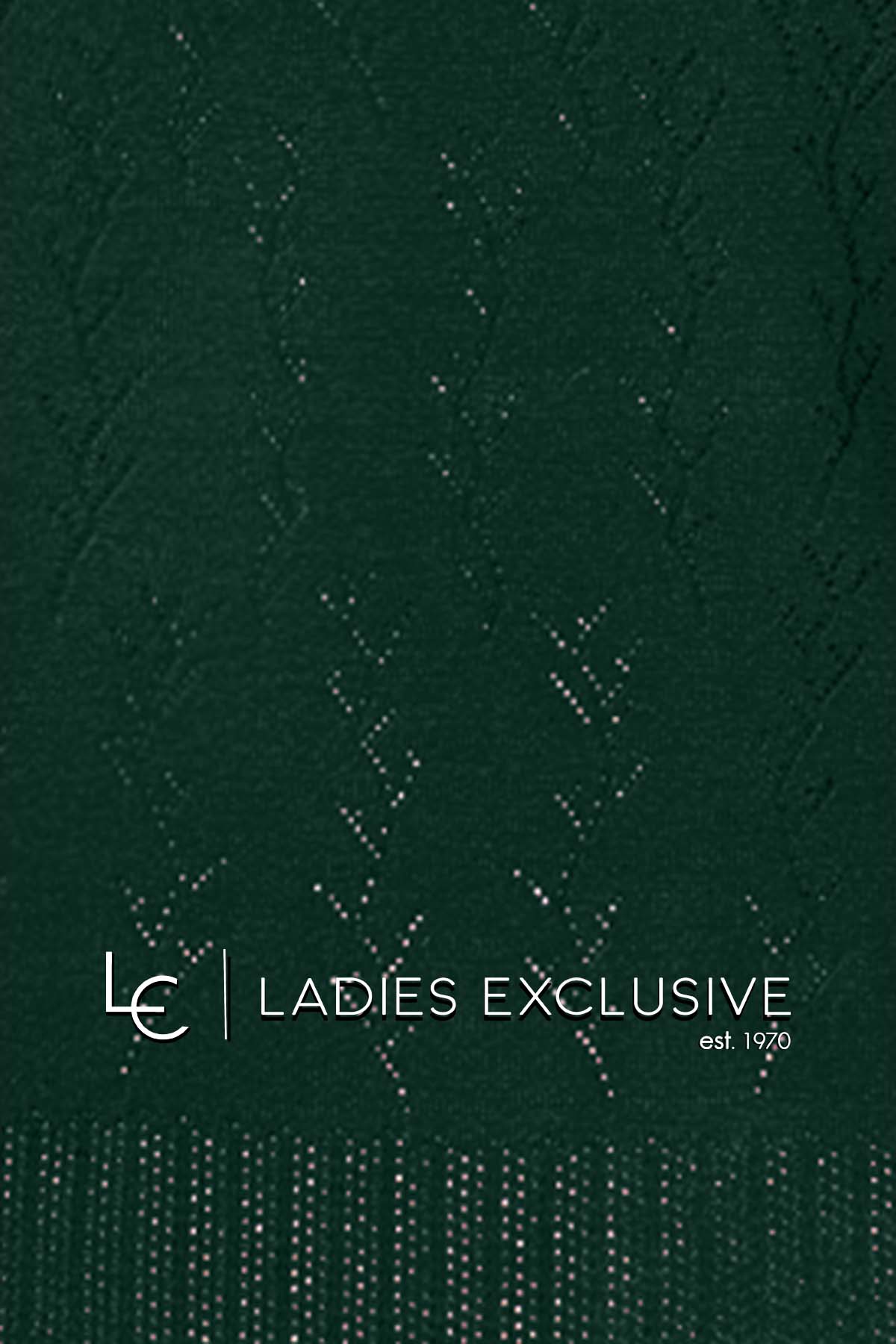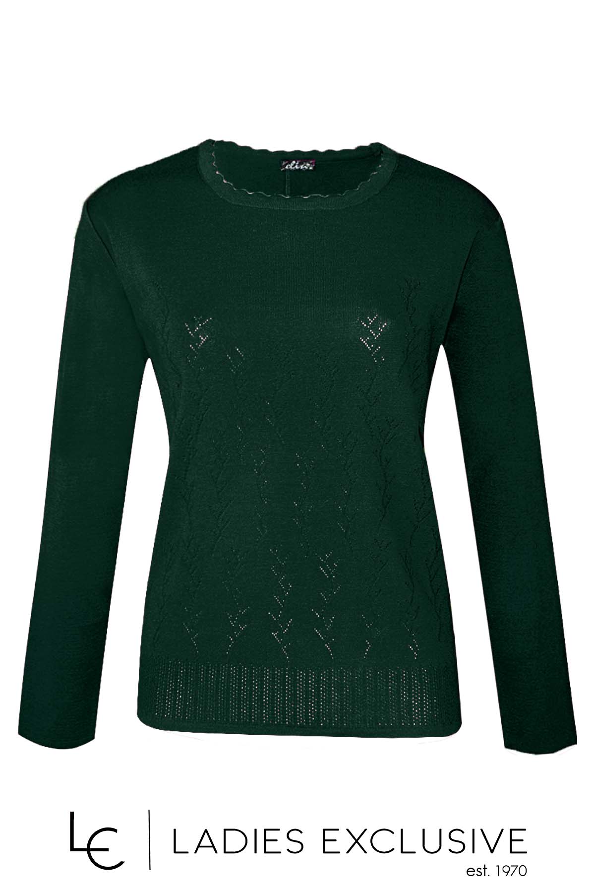 ELIN Μπλούζα πράσινη μάλλινη με ανάγλυφα κλαδιά και ιδιαίτερο σχέδιο στη λαιμόκοψη.